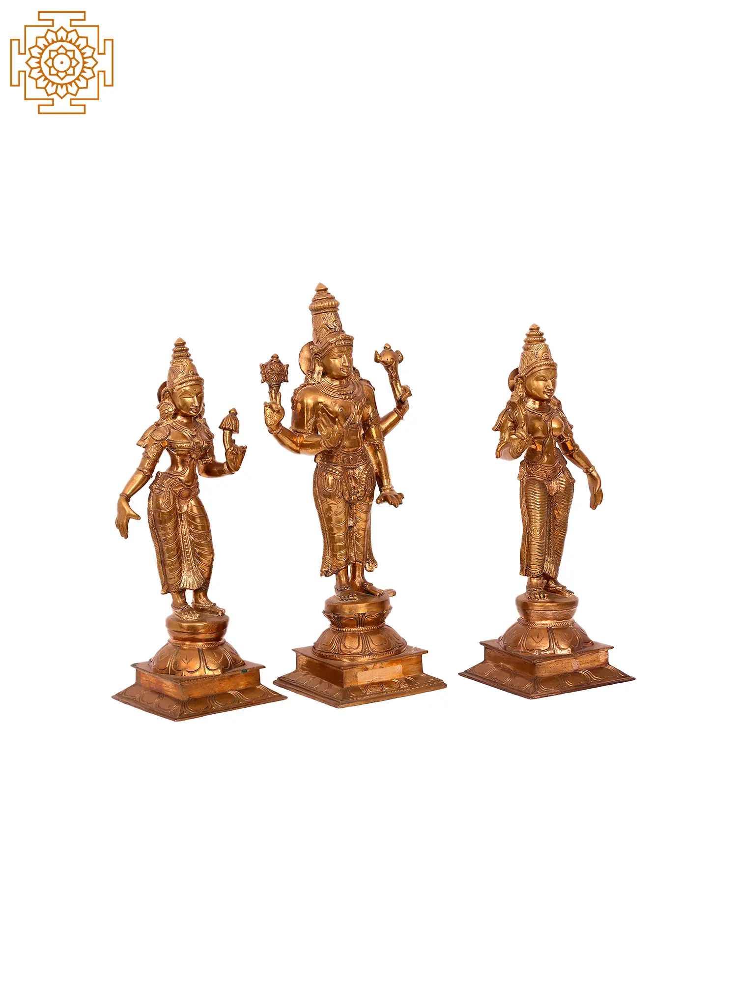 27'' Lord Perumal with Bhudevi and Sridevi | Madhuchista Vidhana (Lost-Wax) | Panchaloha Bronze from Swamimalai