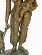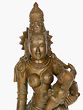 The quintessential Indian mother-and-child image. This expressive Maa Parvati idol depicts the lovely wife of Shiva with their two sons. She cradles Lord Karttikeya on Her hip and holds the elephant-headed one, Lord Ganesha by the hand as He totters next to Her, almost sliding off the plinth.
