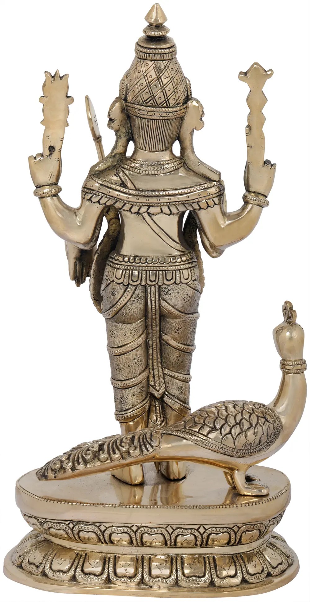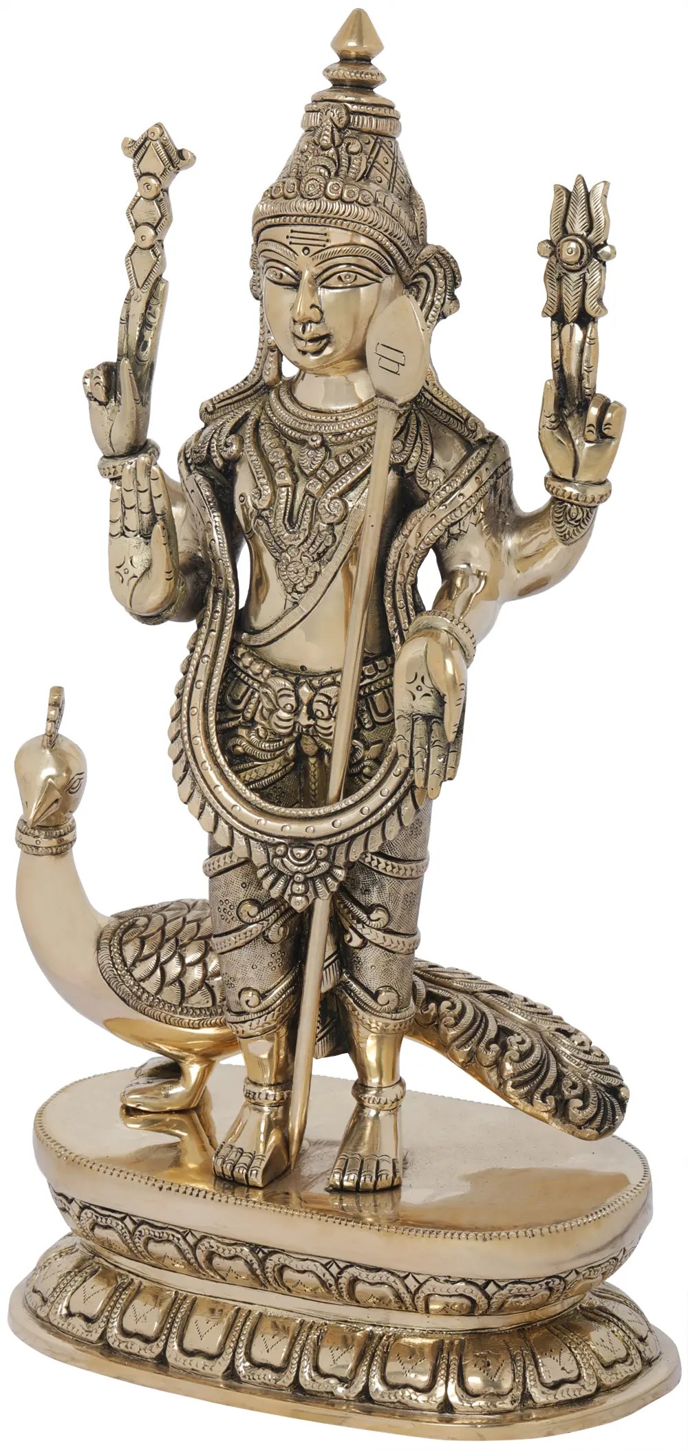 16" Superfine Karttikeya with His Mount Peacock In Brass | Handmade | Made In India