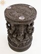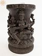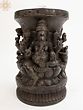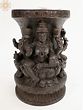 Elevate your sacred space or accentuate your home decor with this exquisite wooden table base, a testament to masterful craftsmanship and profound spiritual symbolism. This piece is more than just a functional stand; it's a conduit to the divine, intricately carved to embody the benevolent energies of three of Hinduism's most revered deities: Ganesha, Lakshmi, and Saraswati. The rich, dark wood lends an air of timelessness and gravitas, making it a captivating focal point in any room.