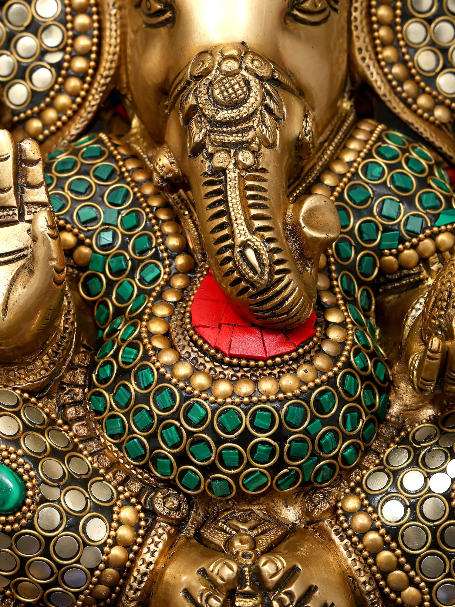 13" Blessing Ganesha Fine Quality Handmade Brass Statue