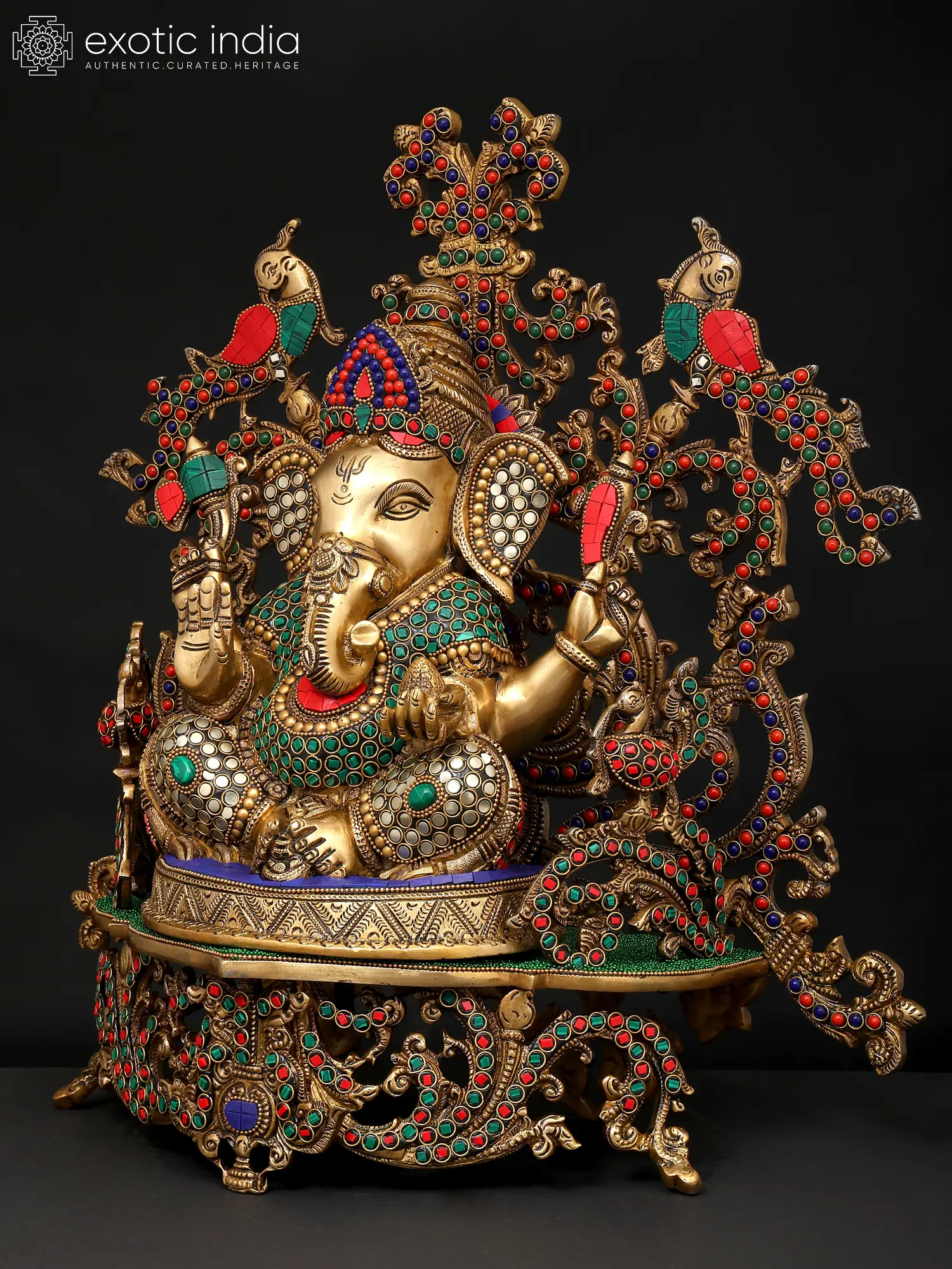 48" Trimukha Ganesha Seated on His Rat with Kirtimukha Arch
