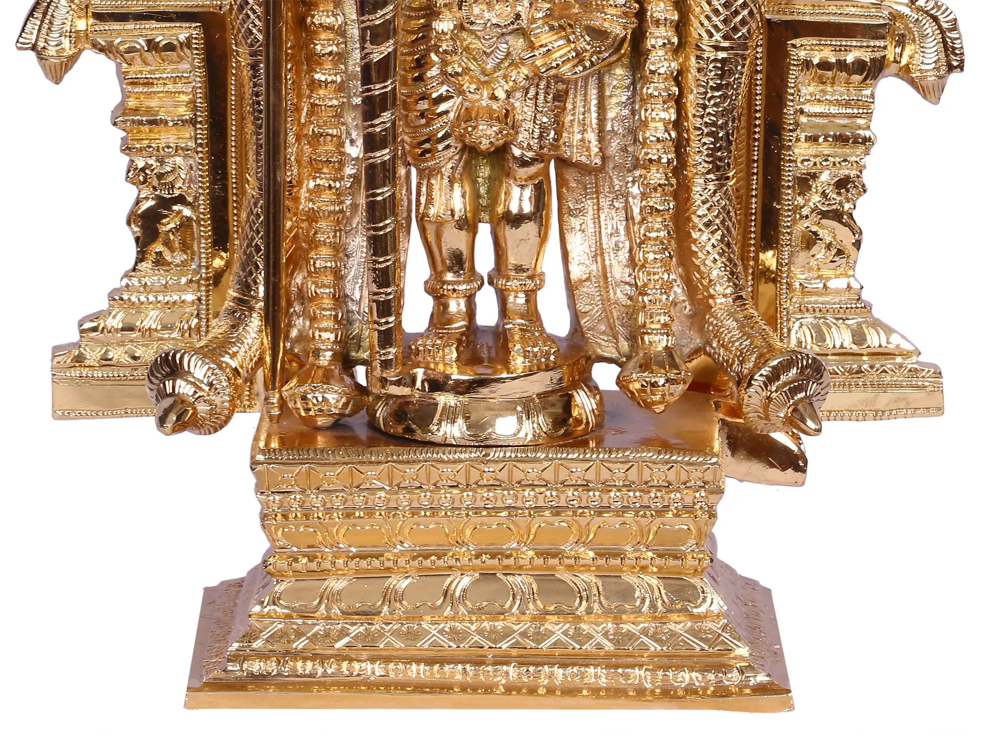 12" Brass Seated Padmapani Avalokiteshvara Idol on a Wooden Pedestal