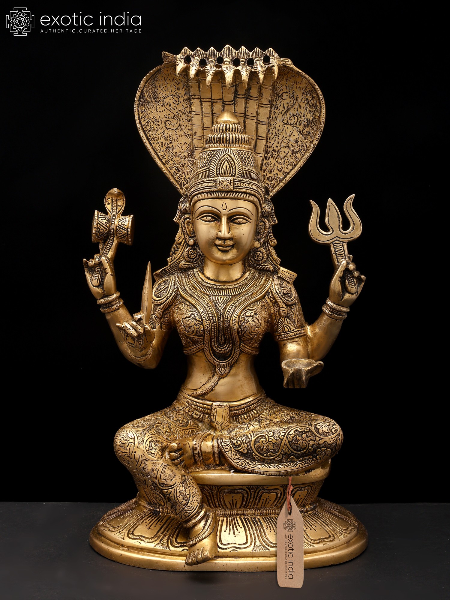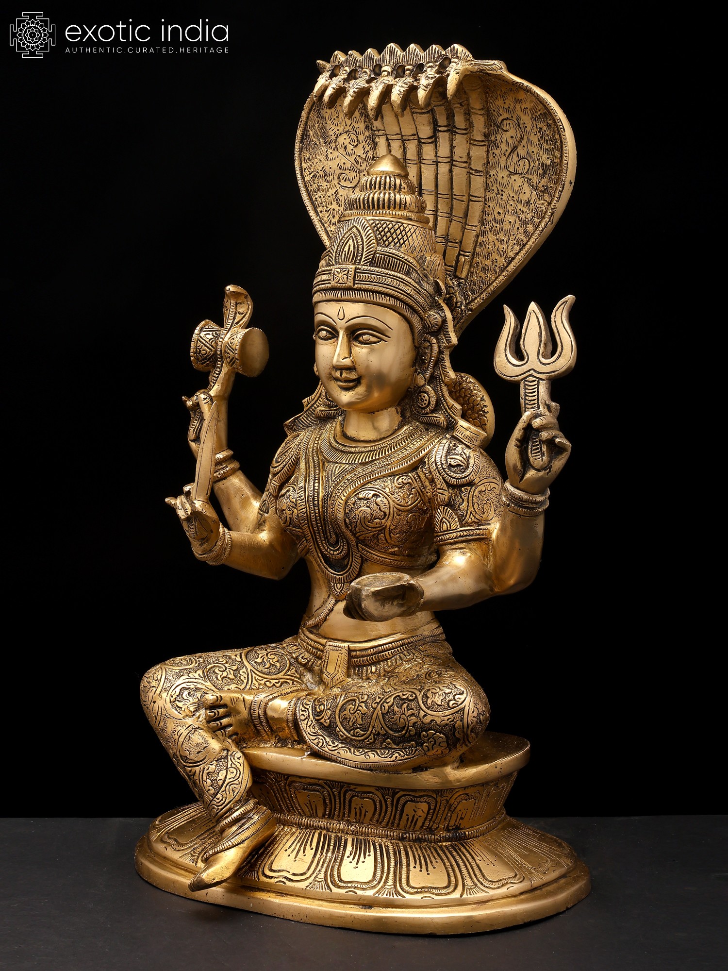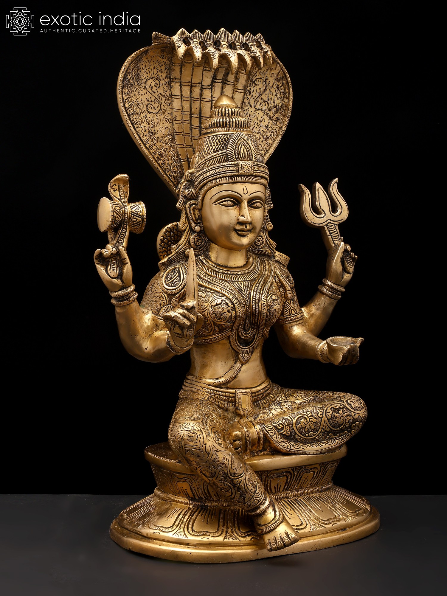 This exquisite idol is a testament to the skill and dedication of master artisans. Cast in high-quality brass, the statue exhibits a warm, inviting glow that is characteristic of this enduring metal. Every detail, from the intricate patterns adorning her garments and jewelry to the delicate rendering of her facial features and the majestic spread of the serpent hood, has been meticulously crafted. The patina achieved through skilled craftsmanship adds depth and character, highlighting the divine form and making it a truly captivating piece. The solid construction ensures its longevity, allowing it to be a cherished object of worship and artistic appreciation for generations to come. This is more than just an idol; it is a conduit of divine grace, a masterpiece of traditional artistry, and a symbol of hope and abundance.