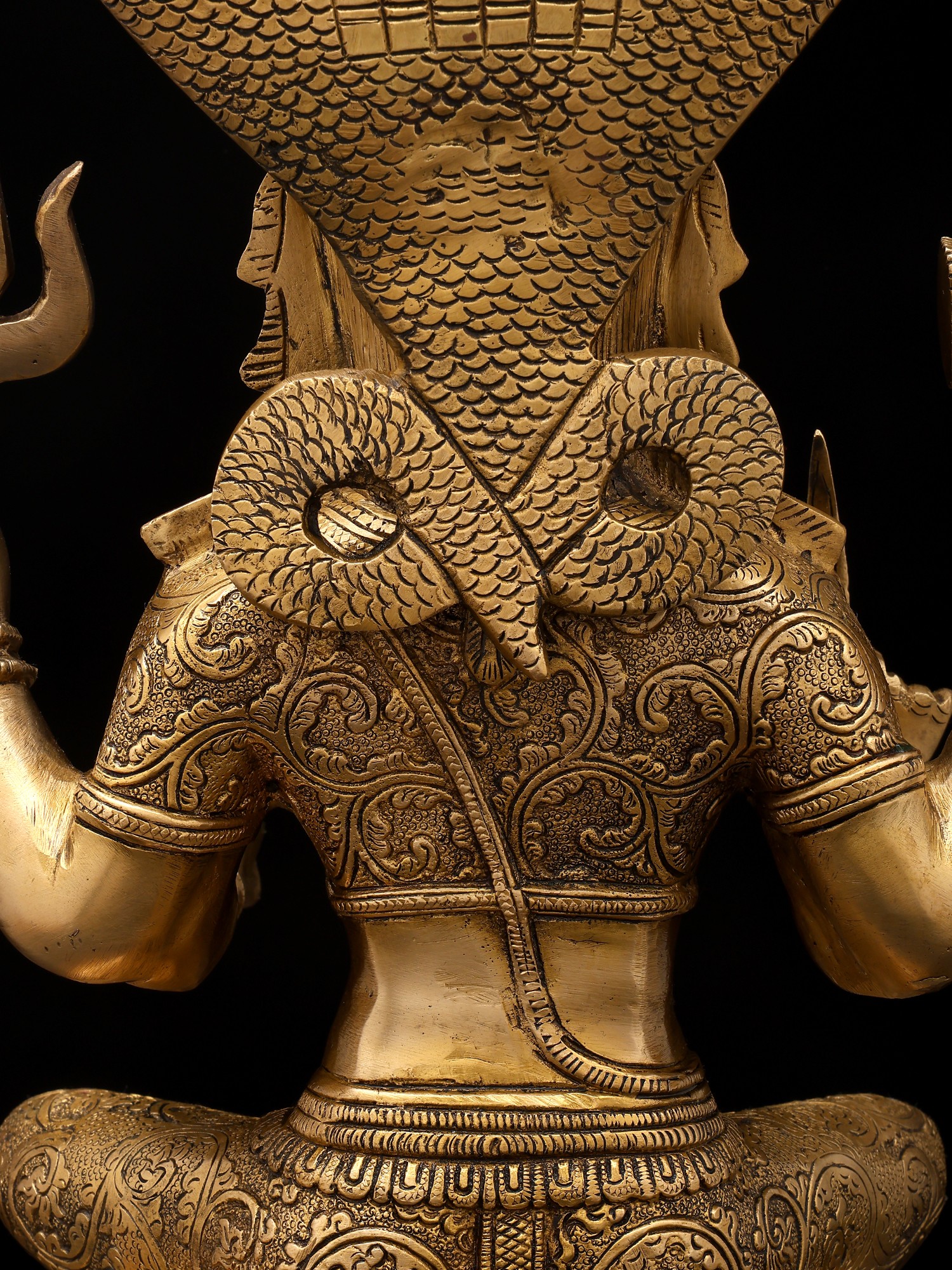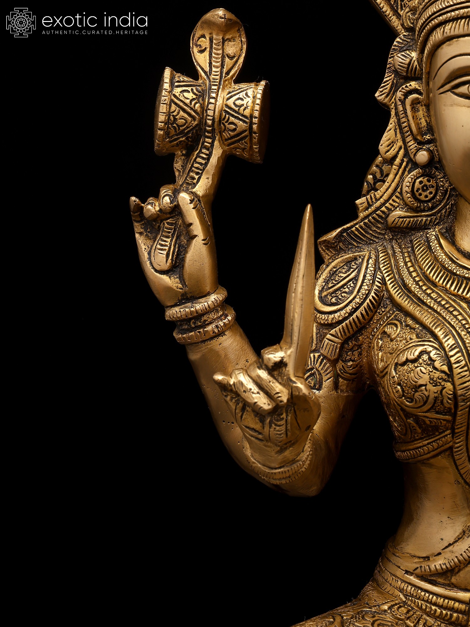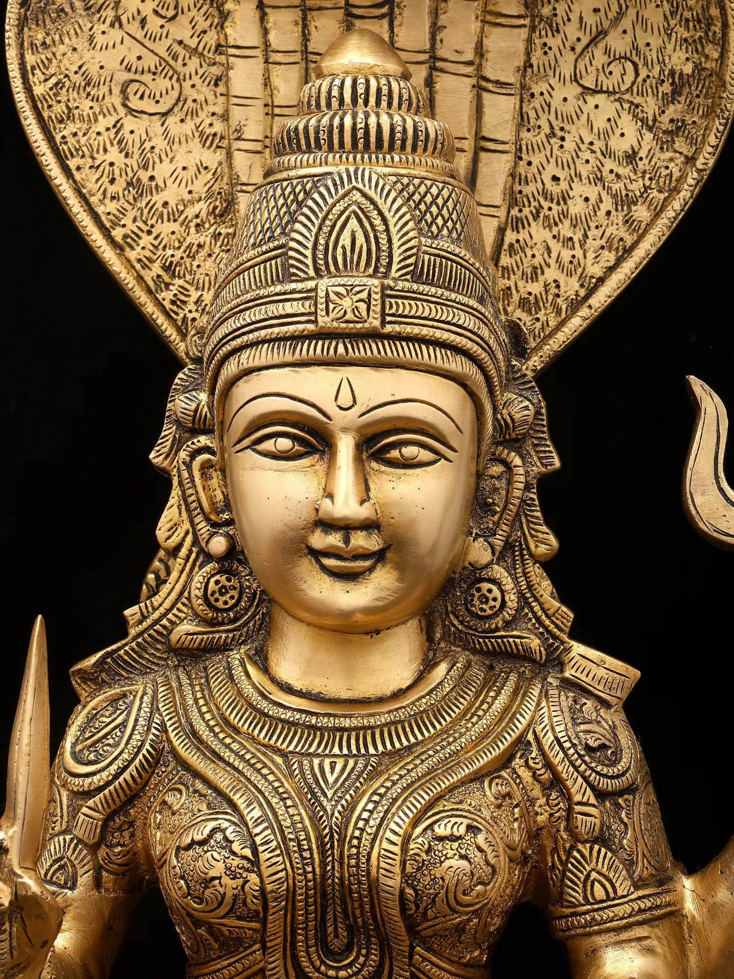 This exquisite idol is a testament to the skill and dedication of master artisans. Cast in high-quality brass, the statue exhibits a warm, inviting glow that is characteristic of this enduring metal. Every detail, from the intricate patterns adorning her garments and jewelry to the delicate rendering of her facial features and the majestic spread of the serpent hood, has been meticulously crafted. The patina achieved through skilled craftsmanship adds depth and character, highlighting the divine form and making it a truly captivating piece. The solid construction ensures its longevity, allowing it to be a cherished object of worship and artistic appreciation for generations to come. This is more than just an idol; it is a conduit of divine grace, a masterpiece of traditional artistry, and a symbol of hope and abundance.