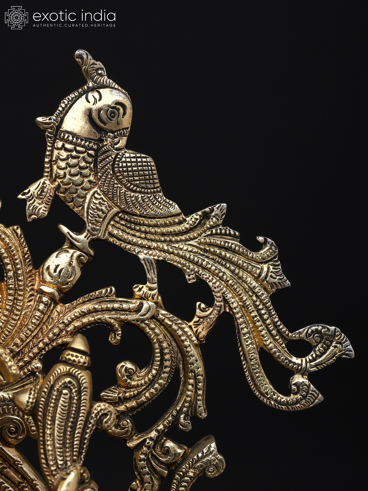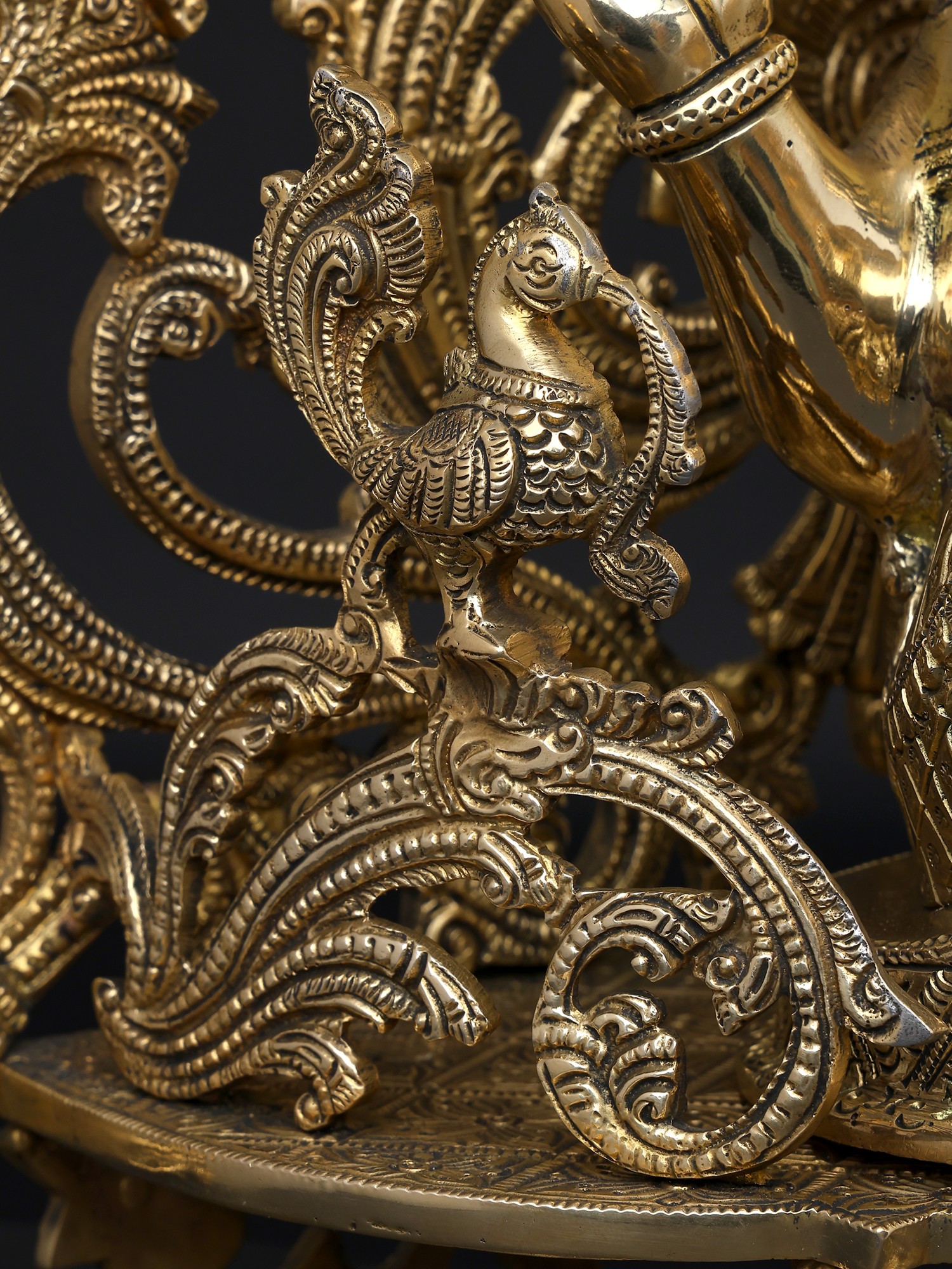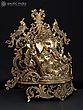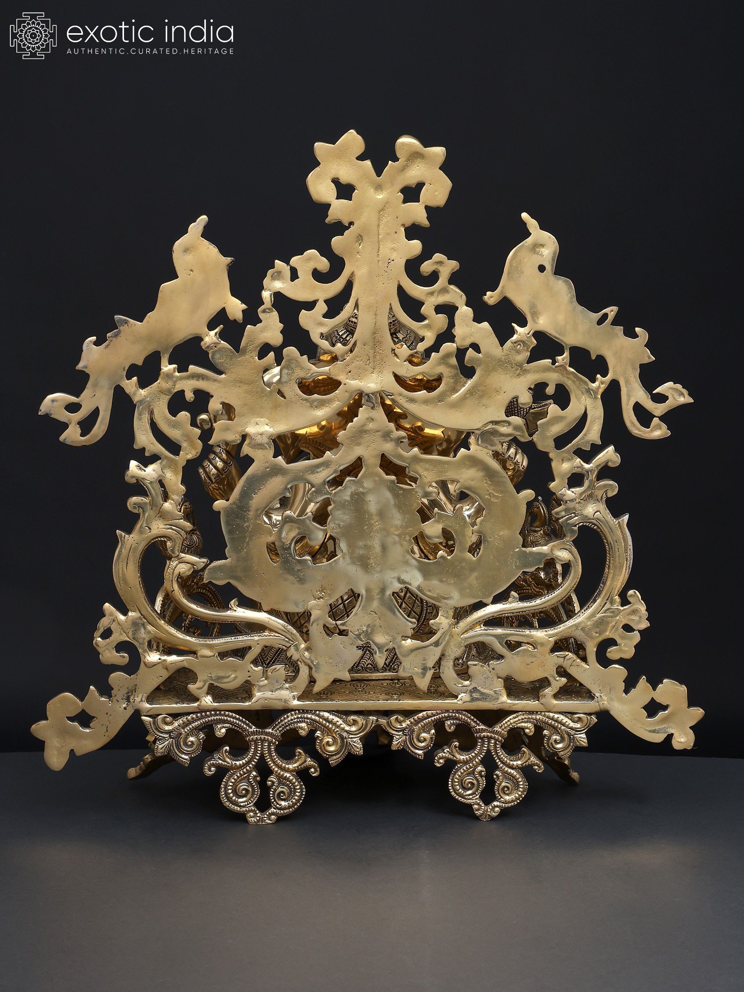 32" Brass Ganesha Idol Relaxing on Peacock Recliner | Brass Staute with Inlay Work