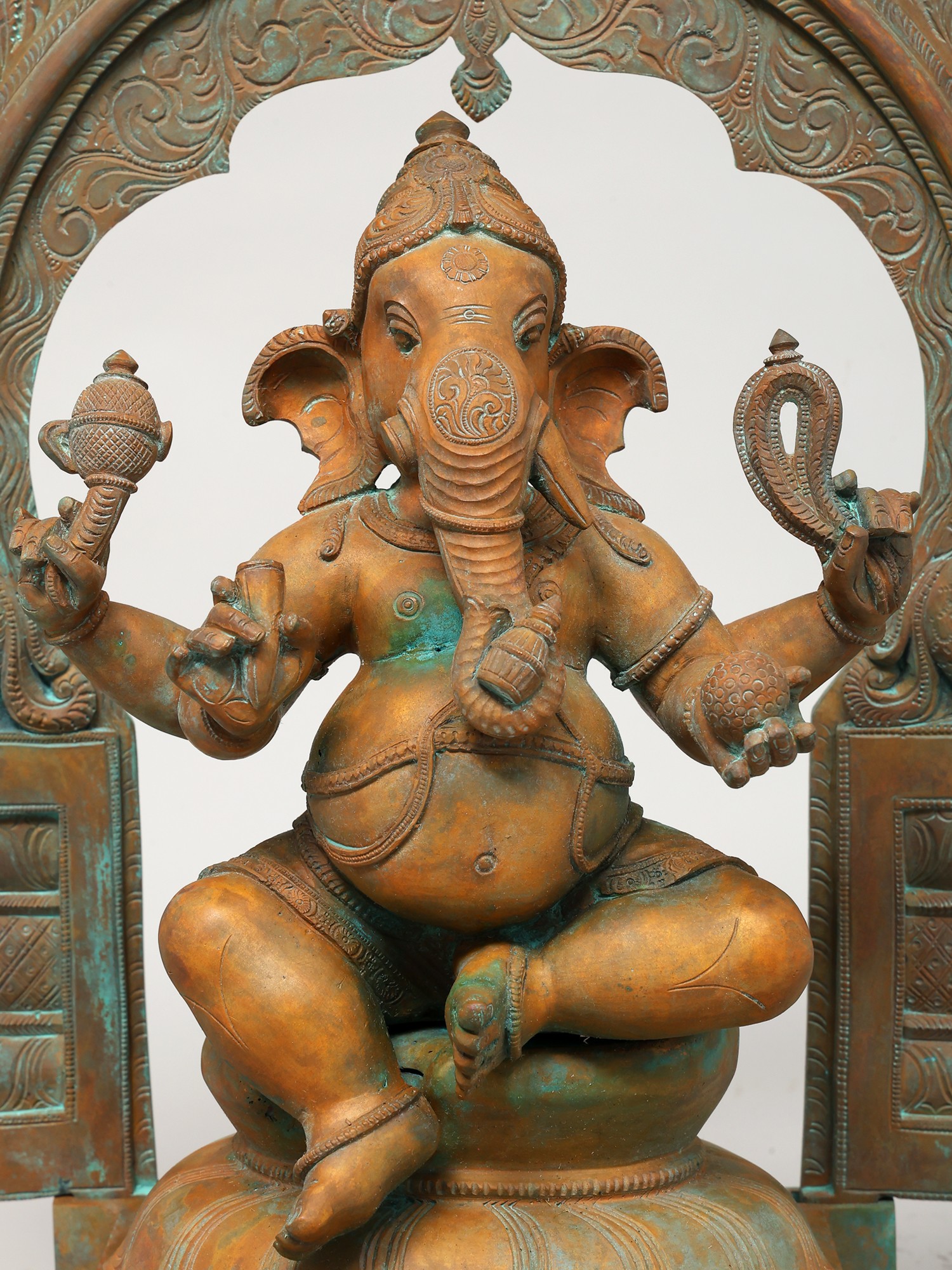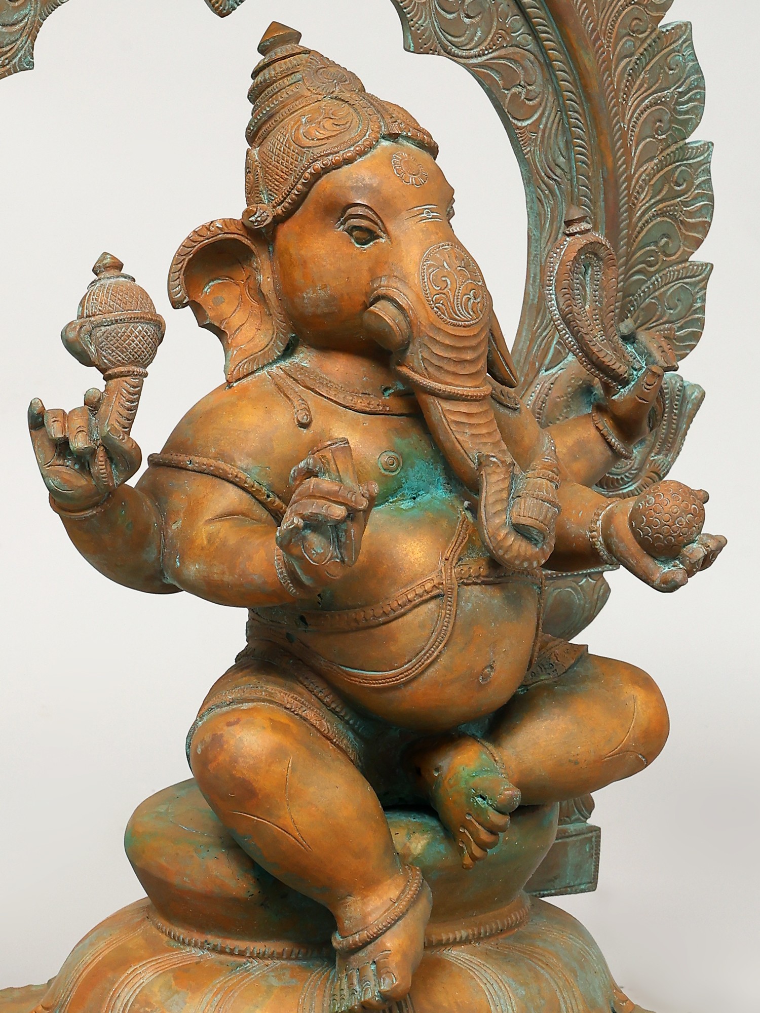 5" Small Four Headed Sitting Lord Ganesha | Bronze Statue