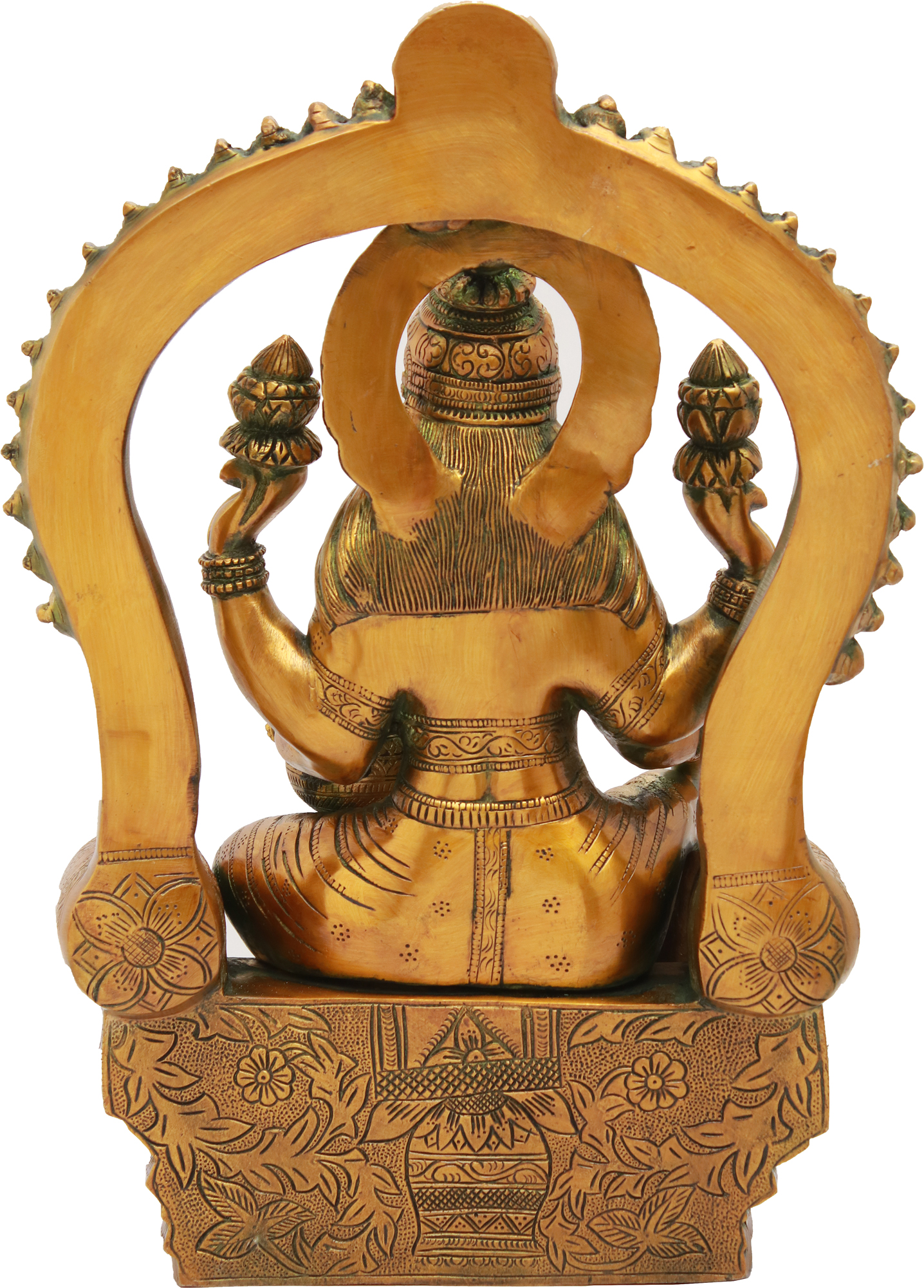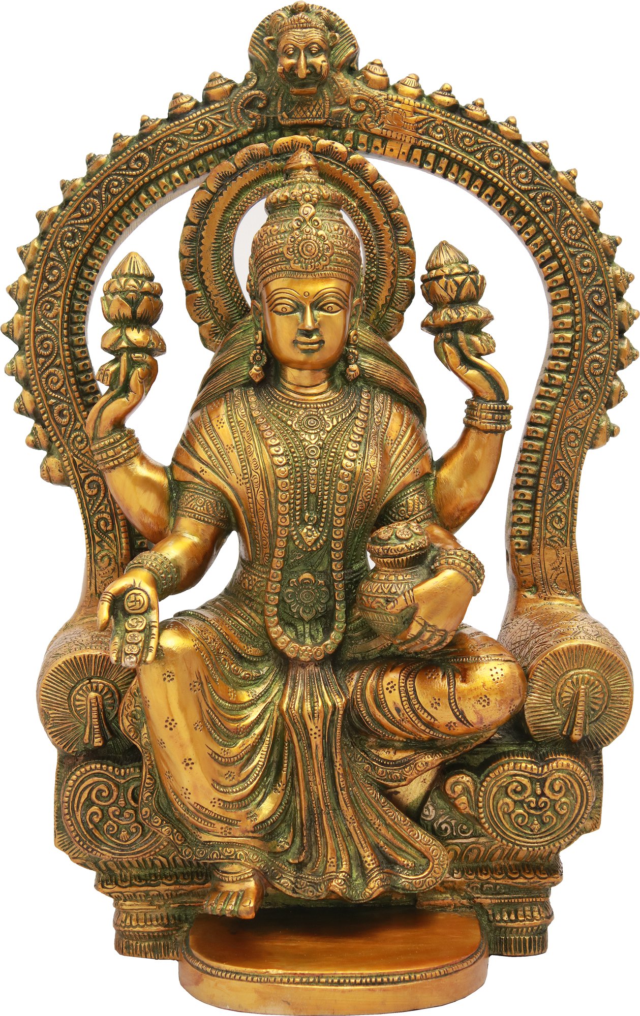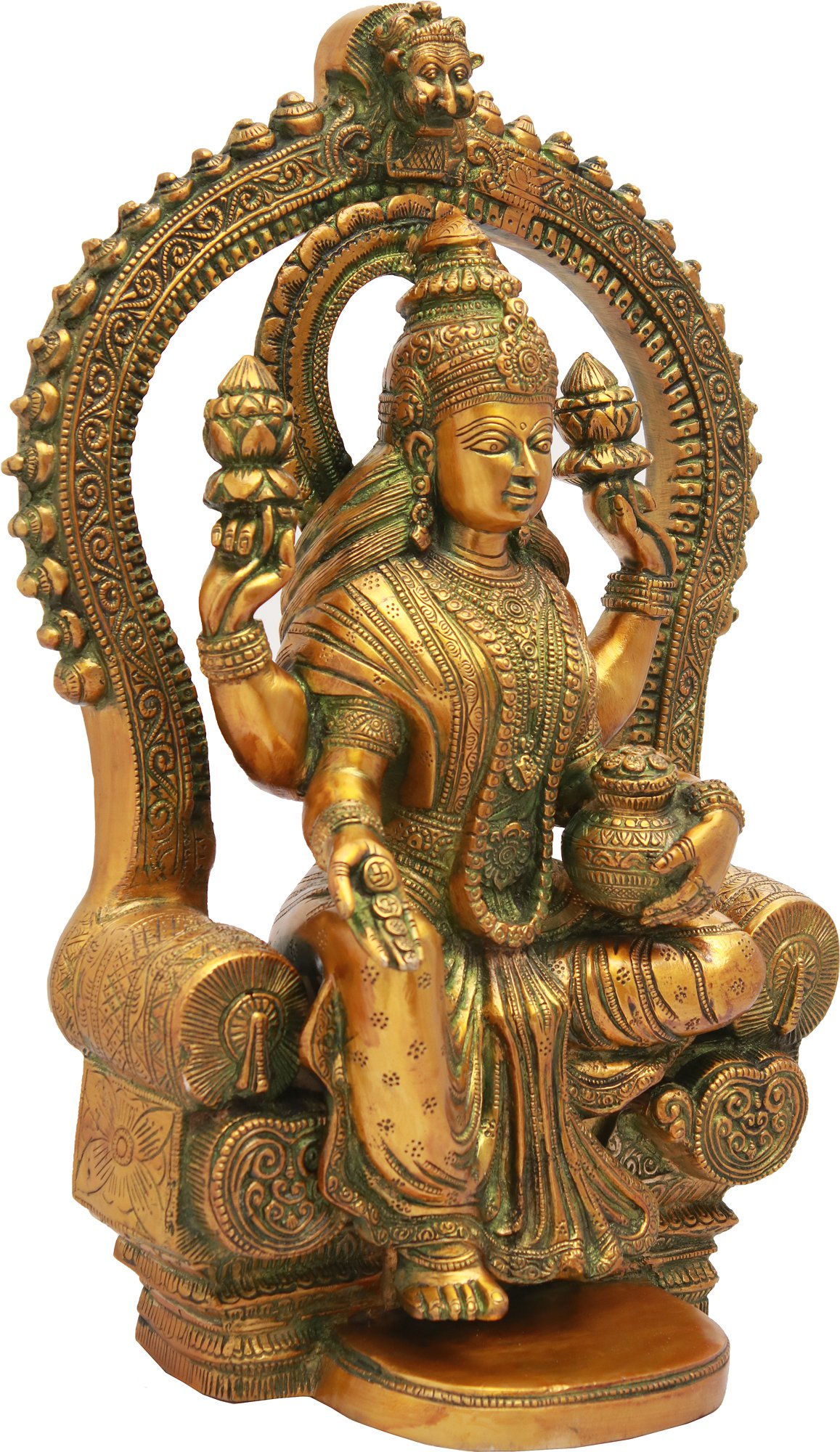 17" Goddess Lakshmi Seated on Throne with the Pot of Wealth In Brass | Handmade | Made In India