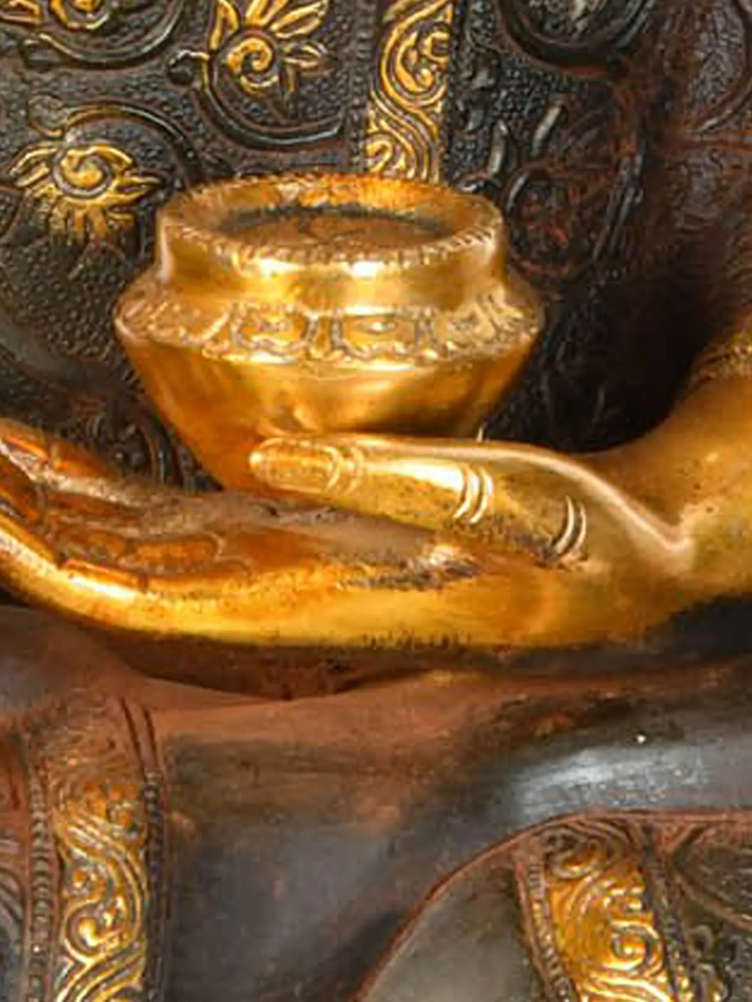 17" Lord Buddha Wearing a Carved Robe (Tibetan Buddhist) In Brass | Handmade | Made In India