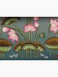 The painting that you see on this page is a premium, authentic pichhwai painting. A large, fabric-based canvas is painted over with the blue-grey waters of Yamuna. A multitude of lotuses and lotus-pads blooming in its bosom. At the centre of this canvas is a three-dimensional sculpture of the tribhanga murari, Krishna’s most popular iconography.