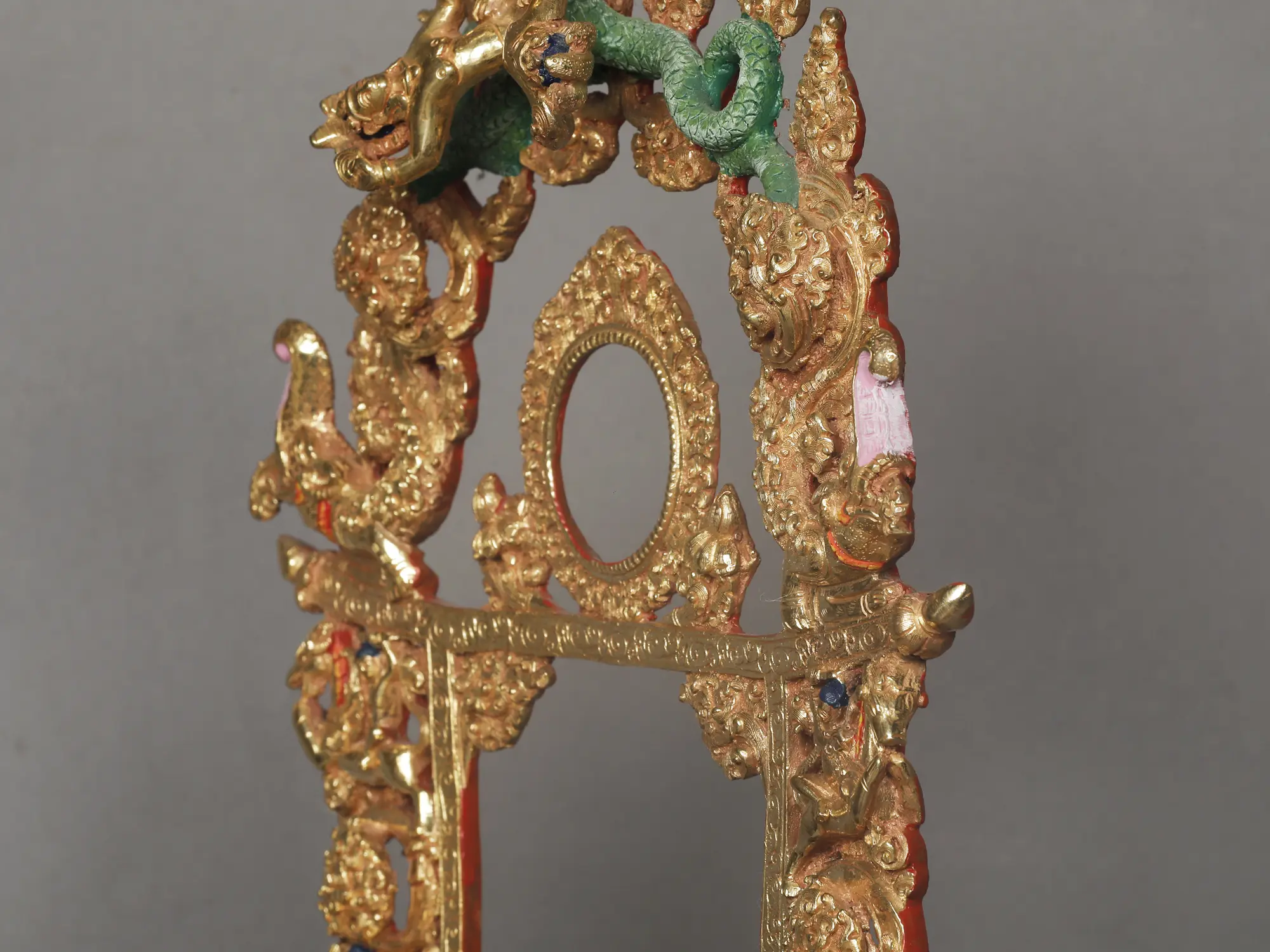17" Guru Padmasambhava Seated on Ornament Throne | Copper Statue from Nepal
