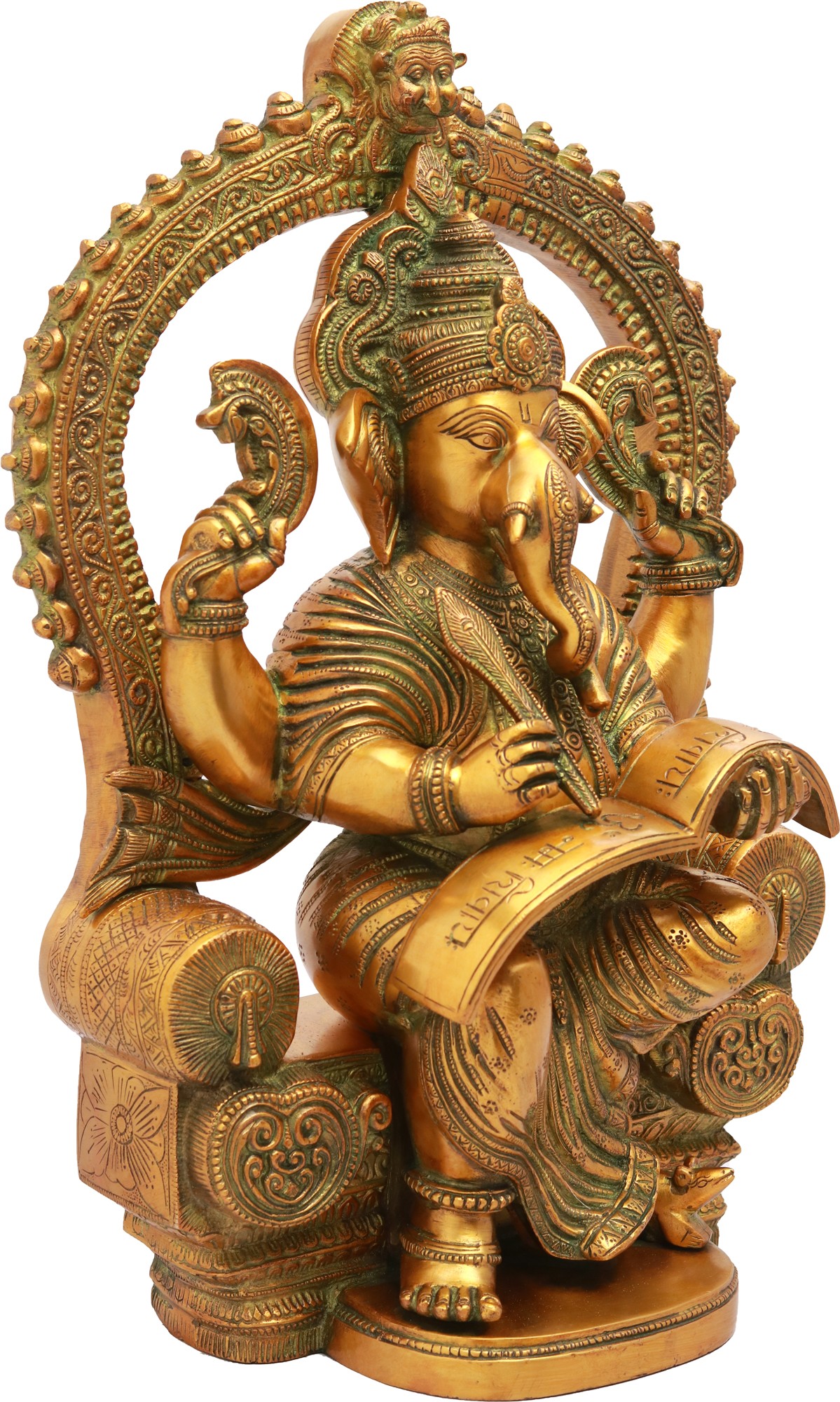 17" Royal Throne Ganesha Writing Om Namaha Shivaya In Brass | Handmade | Made In India