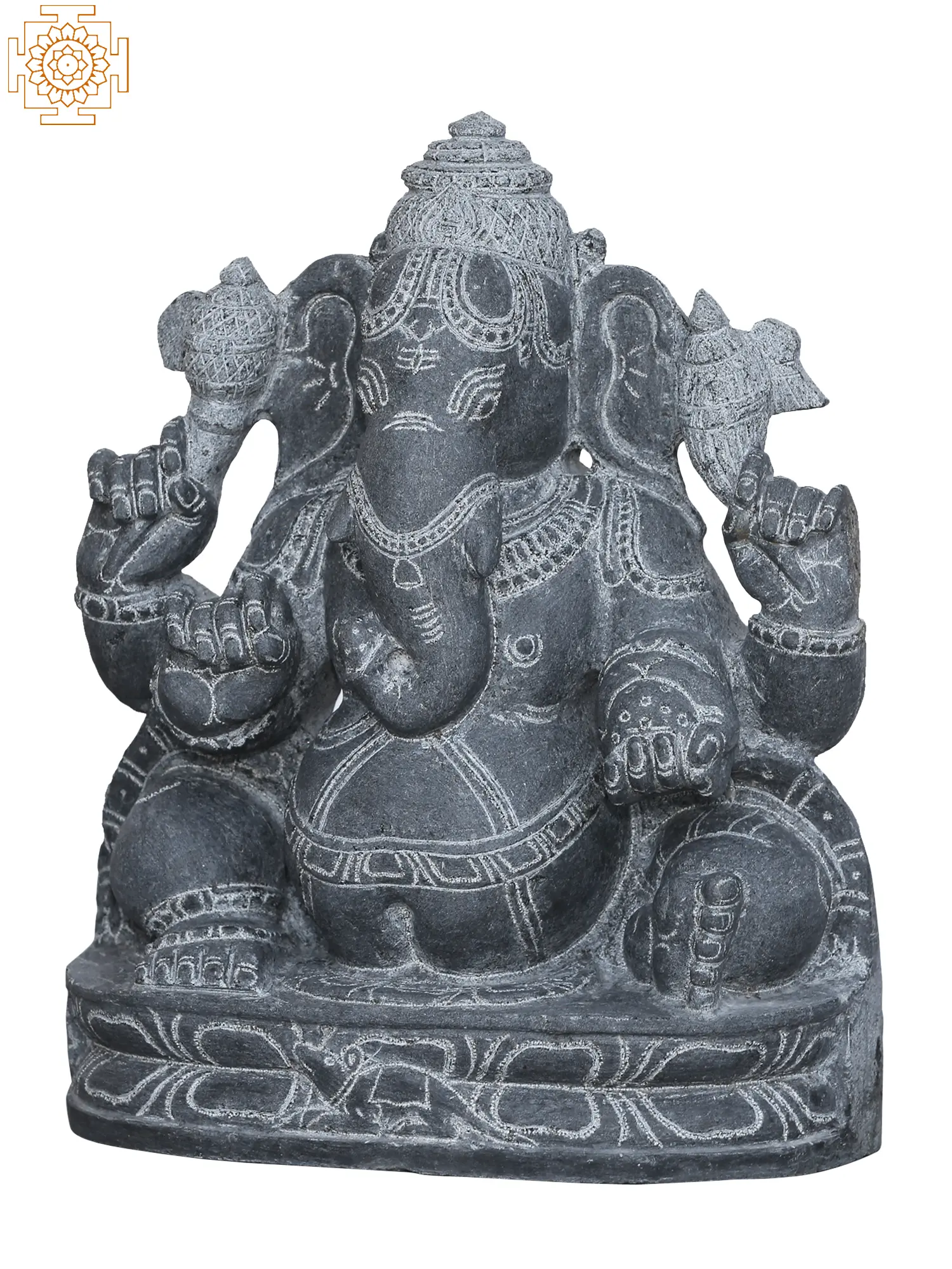 This Chaturbhuj Ganesha statue represents the beloved deity with four arms, representing his innate ability to guide devotees down many pathways.