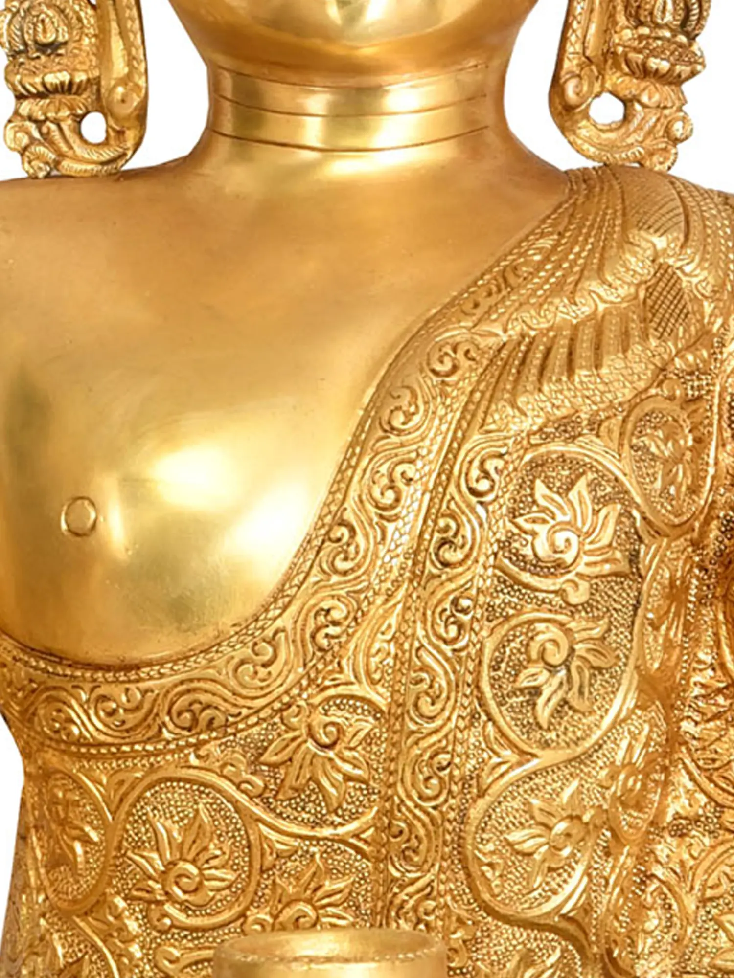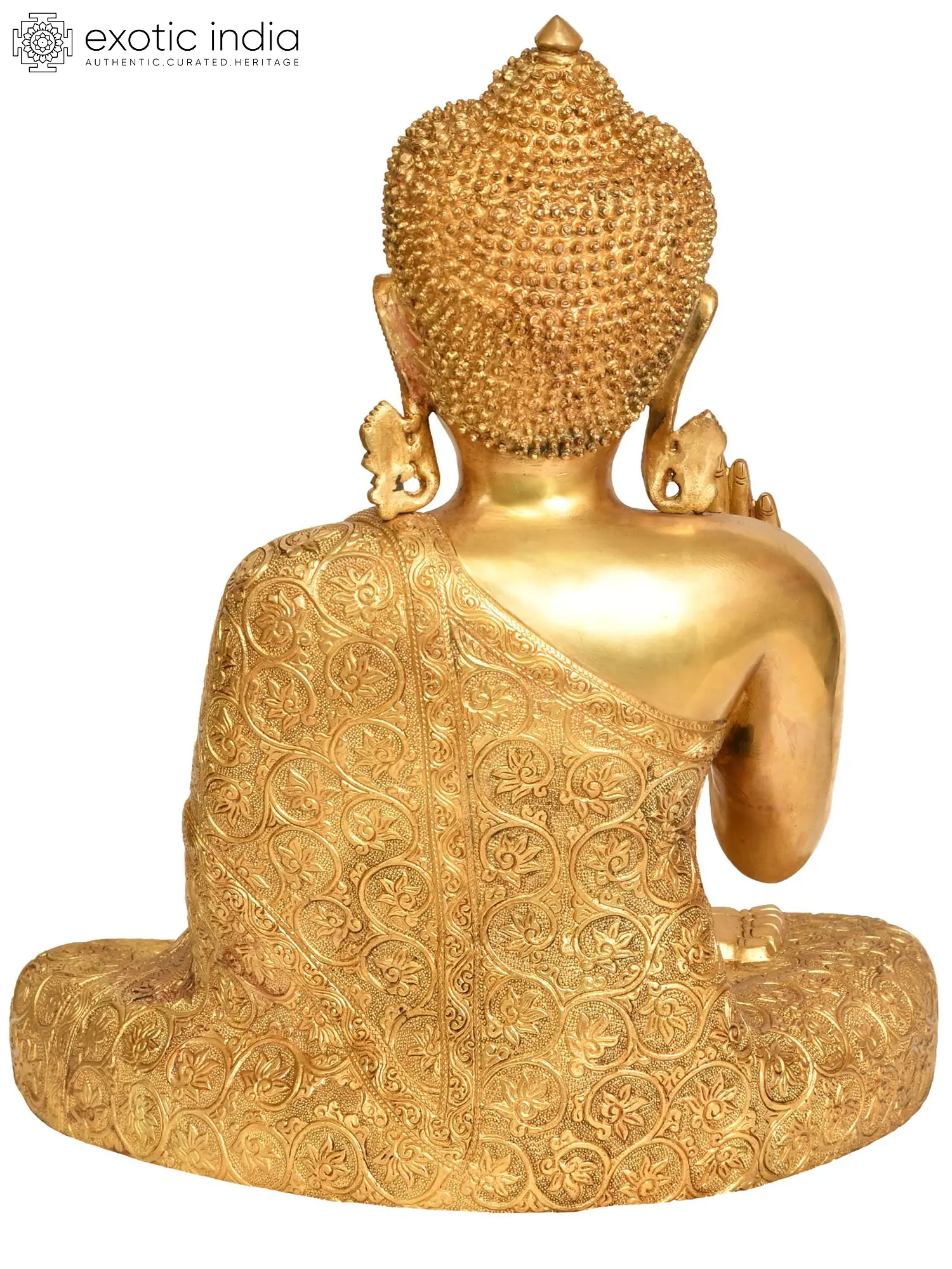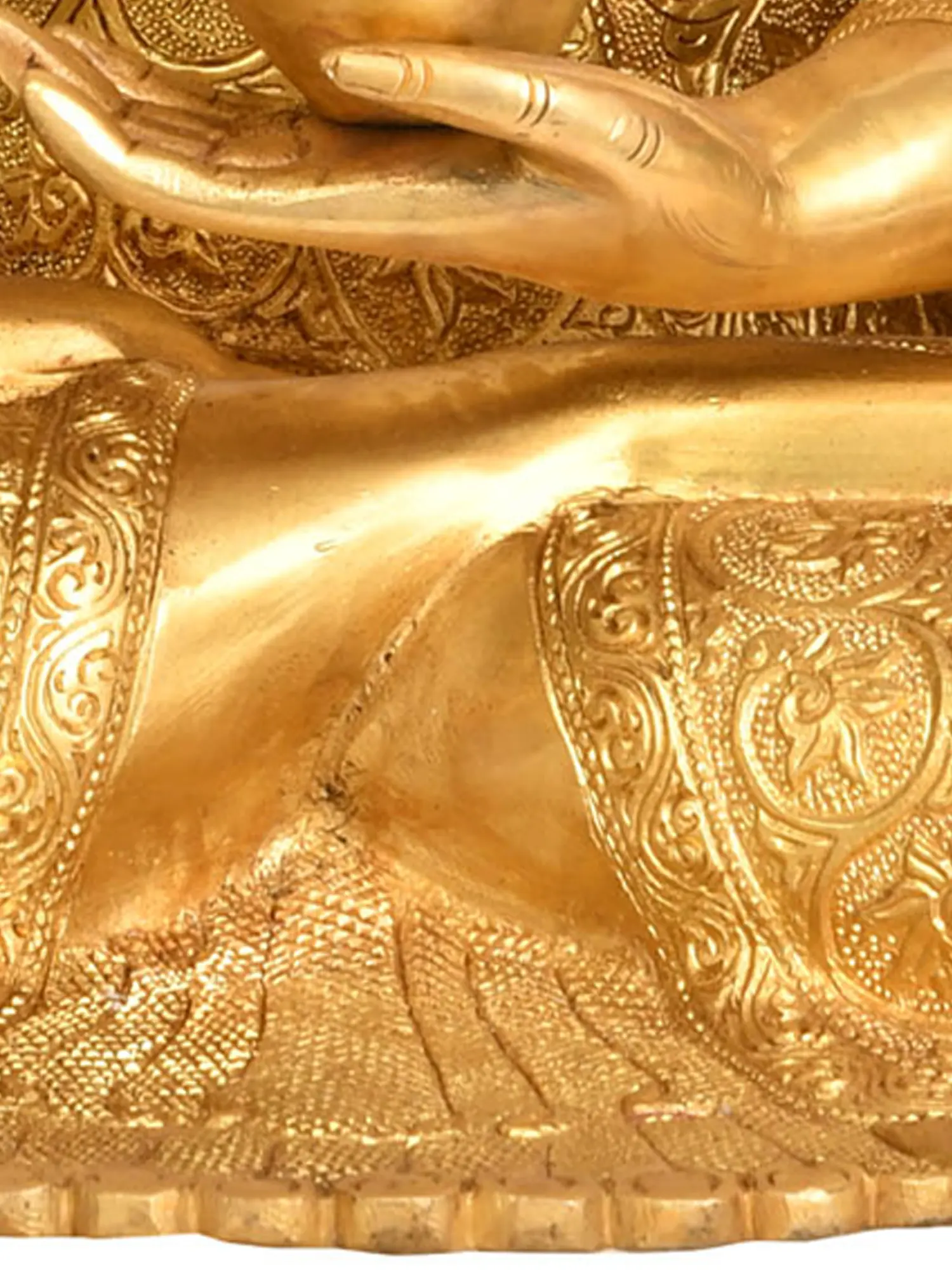 17" Tibetan Buddhist Deity Preaching Buddha with Superfine Carbed Robe In Brass | Handmade | Made In India