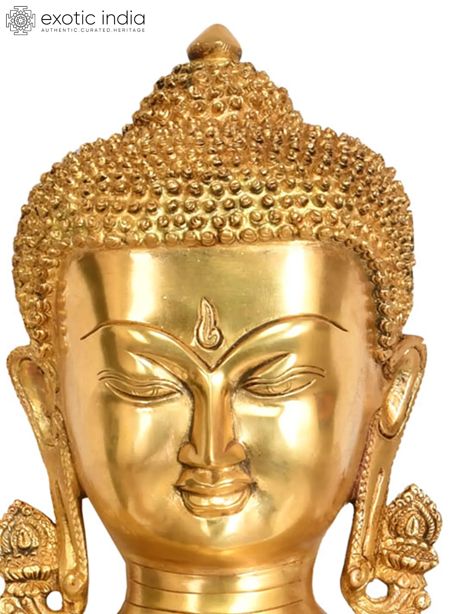 Immerse your space in profound tranquility and spiritual grace with this exquisite brass statue depicting the Buddha in a posture of compassionate teaching. Crafted with meticulous attention to detail in India, this masterpiece embodies centuries of artistic tradition and spiritual devotion. The radiant gleam of brass, a metal revered in many cultures for its purity and auspicious qualities, amplifies the serene aura of the divine figure.