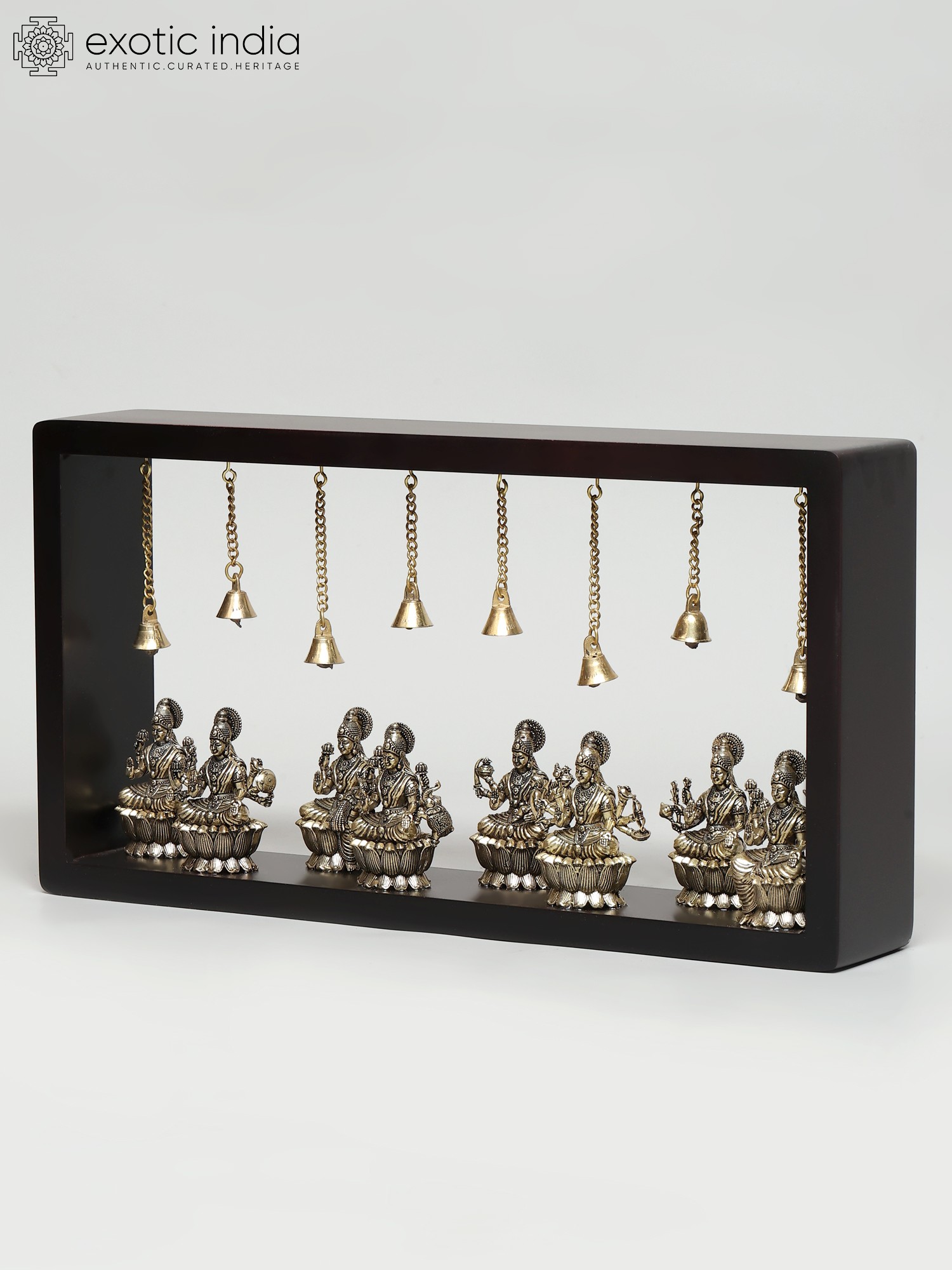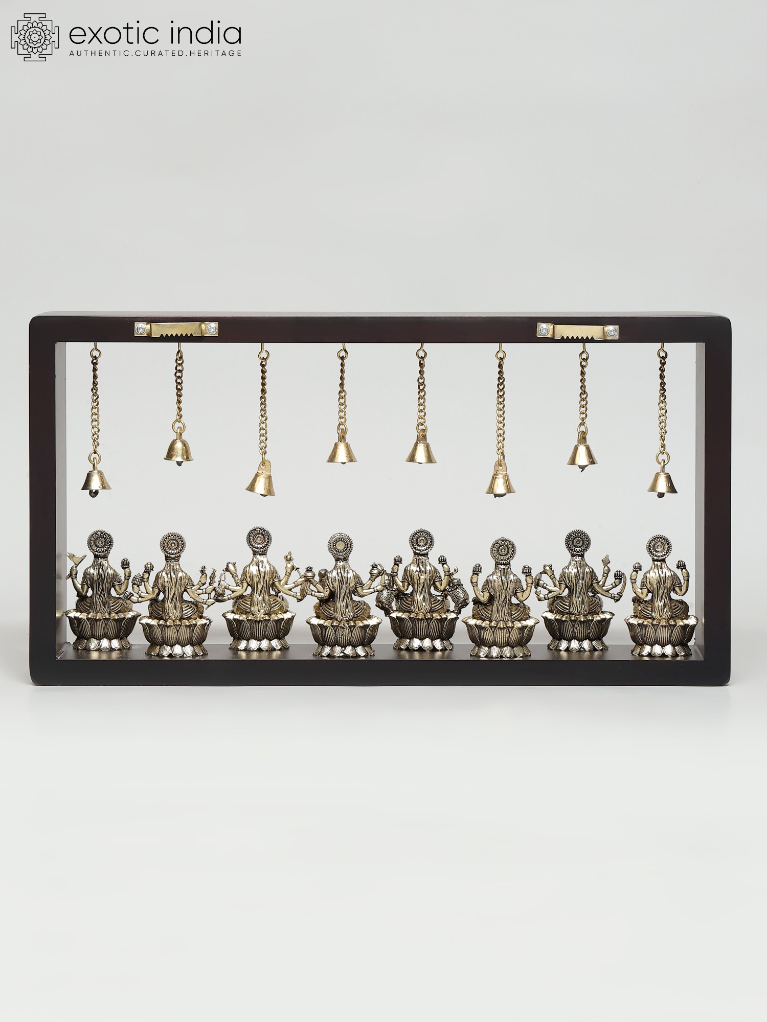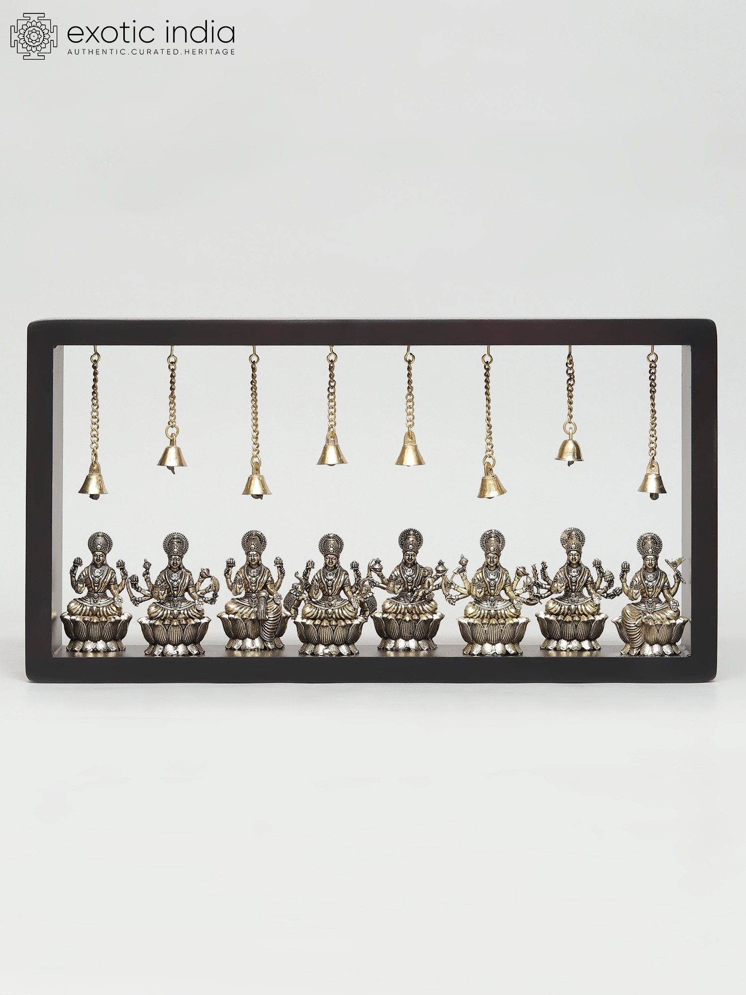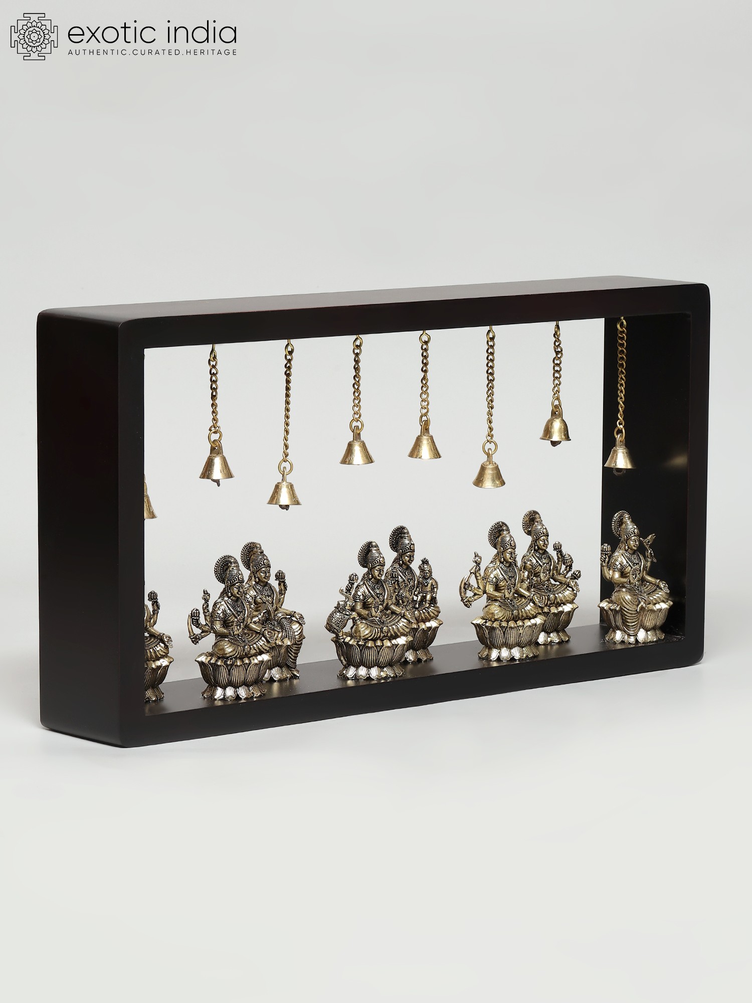 10" Superfine Goddess Durga (Sherawali Maa) with Dangling Bells | Wood Framed Brass Sculpture | Wall Hanging