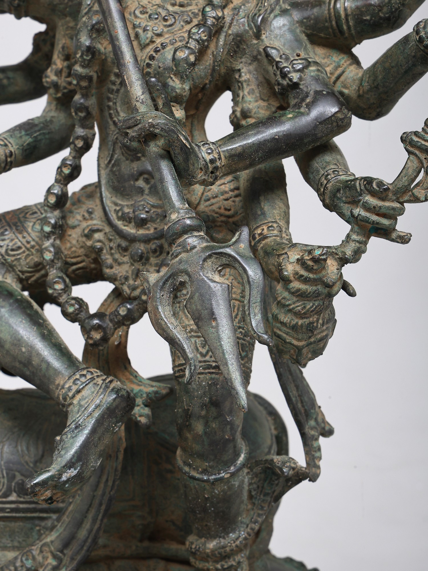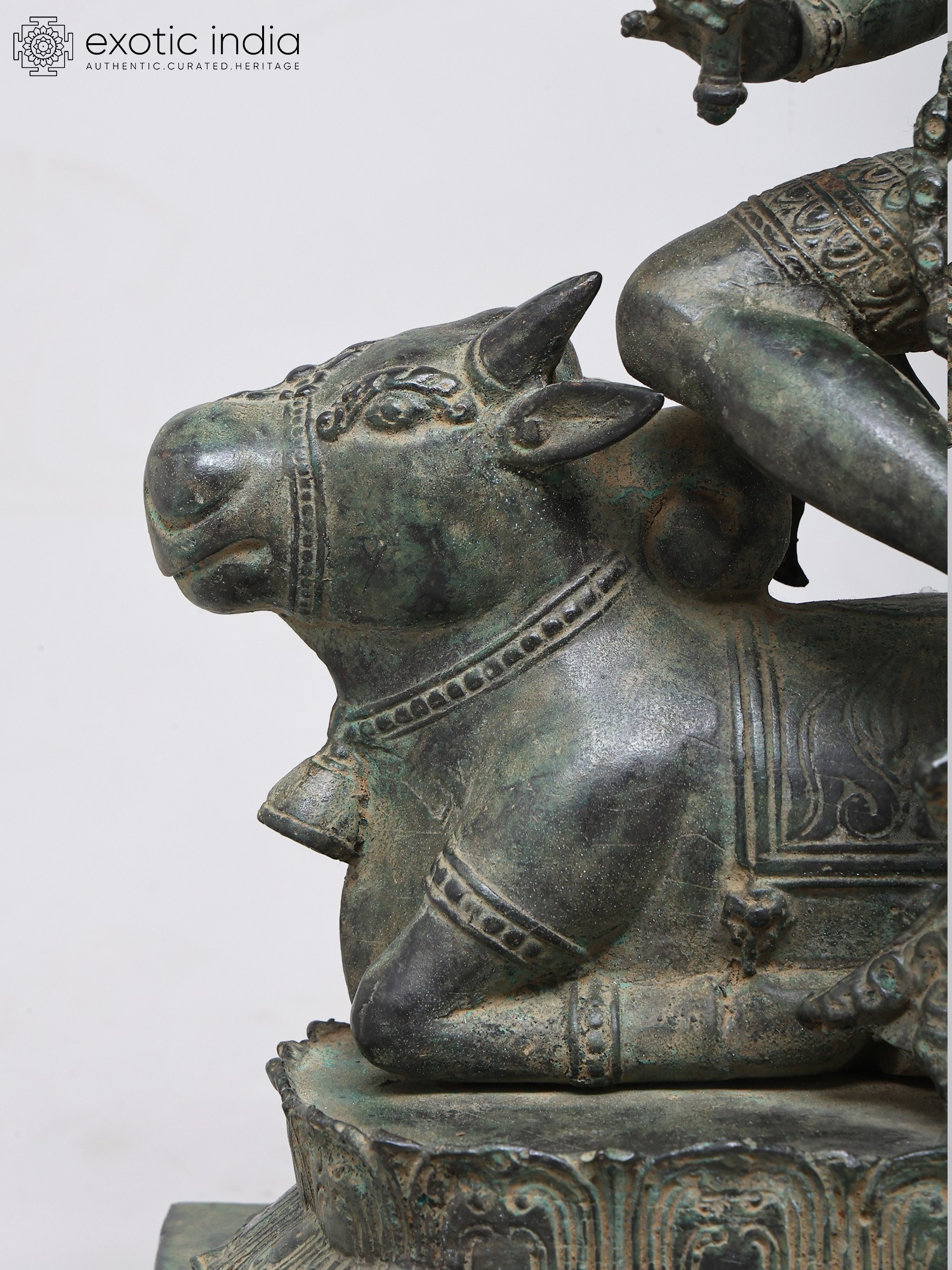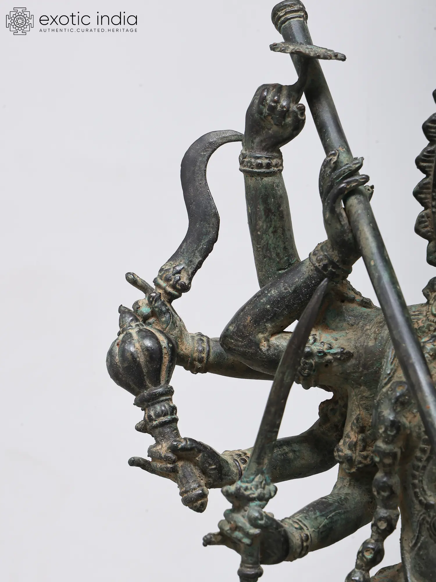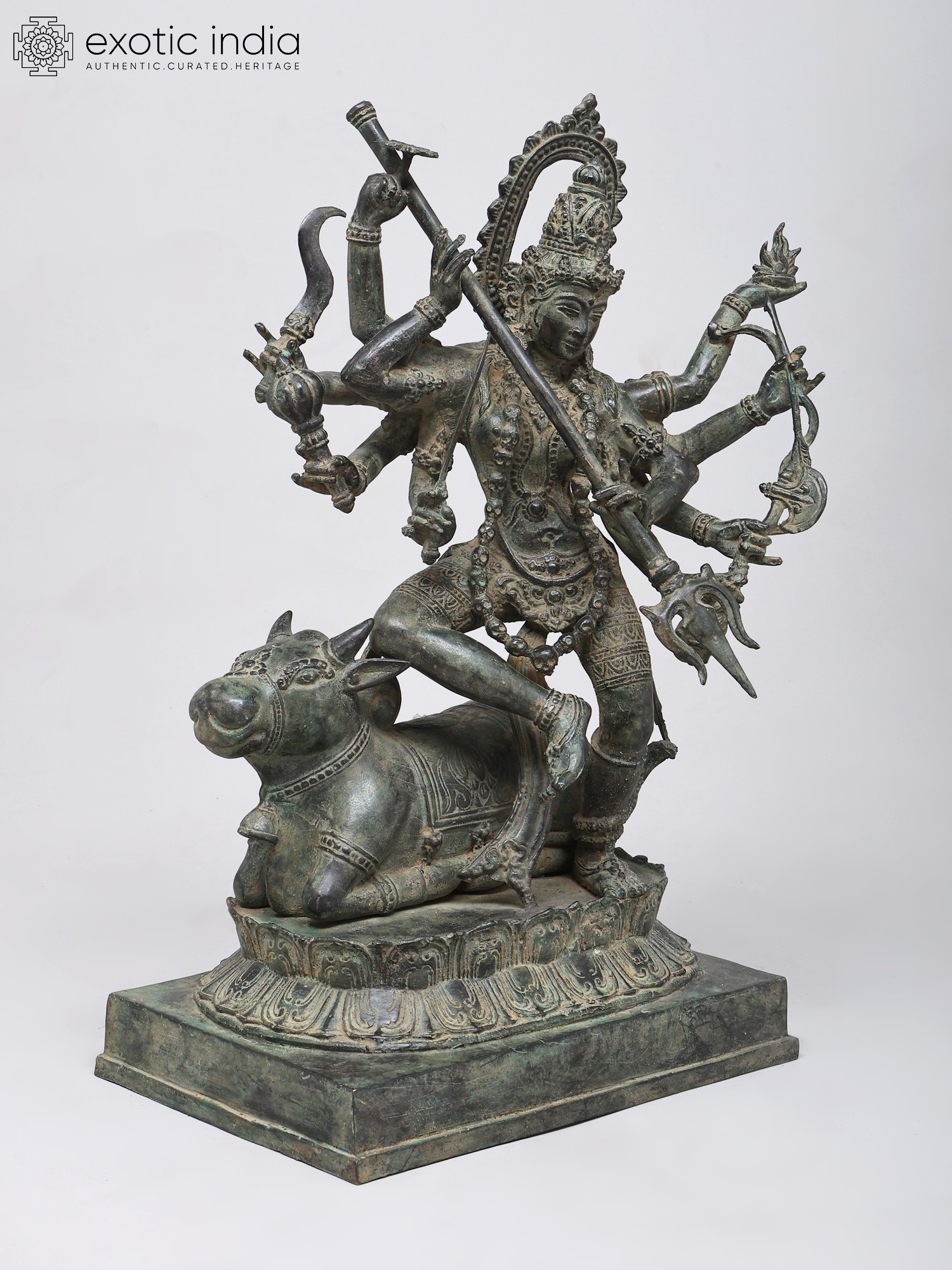 13" Goddess Bathari Durga with Bhairava Standing on Nandi In Brass | Handmade | Balinese Brass Statue