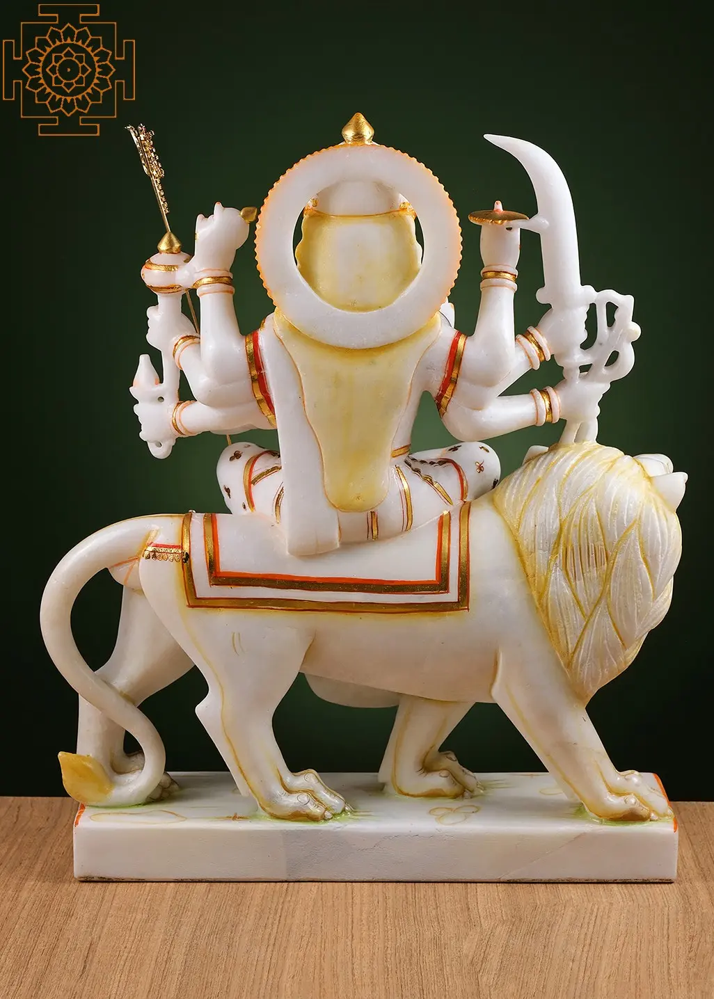 18" Ashtabhuja Devi Durga | Handmade | Marble Durga Maa Statue | Marble Durga Murti | Goddess Durga Idol Sitting on Lion | Ambe Maa Murti