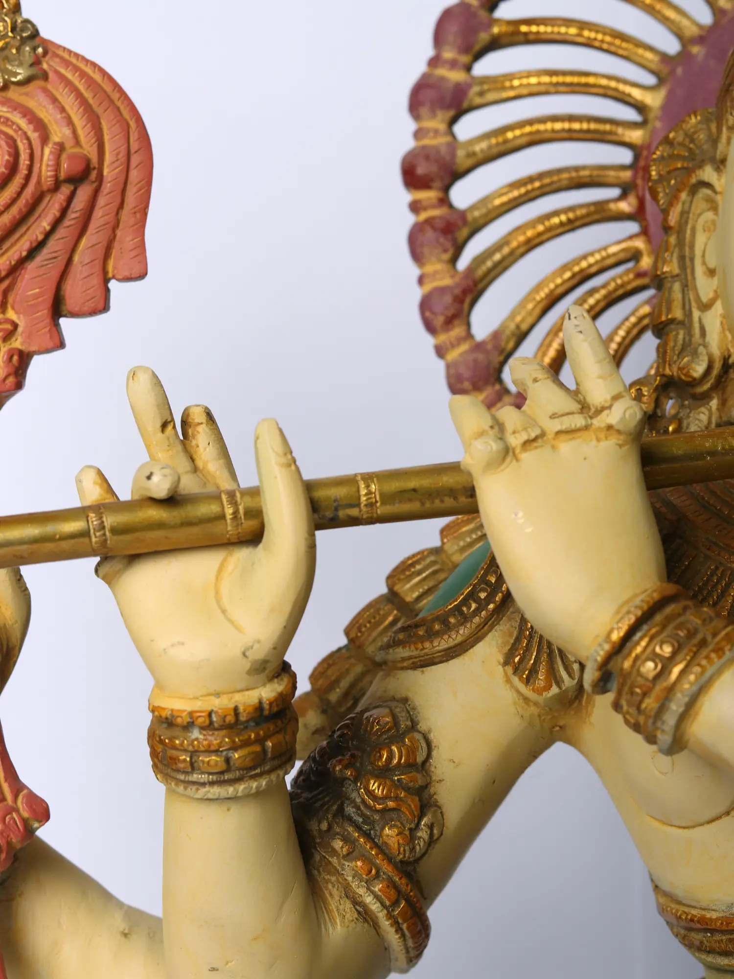 14" Black and Gold Lord Venugopal (Krishna) Playing Flute with Cow | Brass Statue