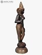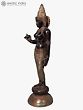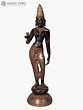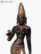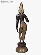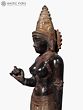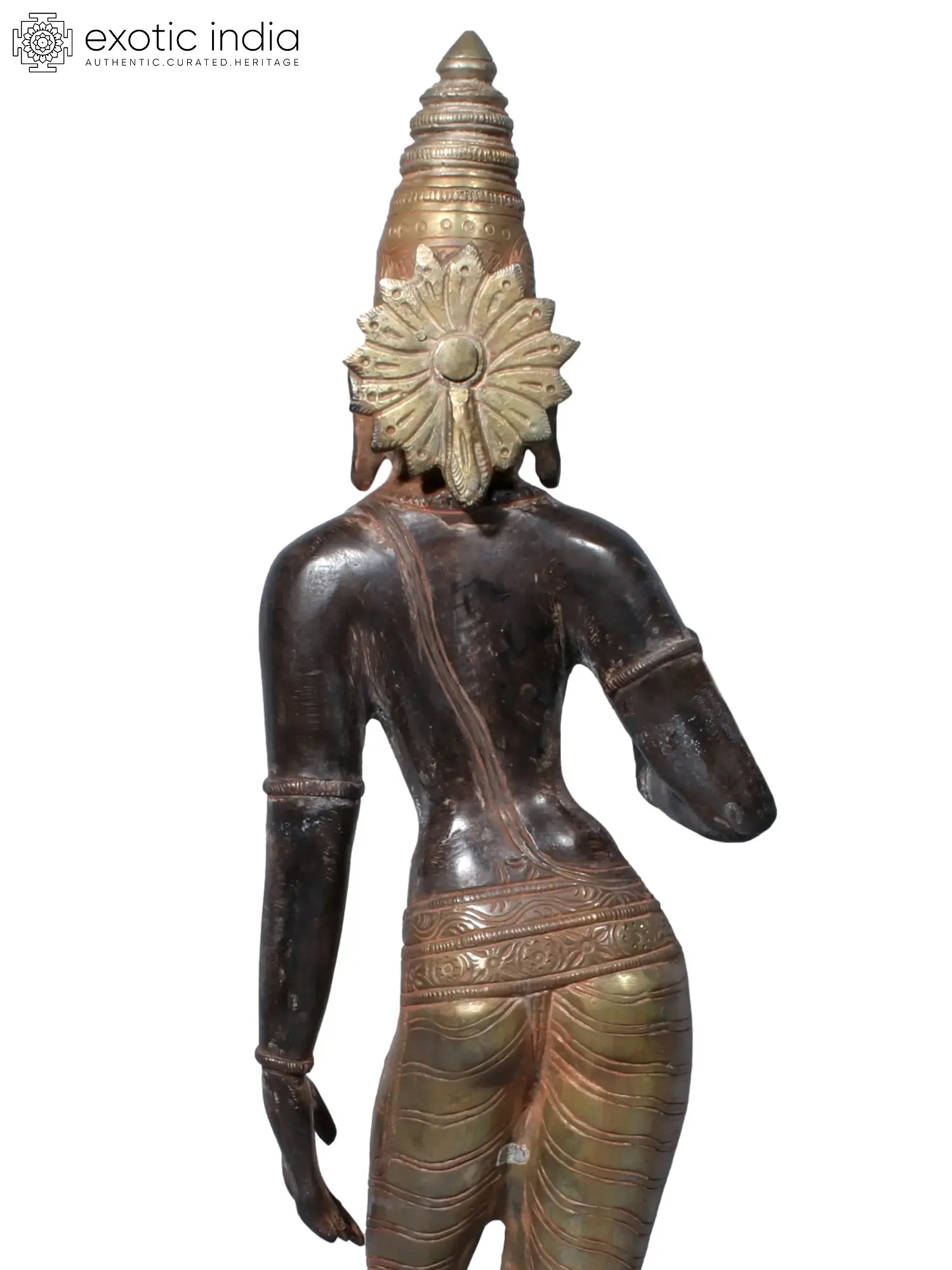 This exquisite brass statue captures the essence of Devi Parvati, the benevolent consort of Lord Shiva and the mother of the universe. Standing at an imposing eighteen inches, the sculpture exudes a profound sense of grace and serene power. Parvati, also known as Uma, is revered as the goddess of fertility, love, beauty, marriage, children, and devotion. She represents the divine feminine energy, a source of creation and sustenance, and a symbol of unwavering devotion and strength. The craftsmanship of this piece is truly remarkable, showcasing the artisan's deep understanding of traditional iconography and their skill in working with brass. The dark patina of the metal contrasts beautifully with the polished areas, highlighting the intricate details of the goddess's form. Her stance is elegant and commanding, with one hand gently raised, possibly in a gesture of blessing or offering, while the other rests by her side. The delicate modeling of her features, from her serene expression to the subtle curve of her lips, conveys a profound sense of peace and compassion. ––––––––––––––––––