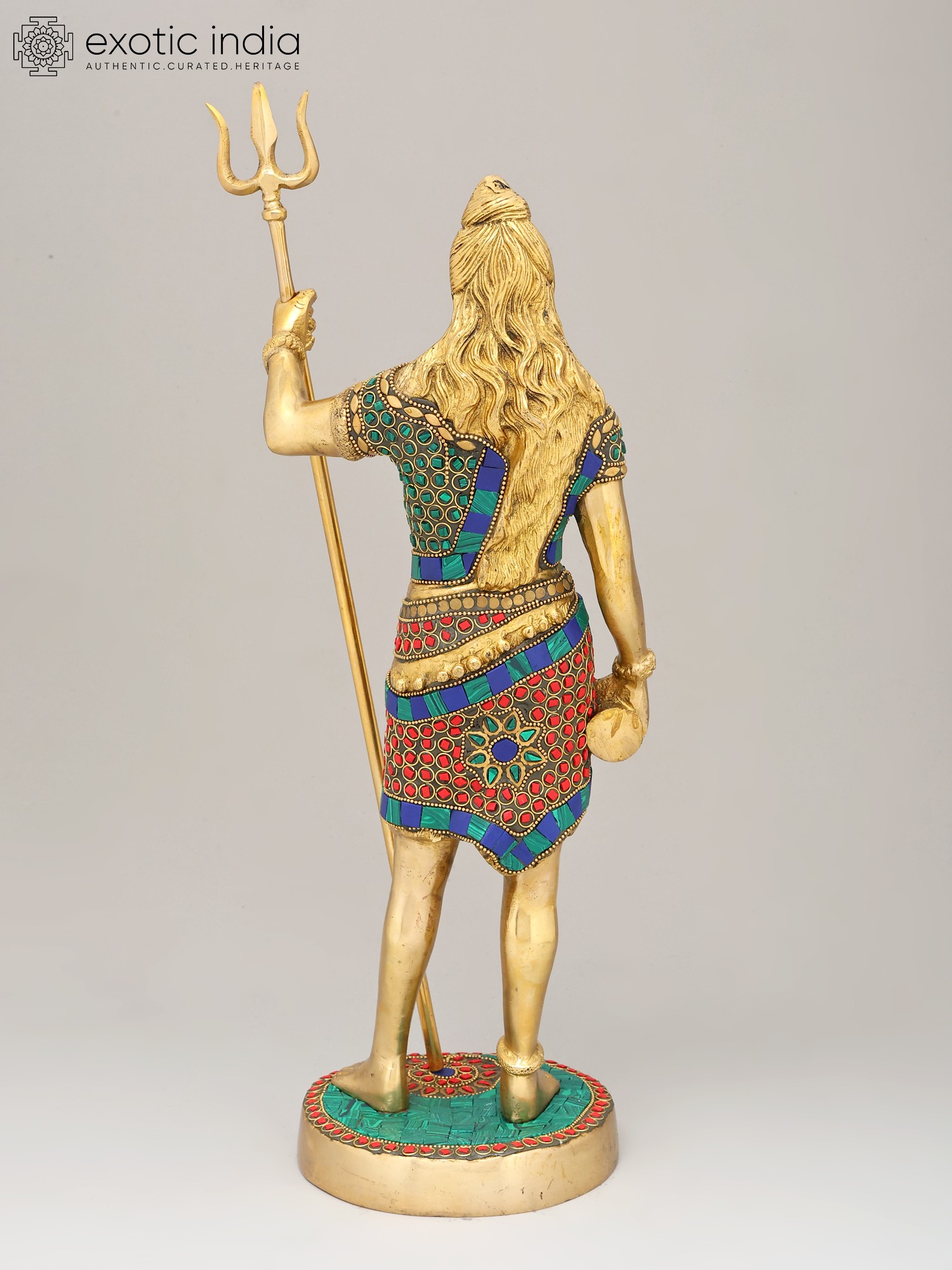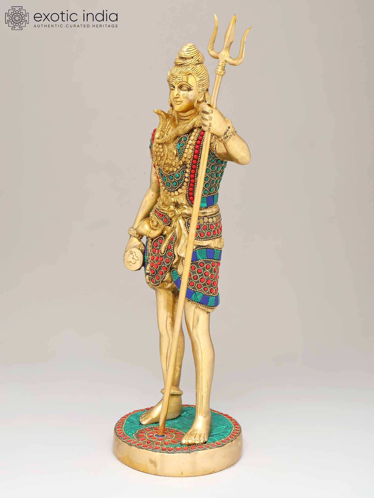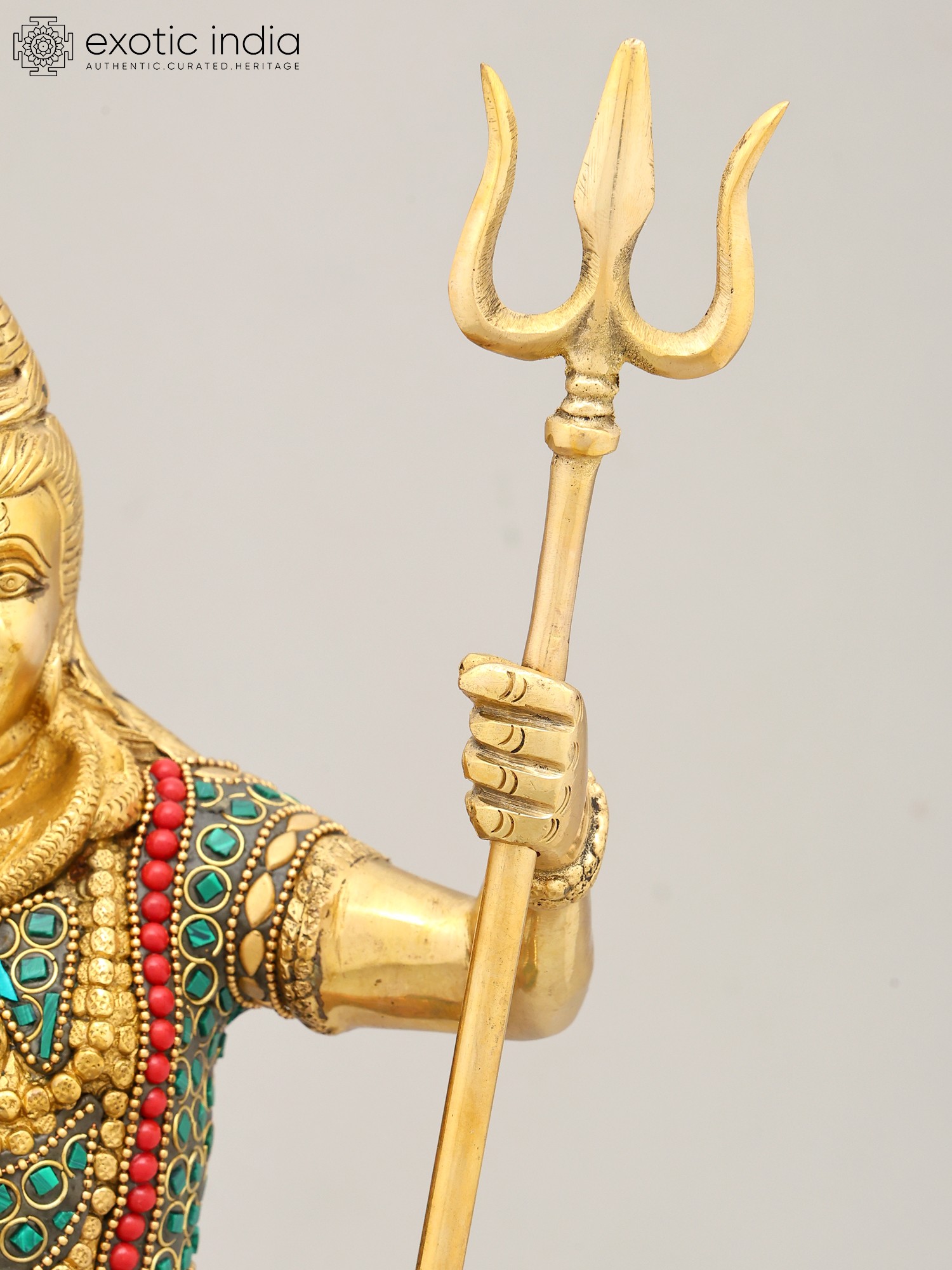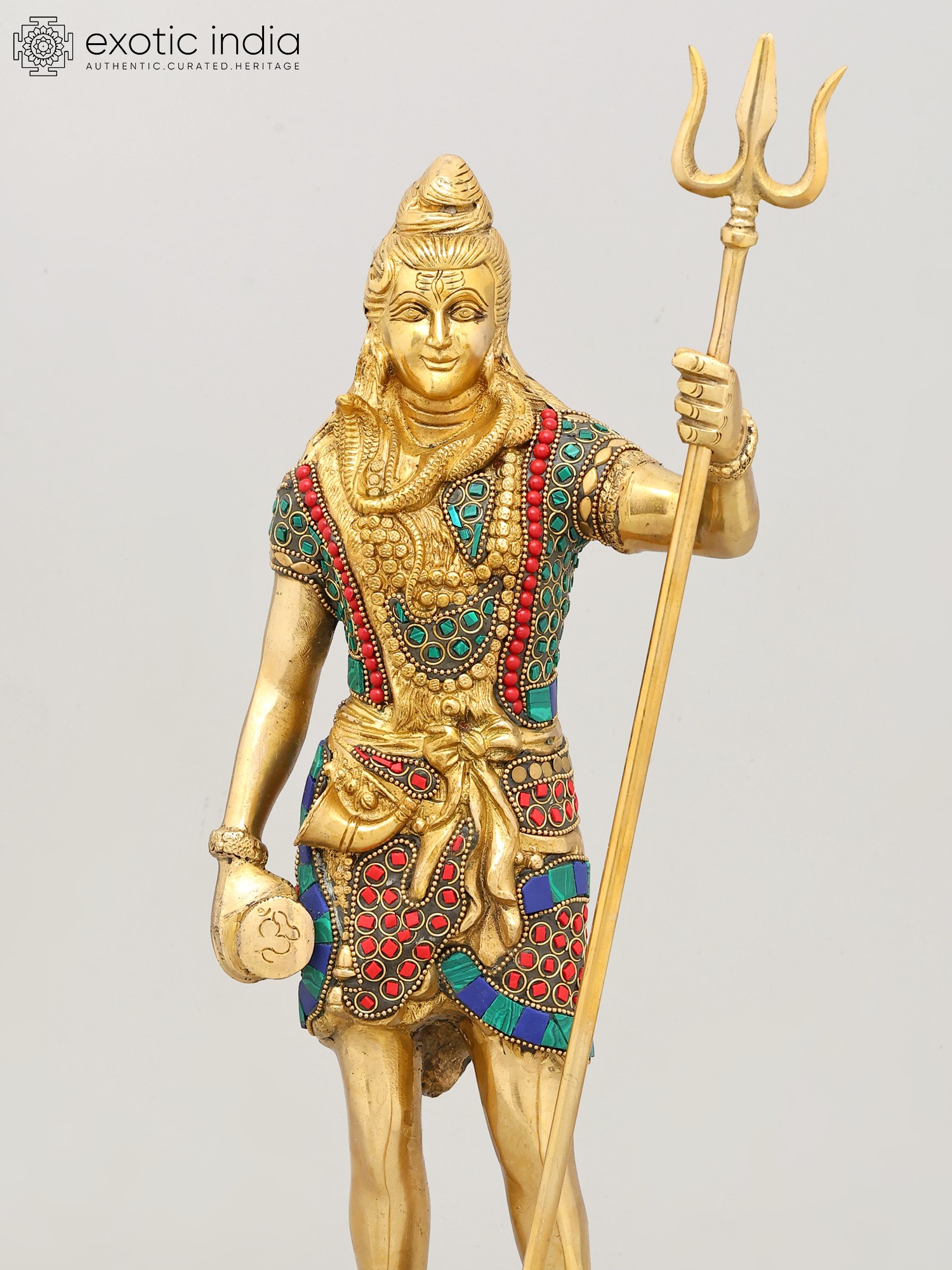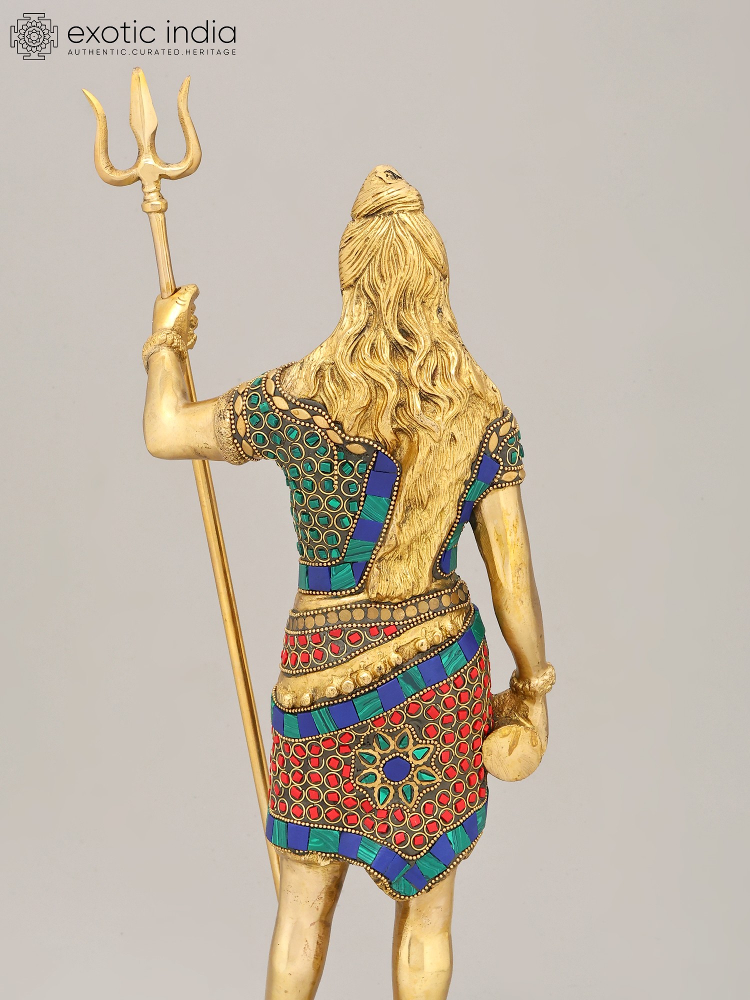 18" Brass Standing Shiva with Inlay Work | Handmade