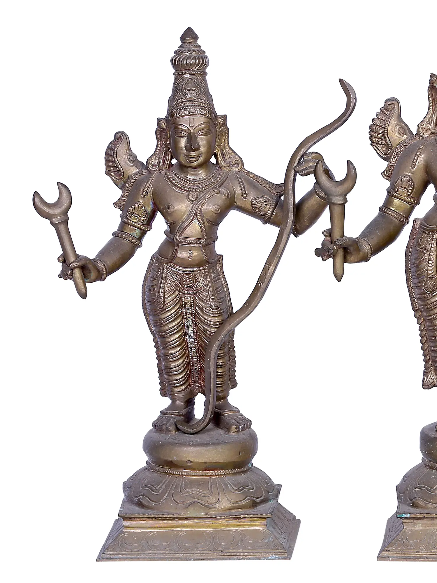 16" Lord Krishna Standing on Lotus Pedestal Playing Flute | Sandalwood Carved Statue