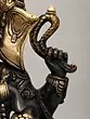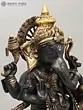 His ornaments are painted in a beautiful golden tint, and his dhoti is maroon, intricately engraved with white sedimentation designs. Ganesha is seated on a pedestal with a wavy pattern, where each square contains auspicious symbols such as the lotus, Om, Shri, and an image of Lord Ganesha at the center. This unique and dramatic painting style enhances the statue’s allure, making it a magnificent addition to any space of reverence. This statue embodies the divine Aishwarya, encompassing wealth, crops, health, home, and knowledge, and also represents authority and leadership.