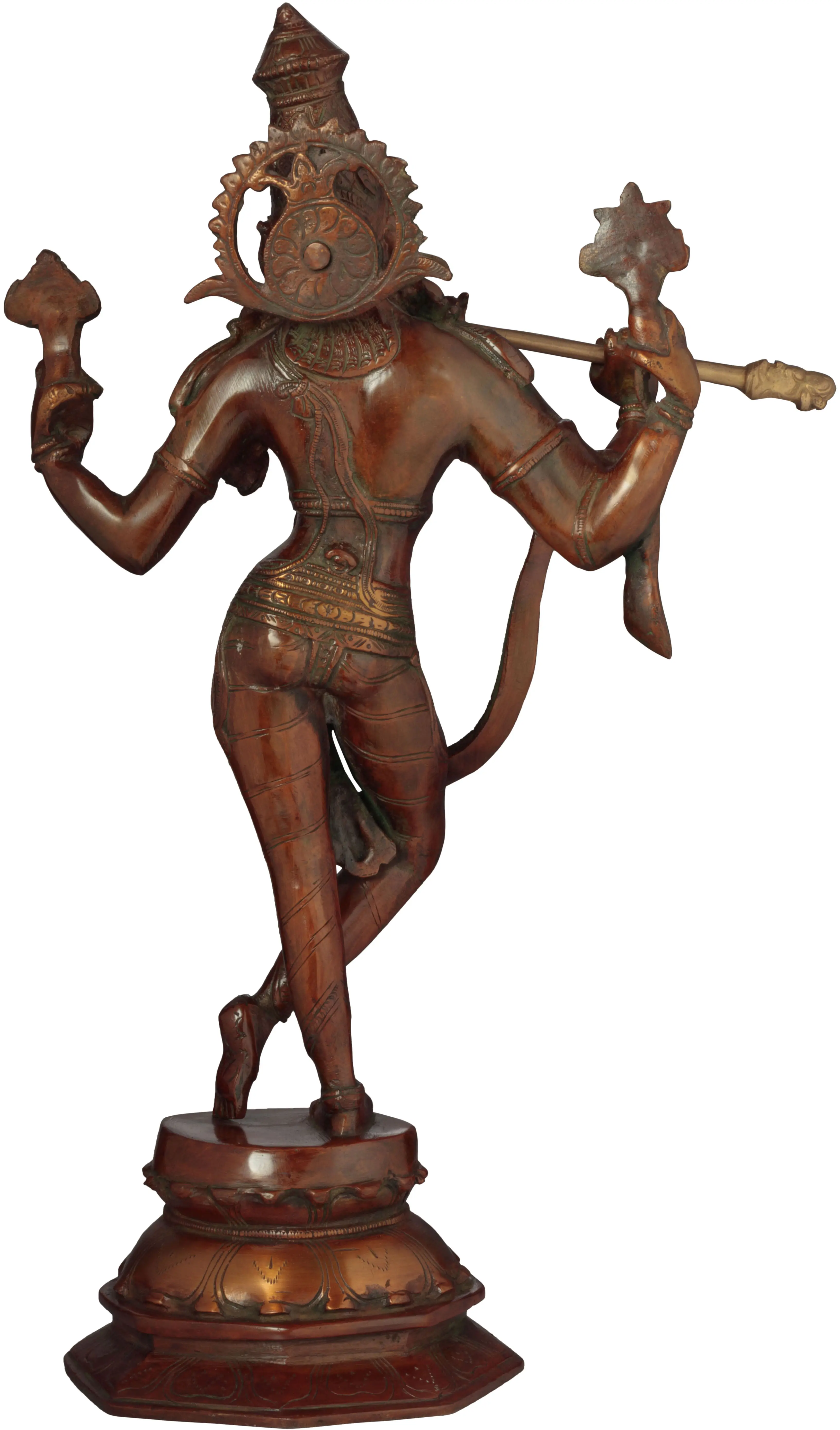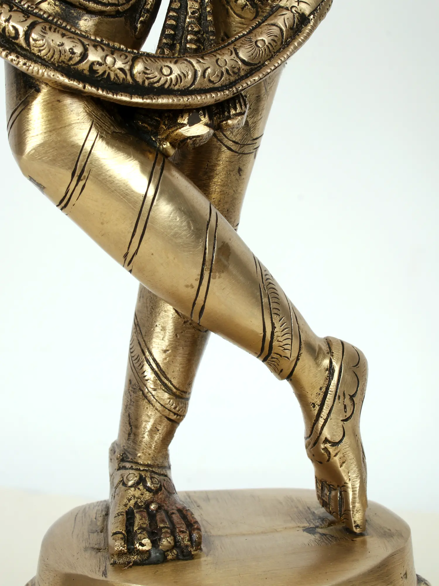 The portrayal of the Cosmic Form of Lord Krishna in brass is a reflection of the divine essence of the universe encapsulated in a single form. Handmade in India with meticulous craftsmanship, this sculpture symbolises the universal manifestation of Krishna, signifying the omnipresence and cosmic harmony. It depicts the cosmic grandeur of Krishna, showcasing the divine form that encompasses the entire universe. The intricate details within this sculpture invite contemplation on the magnificence of the cosmos and the all-encompassing nature of divinity.