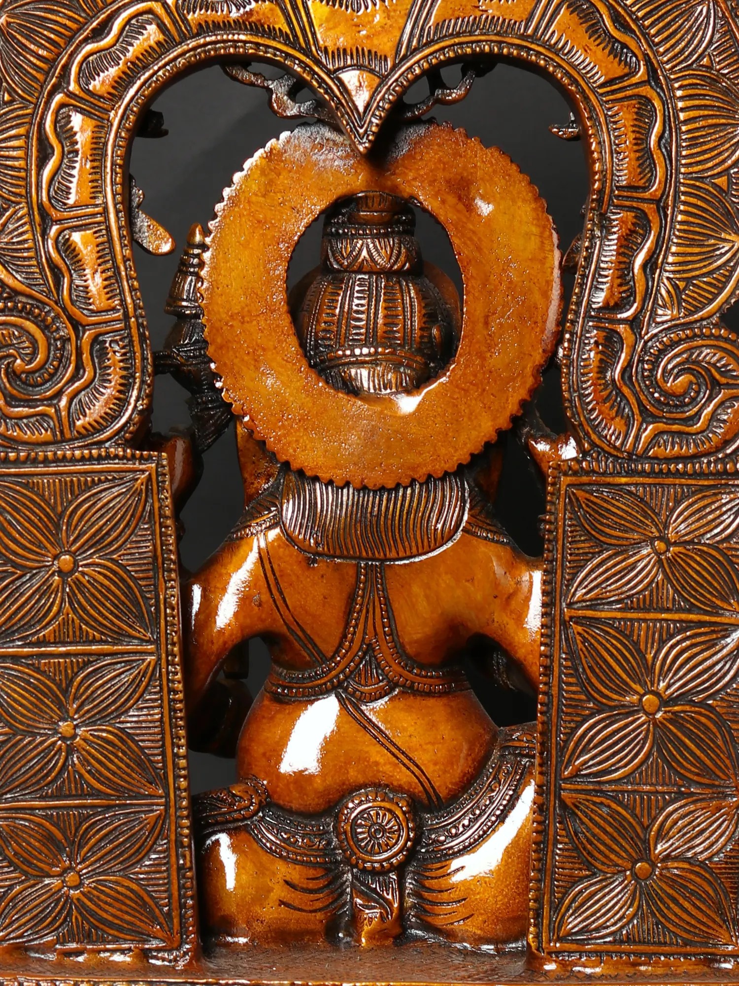 16" Chaturbhuja Lord Ganesha | Wood Framed Brass Sculpture with Inlay Work | Wall Hanging
