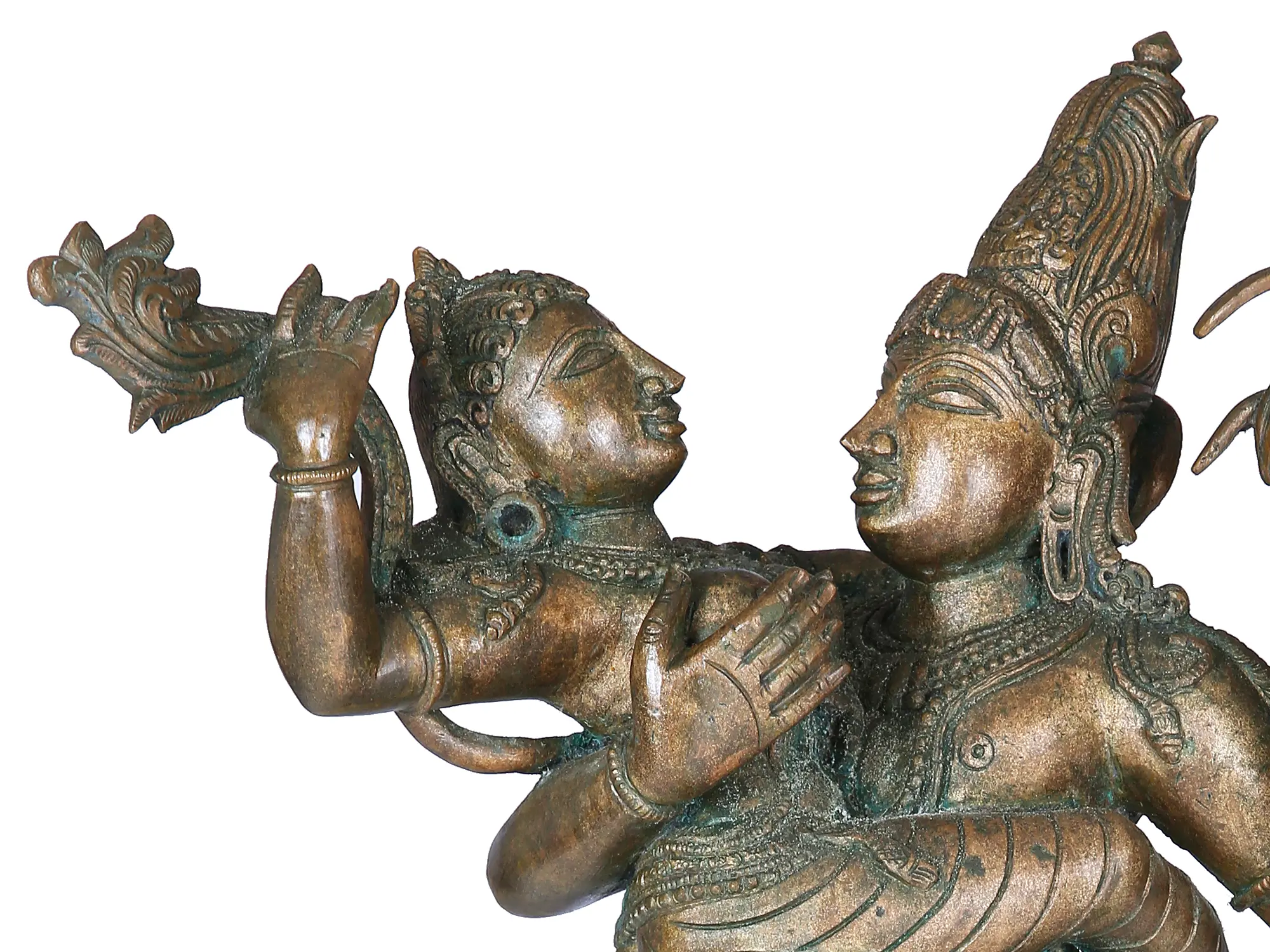 The life-affirming togetherness of Kama and Rati is celebrated artistically in this Panchaloha bronze, which is infused with the beauty of the riveting movements of the duo.