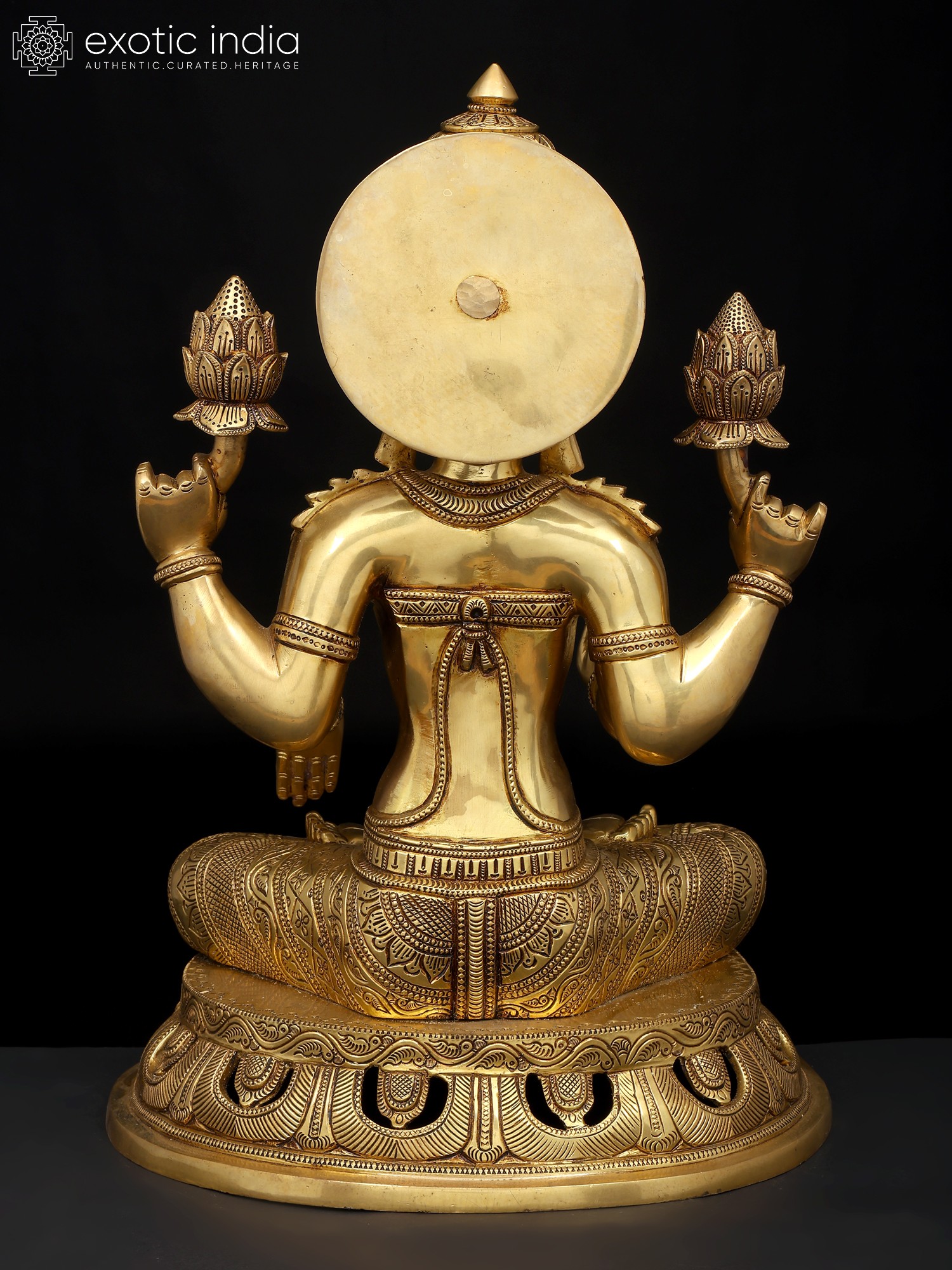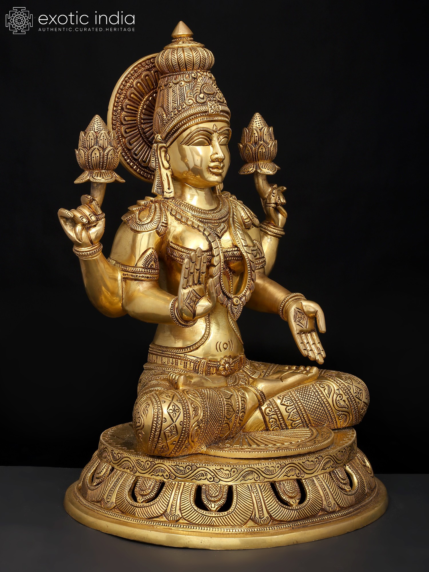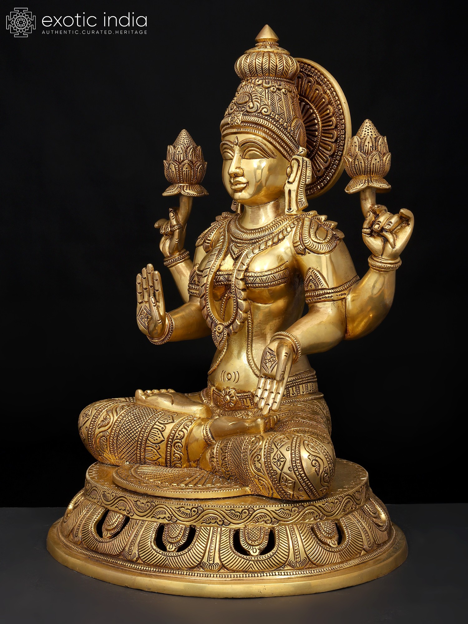 53" Super Large Goddess Lakshmi Brass Statue on Lotus | Exquisite Handmade Sculpture