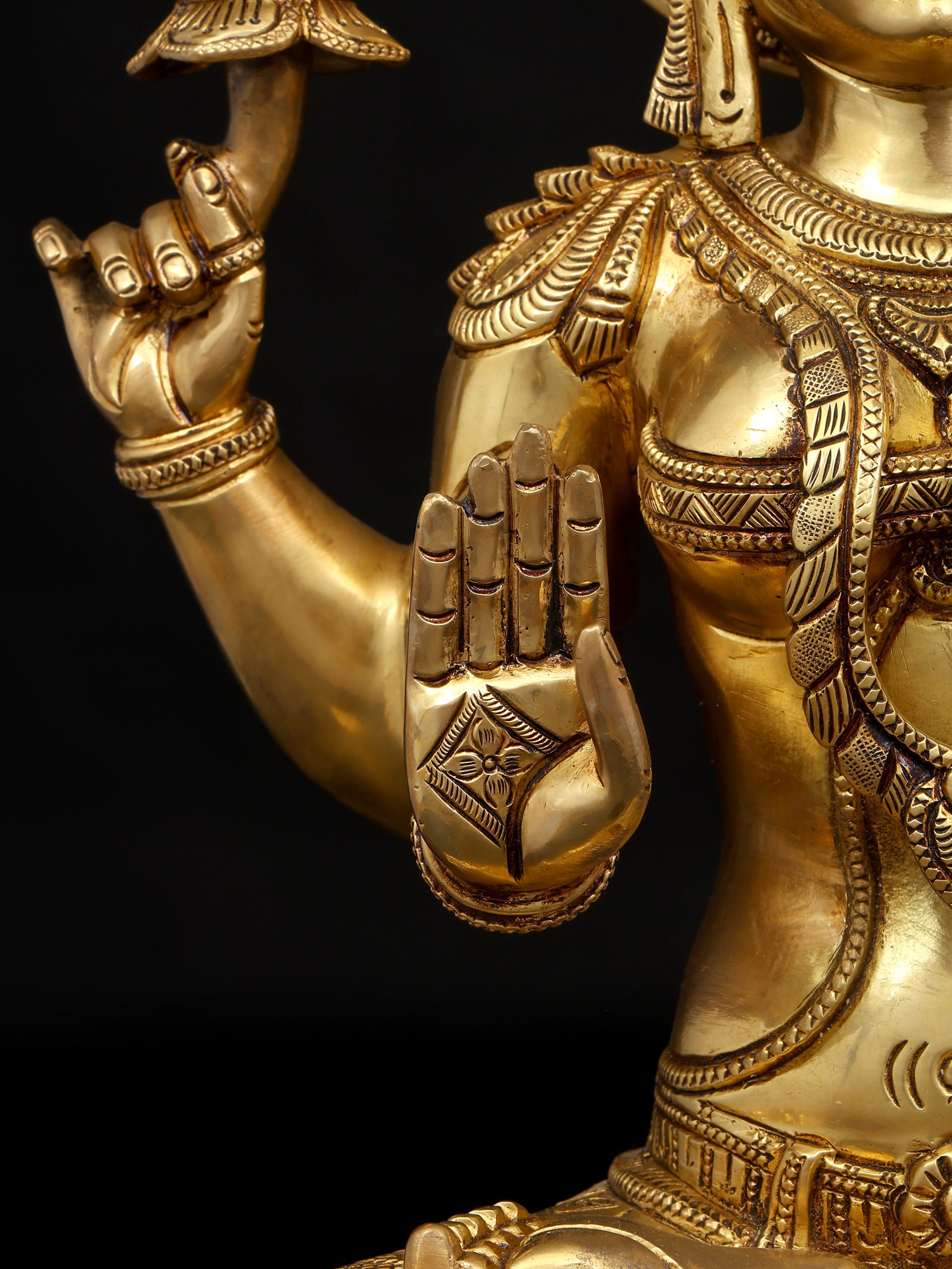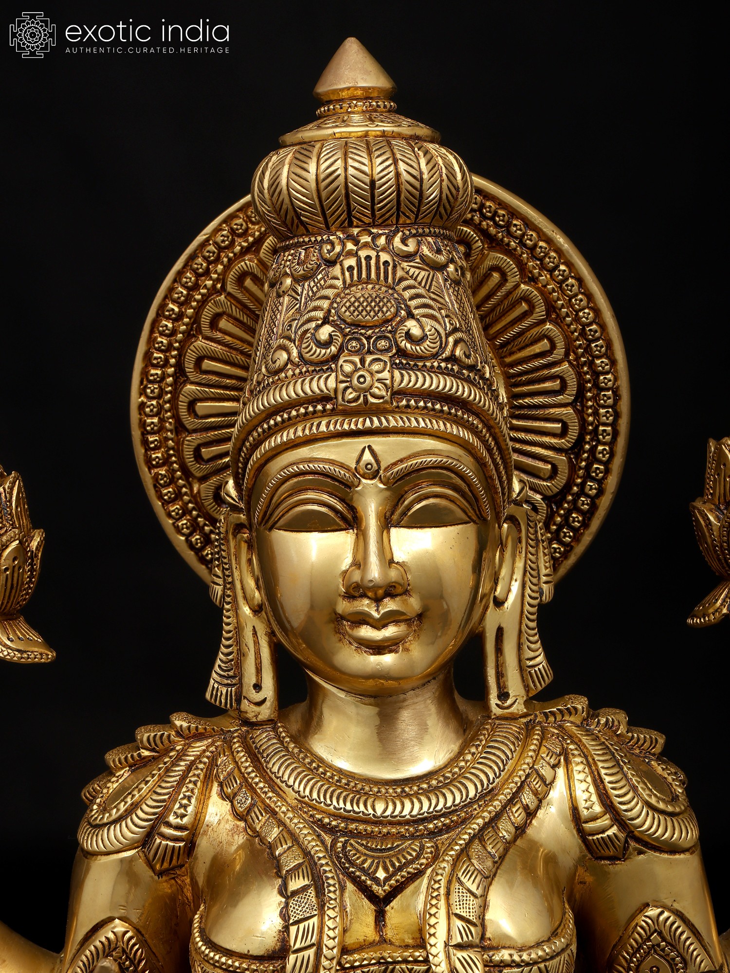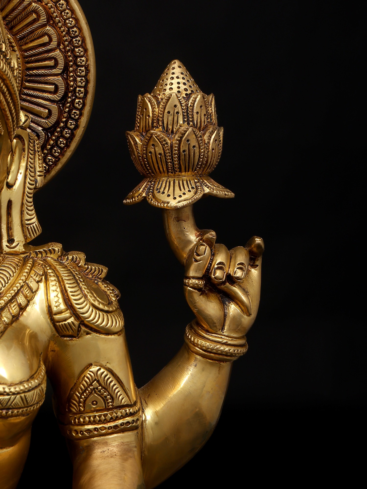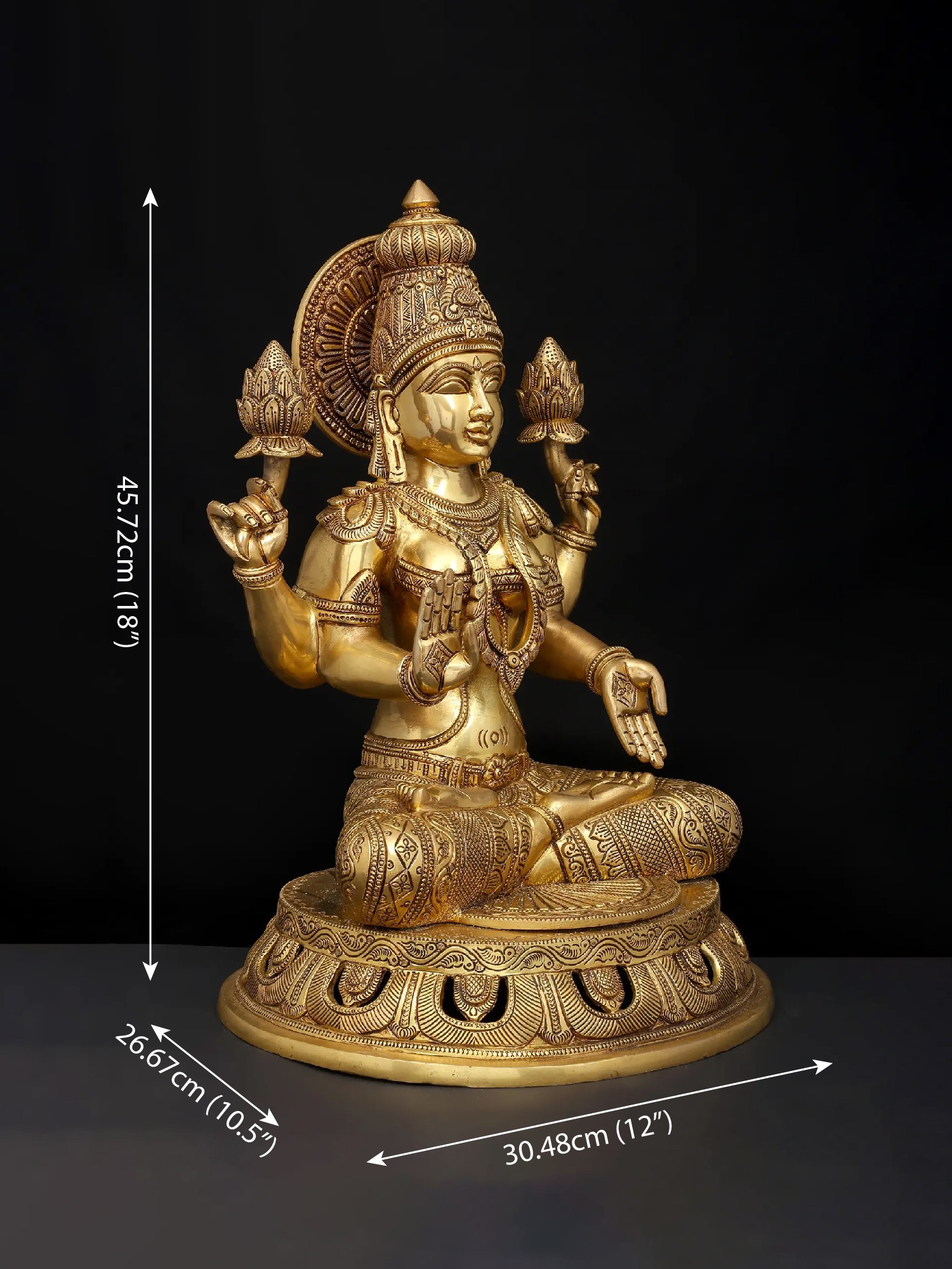 53" Super Large Goddess Lakshmi Brass Statue on Lotus | Exquisite Handmade Sculpture