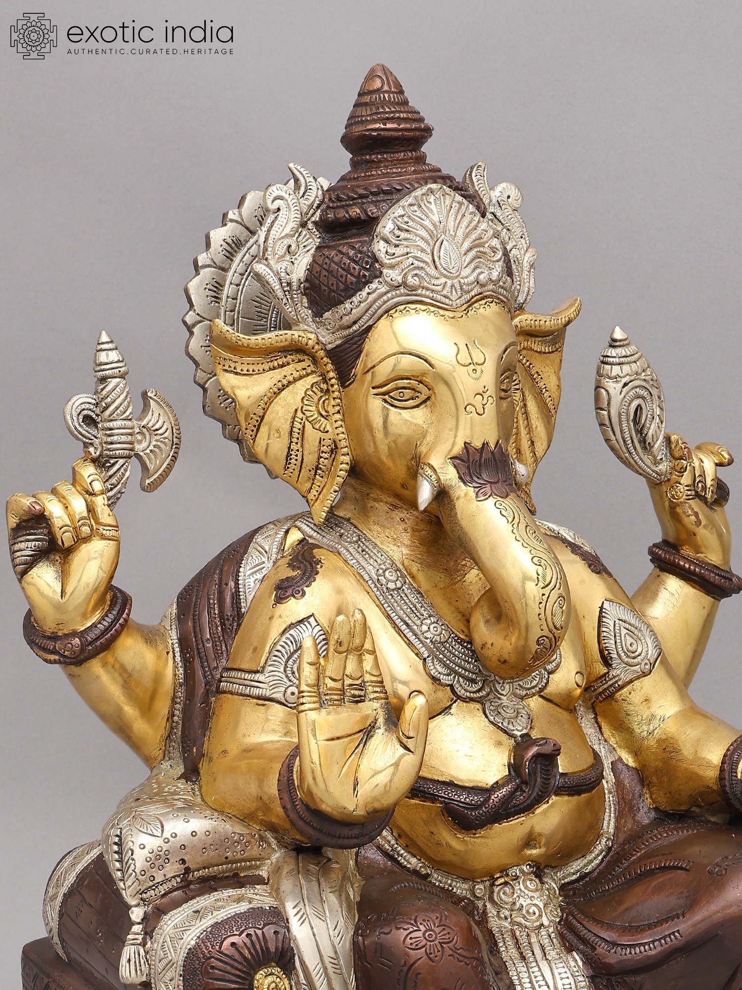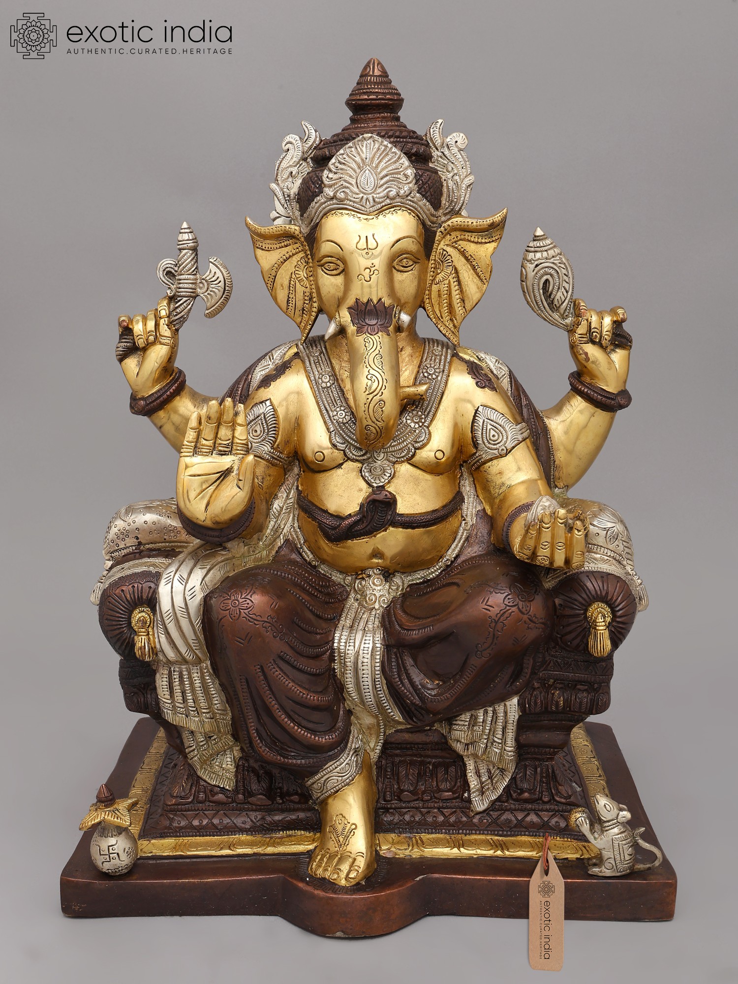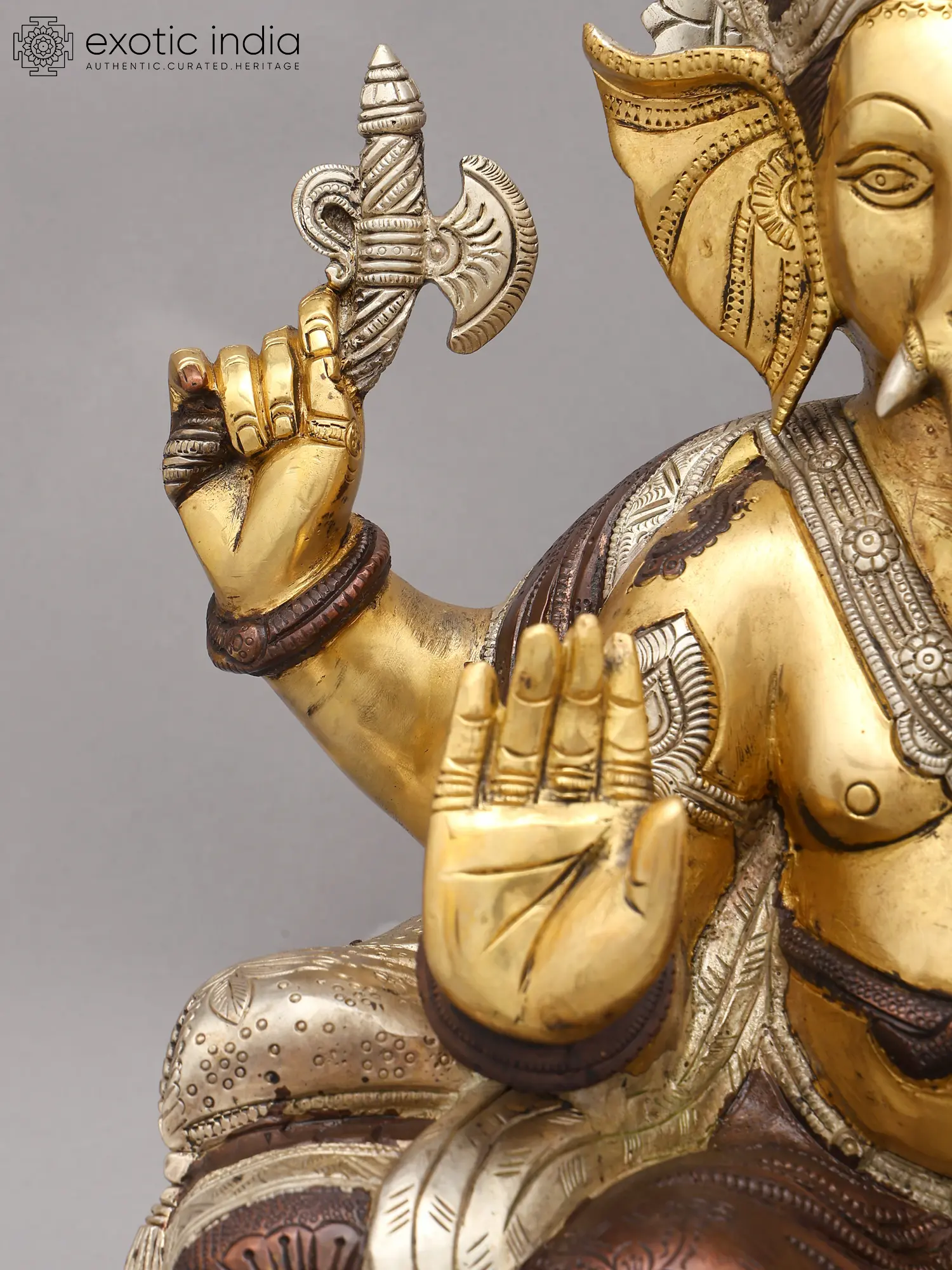 16" Lord Ganesha Statue Granting Abhaya in Brass | Handmade Idols | Made in India