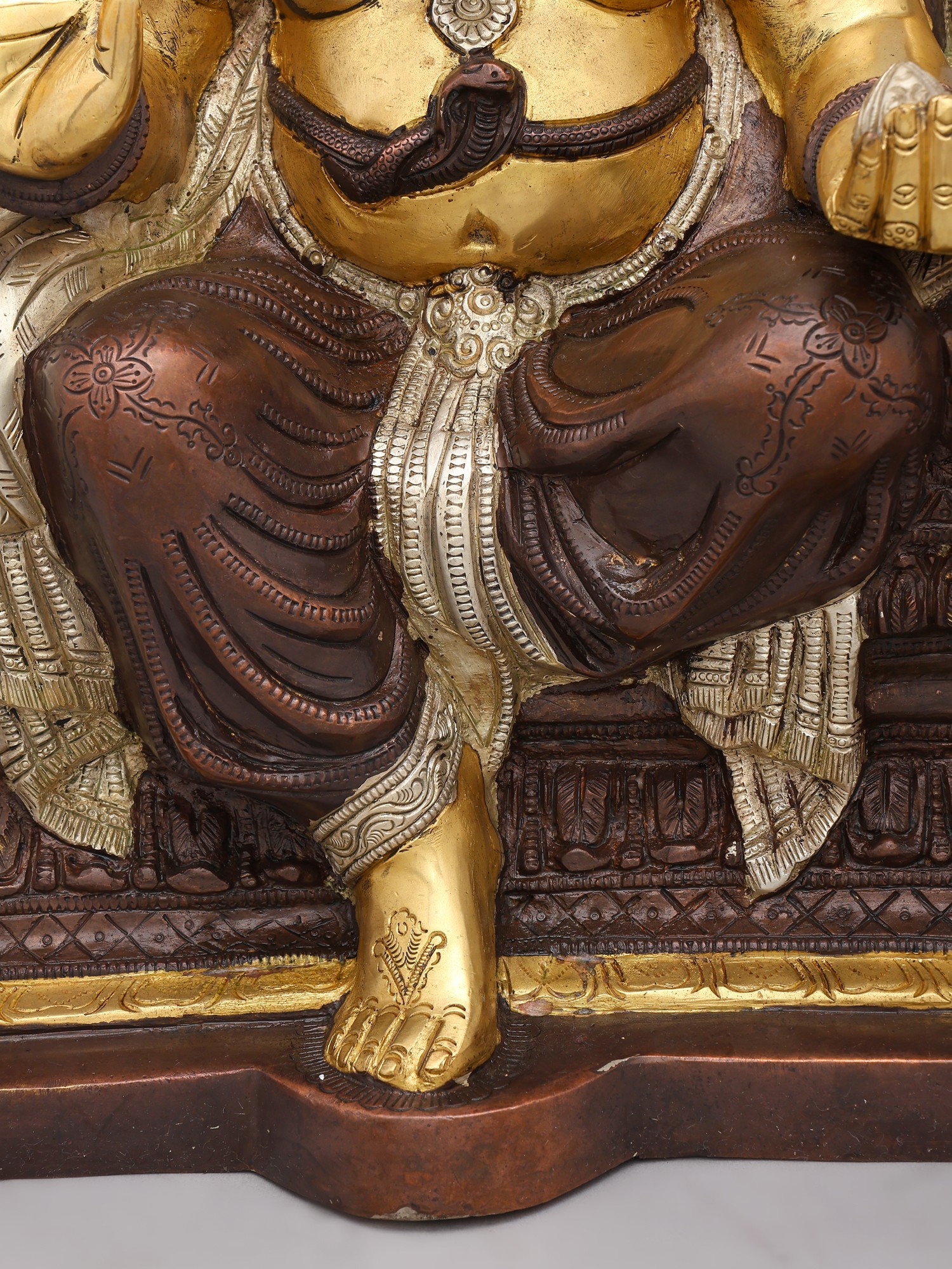 To maintain the lustrous beauty of this brass masterpiece, a simple dusting with a soft, dry cloth will suffice. The inherent durability of brass ensures that with minimal care, this sculpture will retain its splendor and spiritual significance for generations to come. Investing in this piece means acquiring not just an object of art, but a timeless heirloom imbued with blessings and cultural heritage.