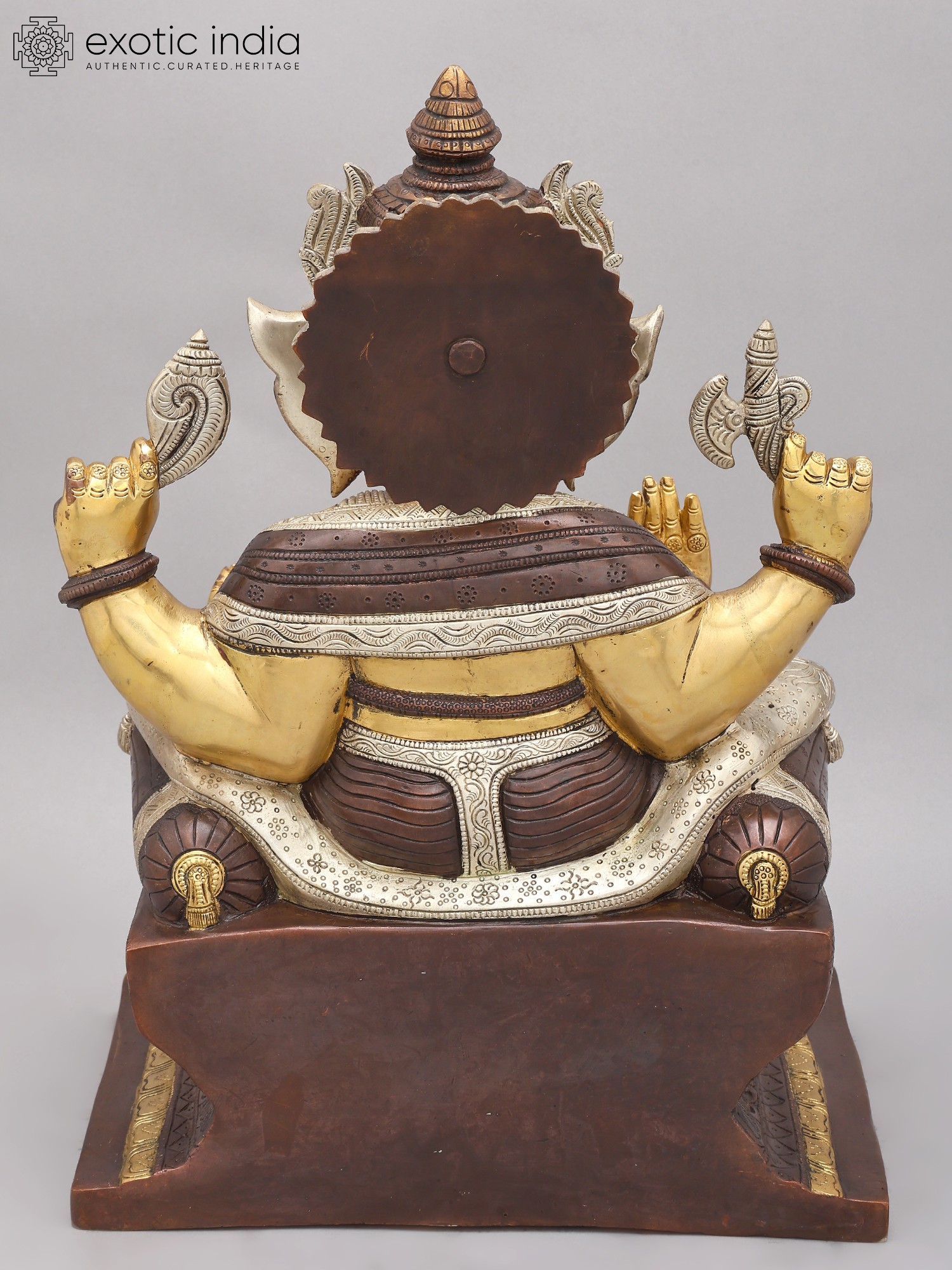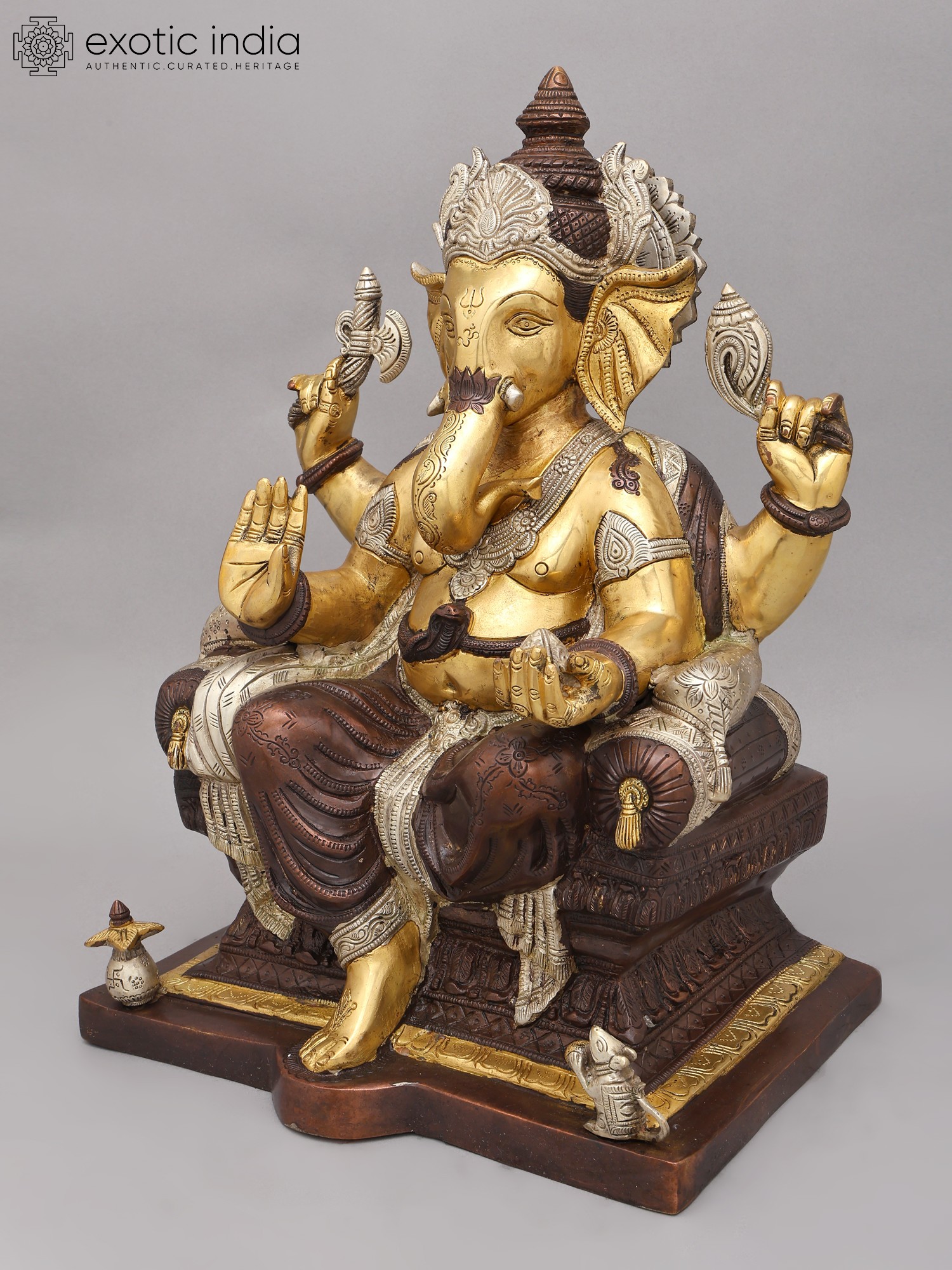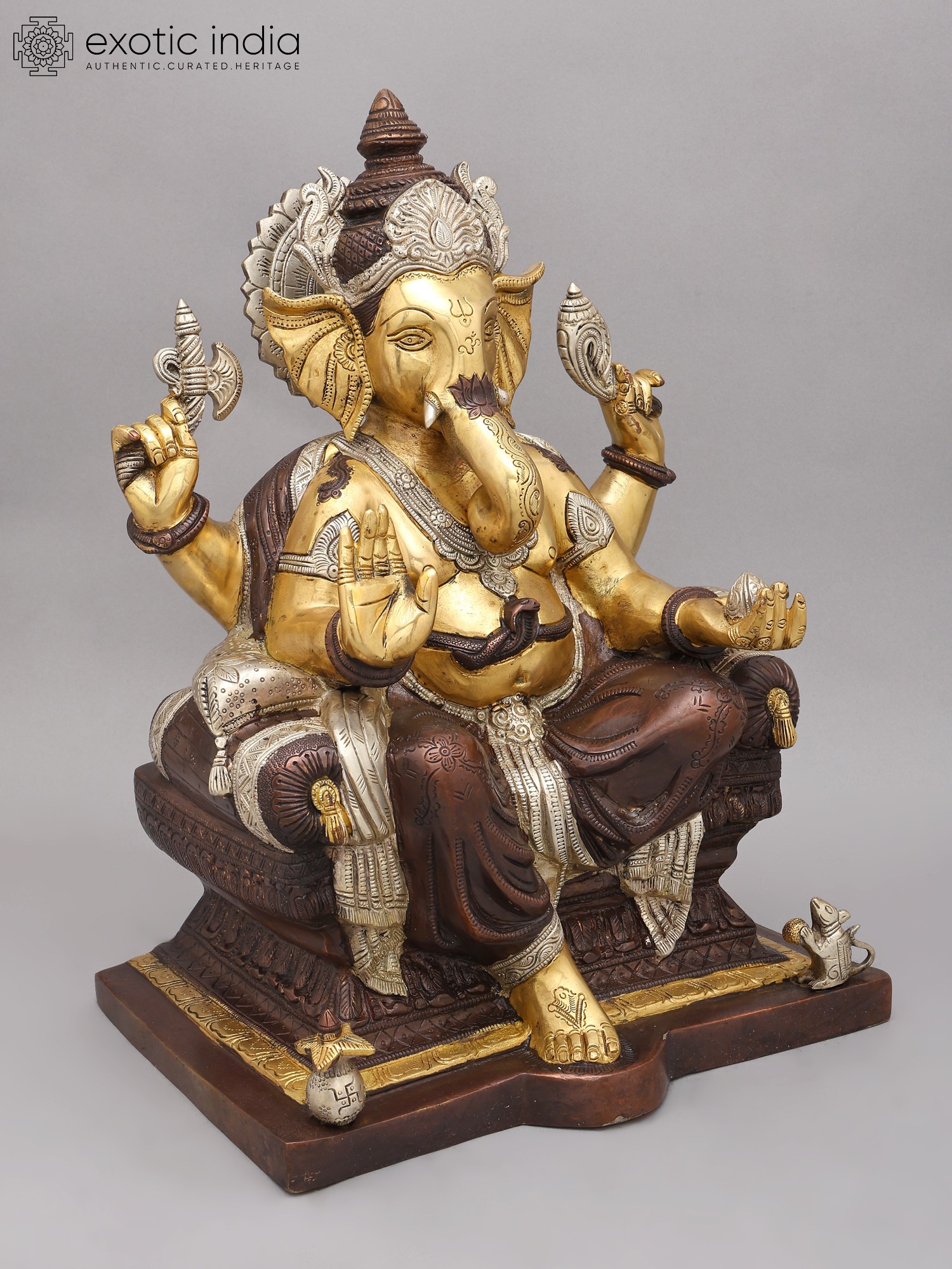 32" Large Size Blessing Ganesha Seated on Ashta-Ganesha Base In Brass | Indian Handcrafted Idol