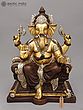 15" Superfine Brass Lord Ganesha Idol Sitting On Throne