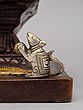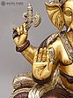 Crafted from the finest brass, this divine sculpture showcases the pinnacle of artisanal skill. The artist has meticulously sculpted each element, from the intricate detailing on the robes to the serene expression on the deity's face. The substantial weight of the brass ensures a stable and enduring presence, while the dual-tone finish – a radiant gold and a deep, rich bronze – adds layers of visual depth and sophistication.