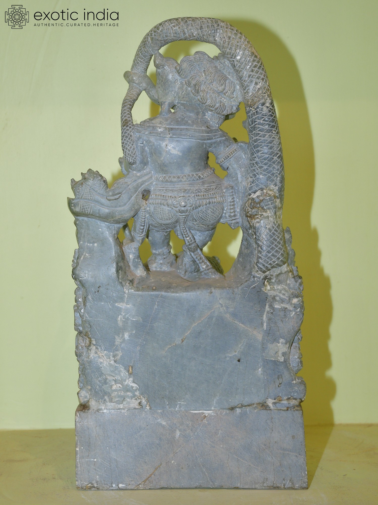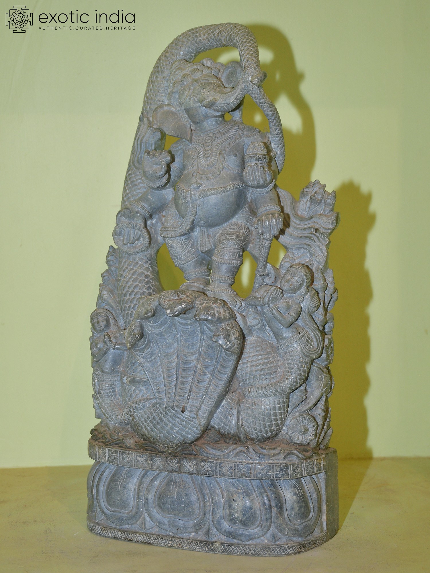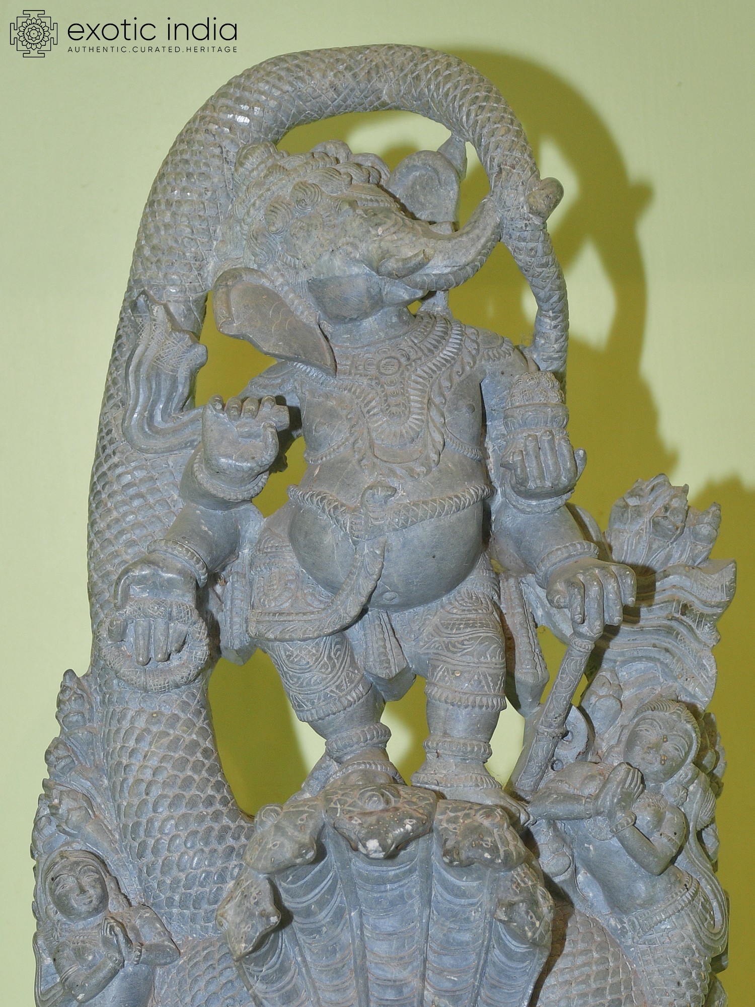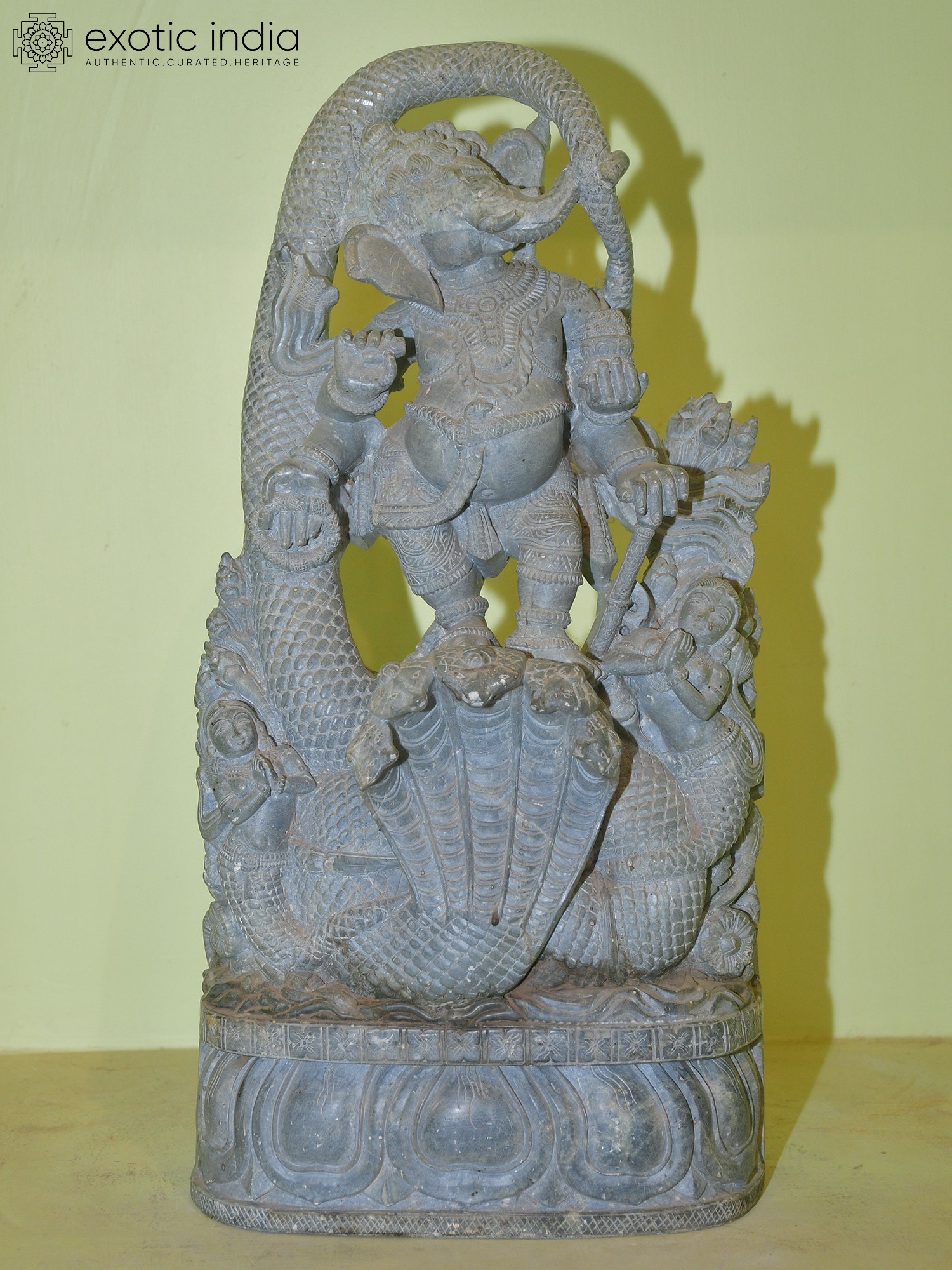 11" Brass Ashtabhuja Simha Ganesha Statue with Serpents Aureole | Handmade | Made in India