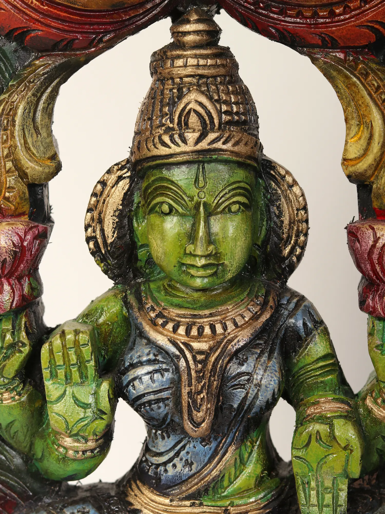 This statue showcases the exceptional skill of Indian wood carving traditions. Crafted from high-quality wood, each detail is meticulously hand-carved and painted with vibrant, long-lasting colors. The rich hues, intricate designs, and the graceful posture of the goddess are truly captivating. The arched frame further enhances the beauty and adds a touch of regal elegance. The vibrant color palette consists of traditional Indian shades reflecting the vibrancy of Indian culture and festivals. The artisans pour their heart into creating this beautiful piece of art, with their talent and experience reflected in the fine details and artistic design. This ensures that the final product is nothing short of stunning.