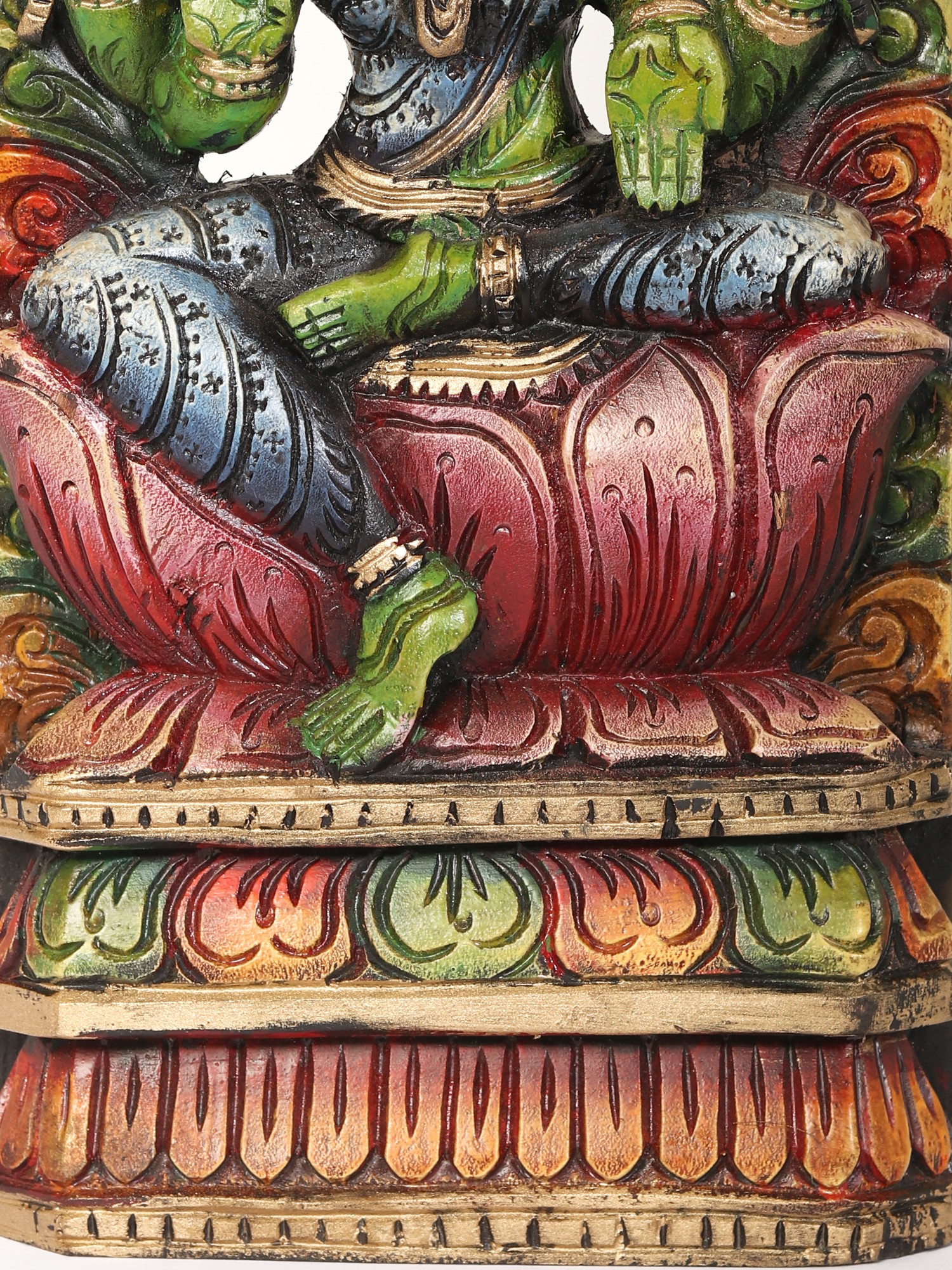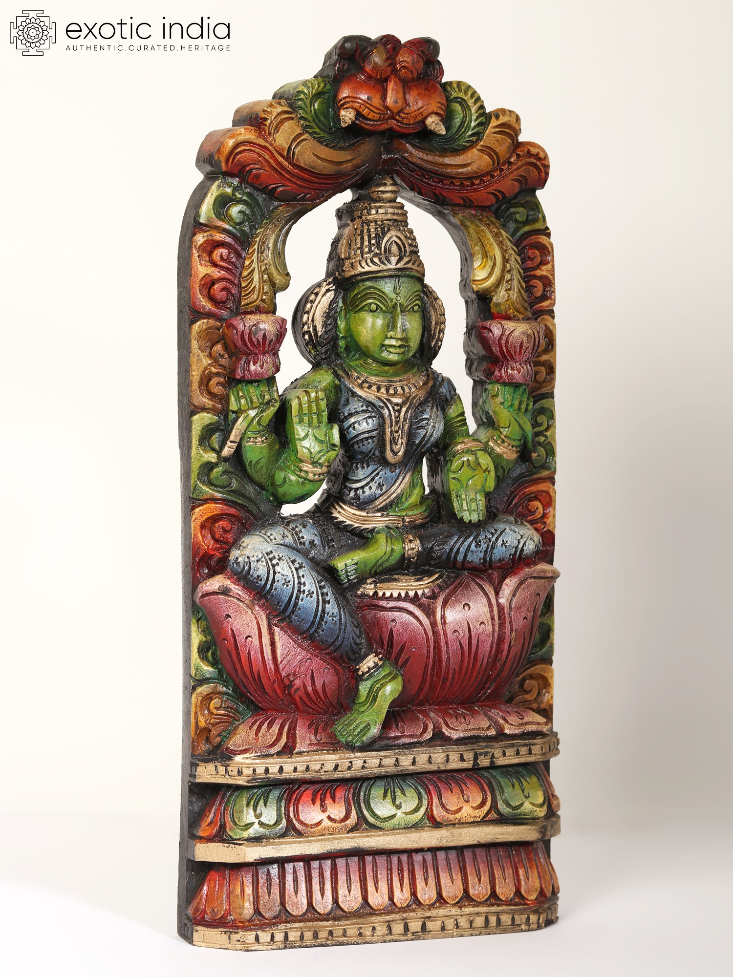 24" Blessing Goddess Lakshmi Seated on Lotus | Wood Carving