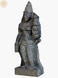 Hand-carved from granite stone, the sculpture showcases intricate details, from her ornaments to the flowing drapery, highlighting the artisan’s craftsmanship.