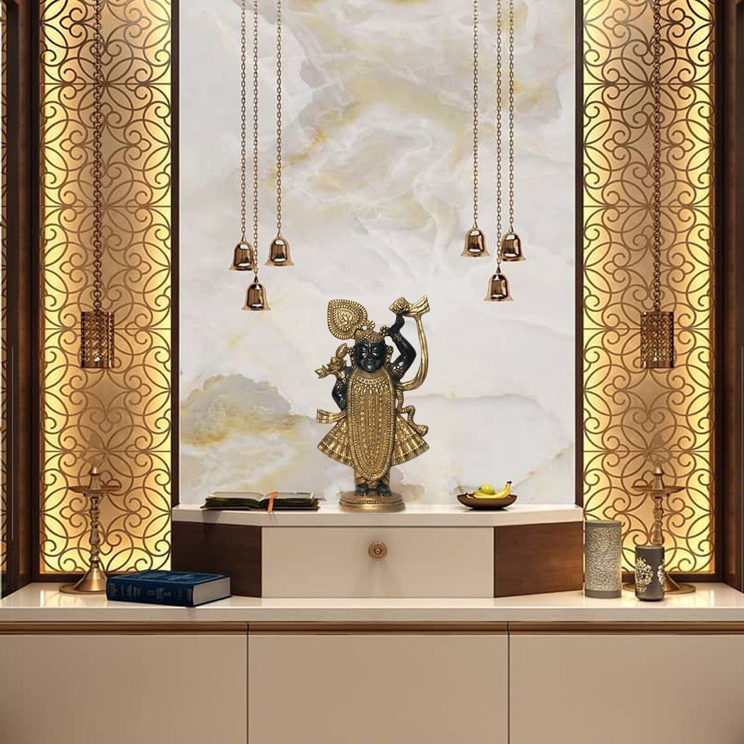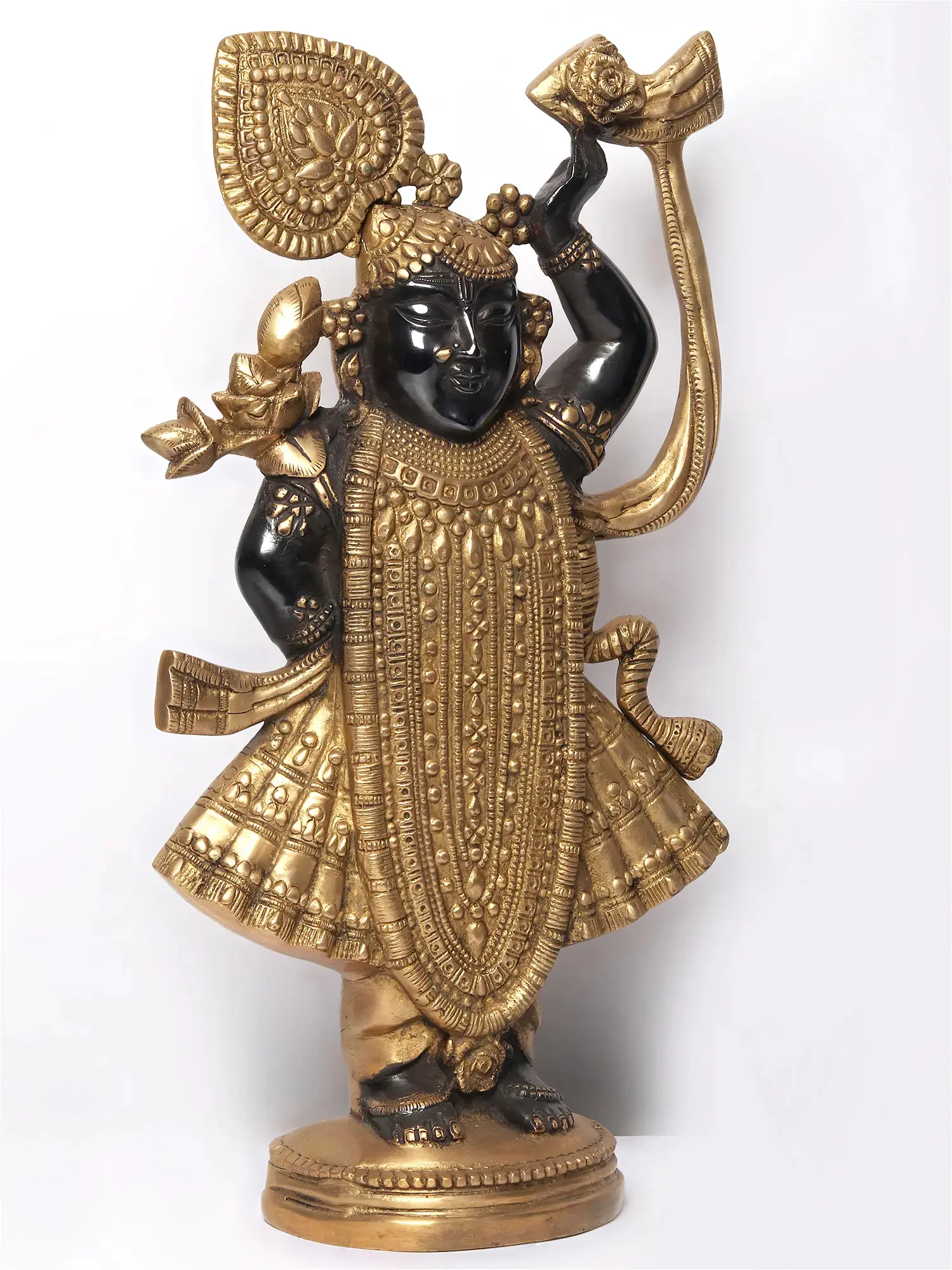 18" Gold and Black Color Lord Krishna as Shrinath Ji in Brass