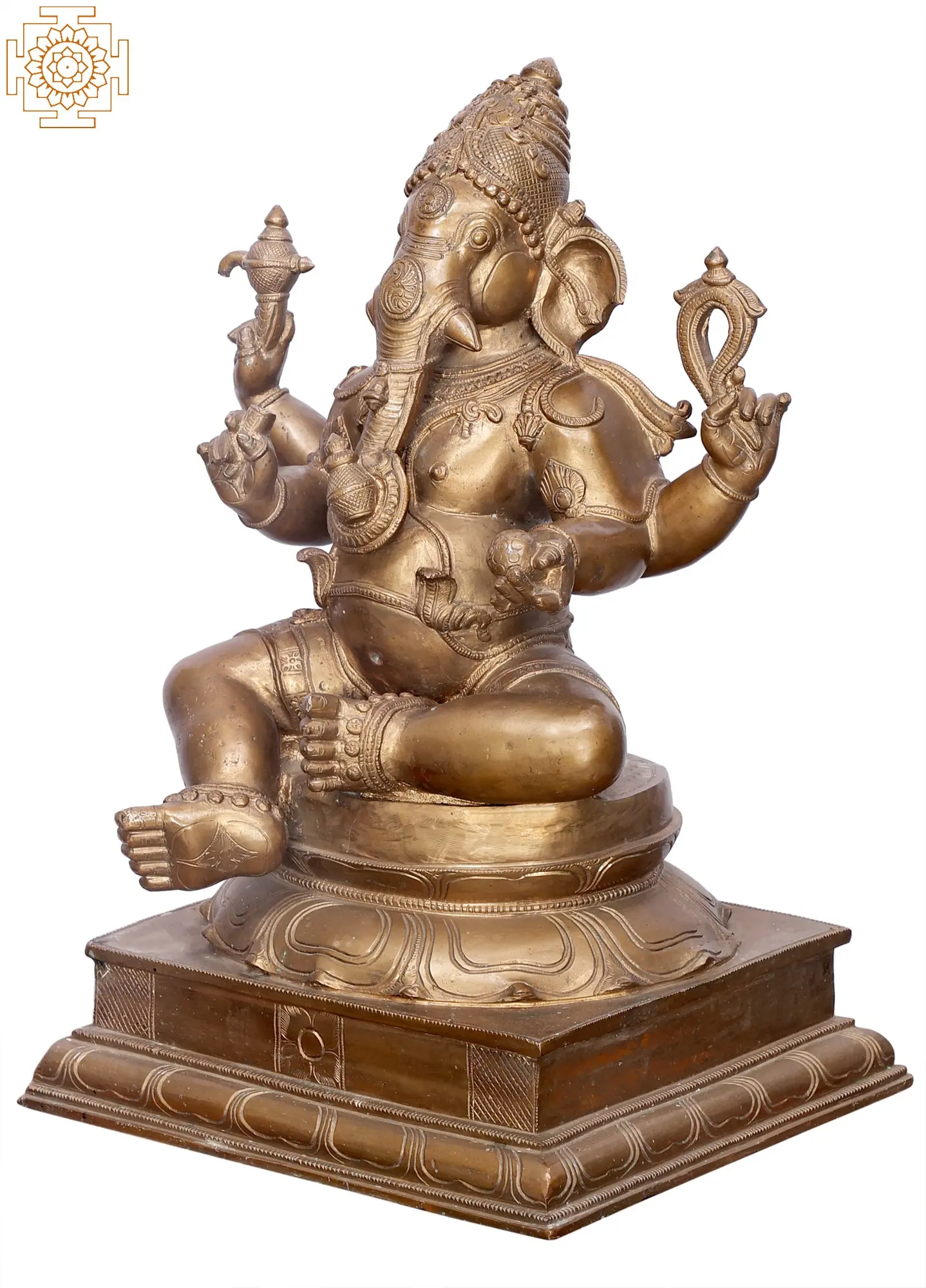 18" Sitting Ganesha | Handmade | Madhuchista Vidhana (Lost-Wax) | Panchaloha Bronze Statues from Swamimalai