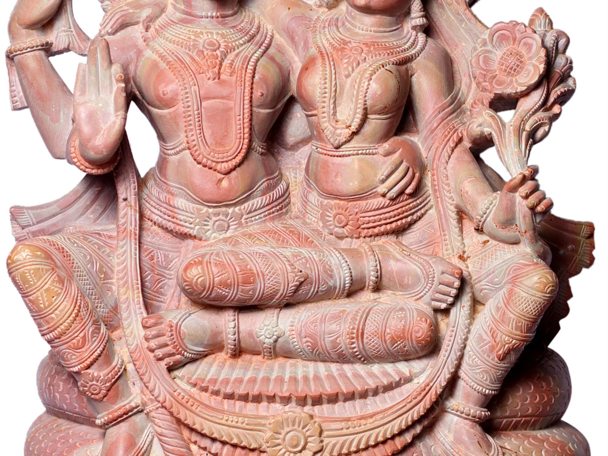 4" Small Silver God Vishnu And Goddess Laxmi Idols with Natural Rose Quartz Base