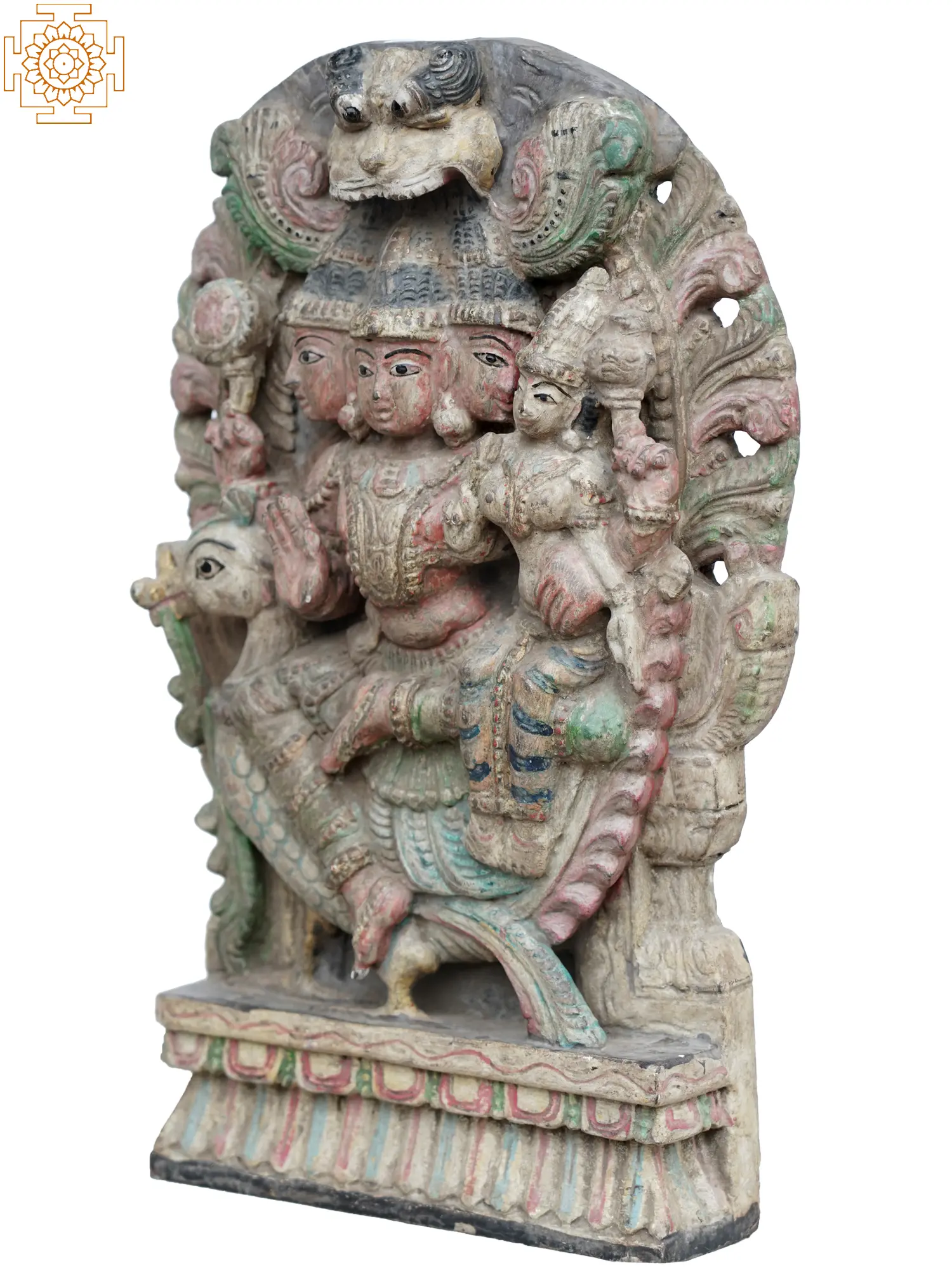 46" Lord Narasimha Seated on Sheshnag with Devi Lakshmi | Wood Carving