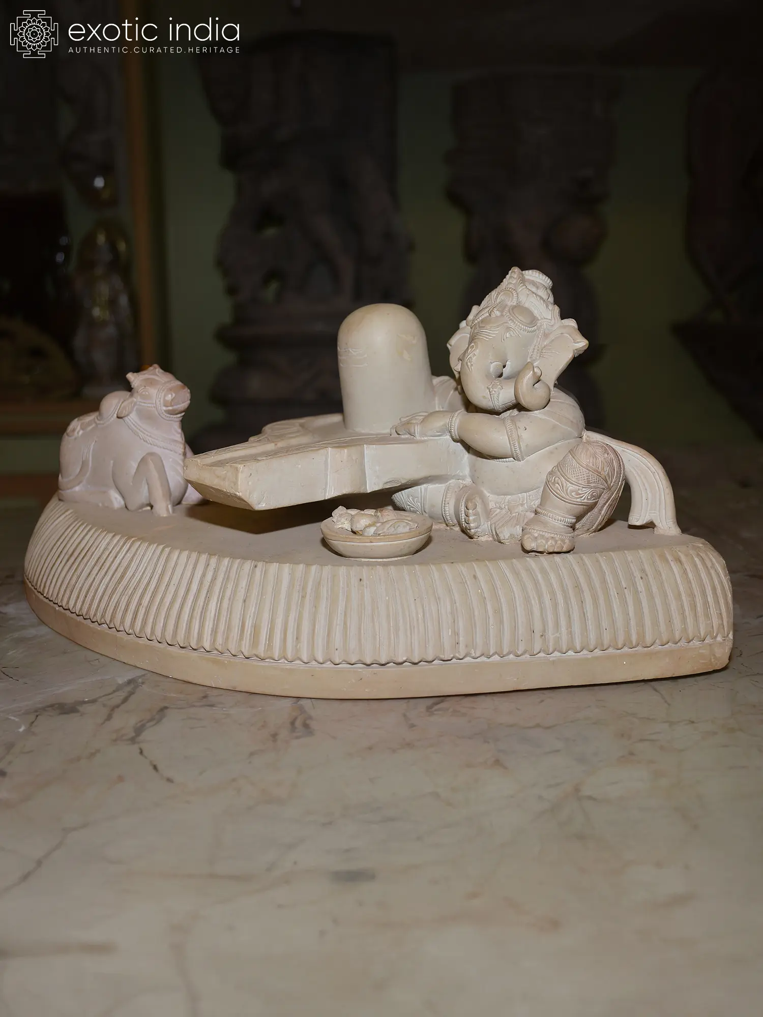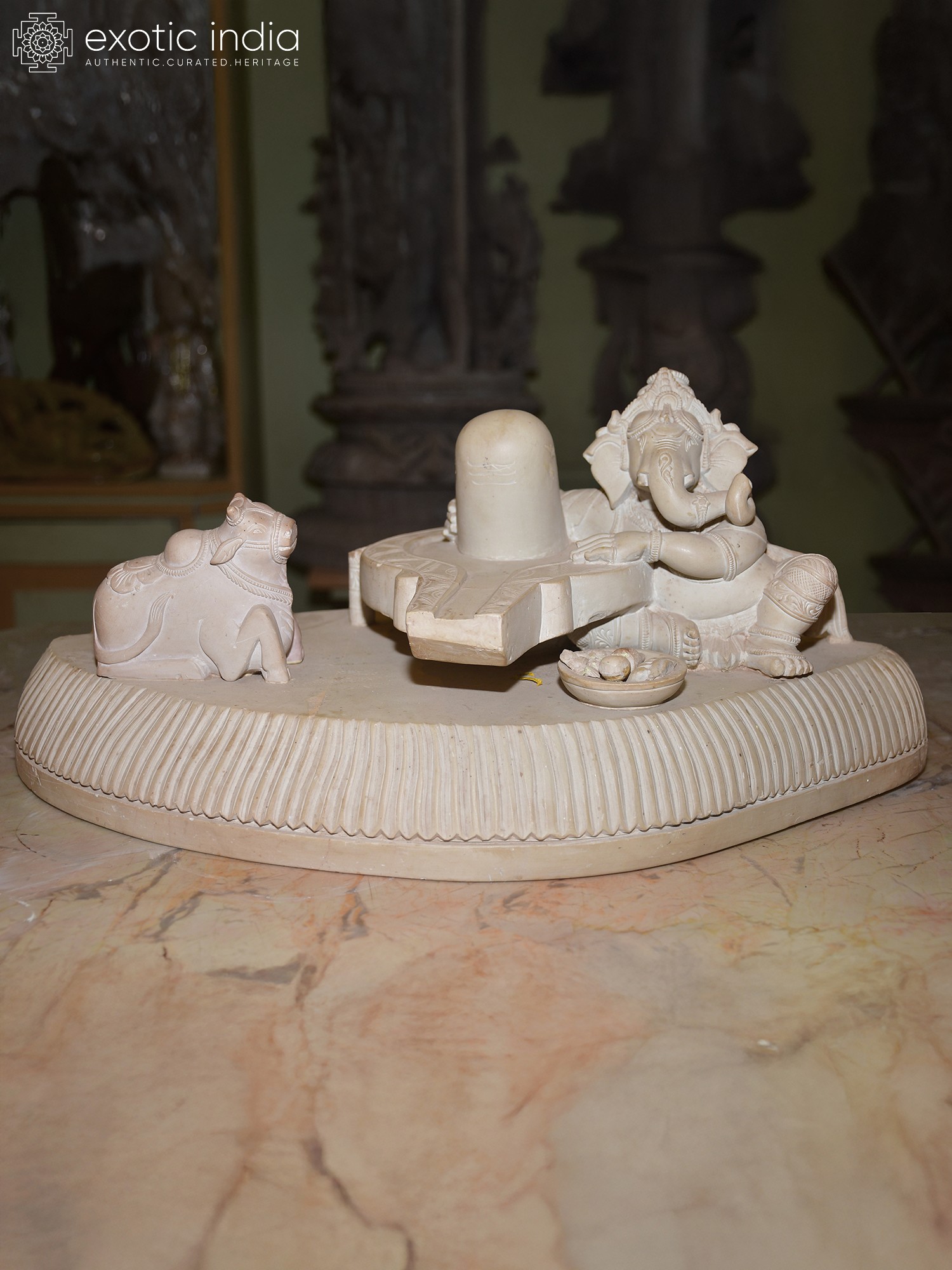 22" Lord Ganesha Resting with his Valets | Orissa Stone Statue | Indian Handmade Art