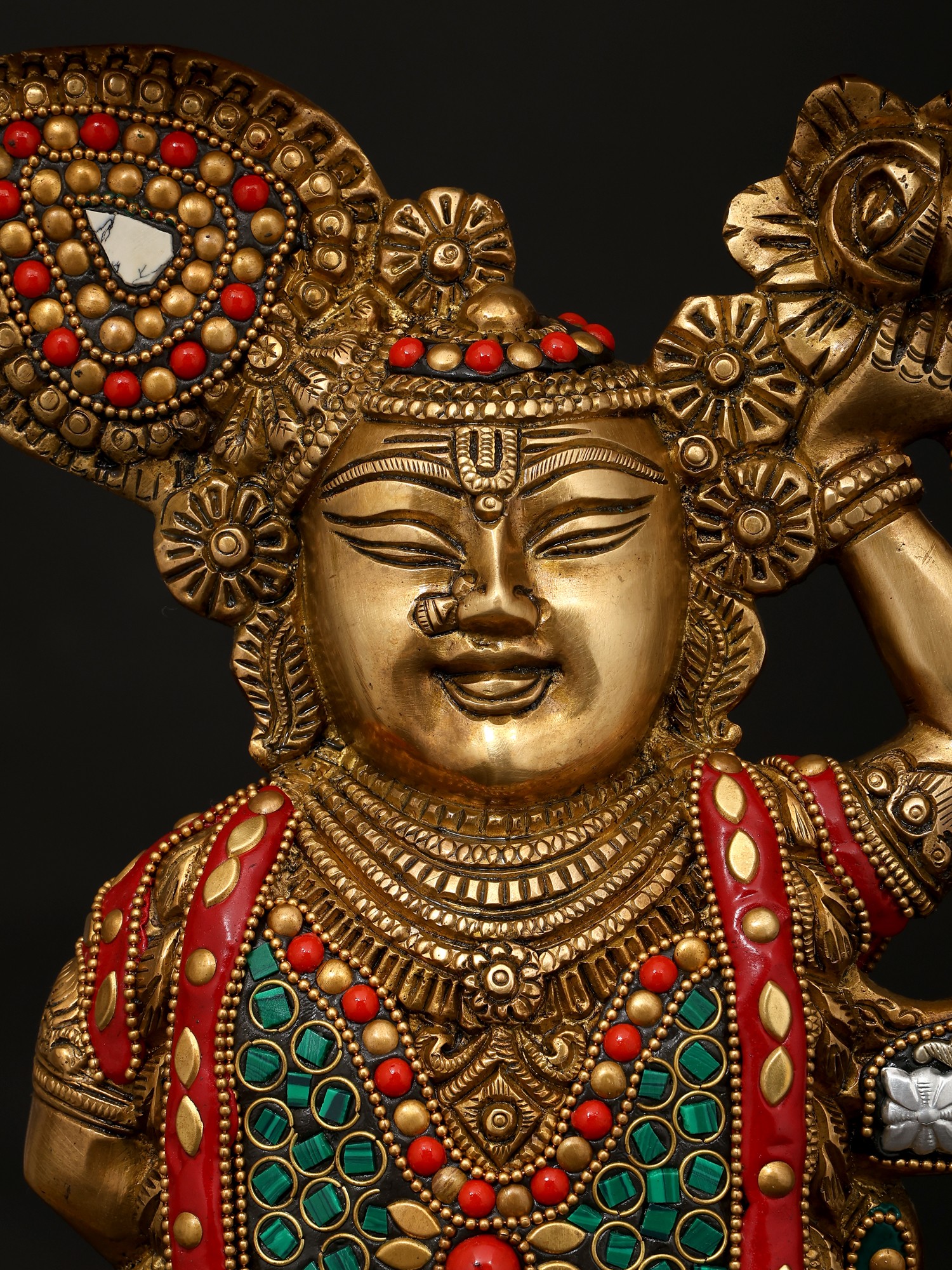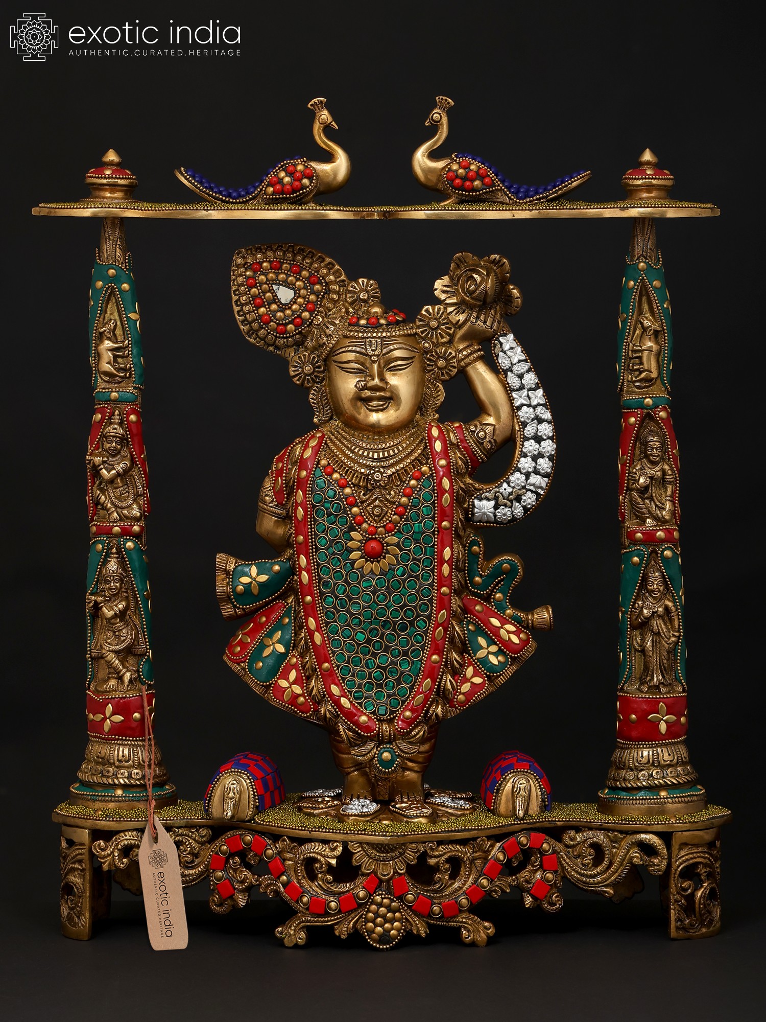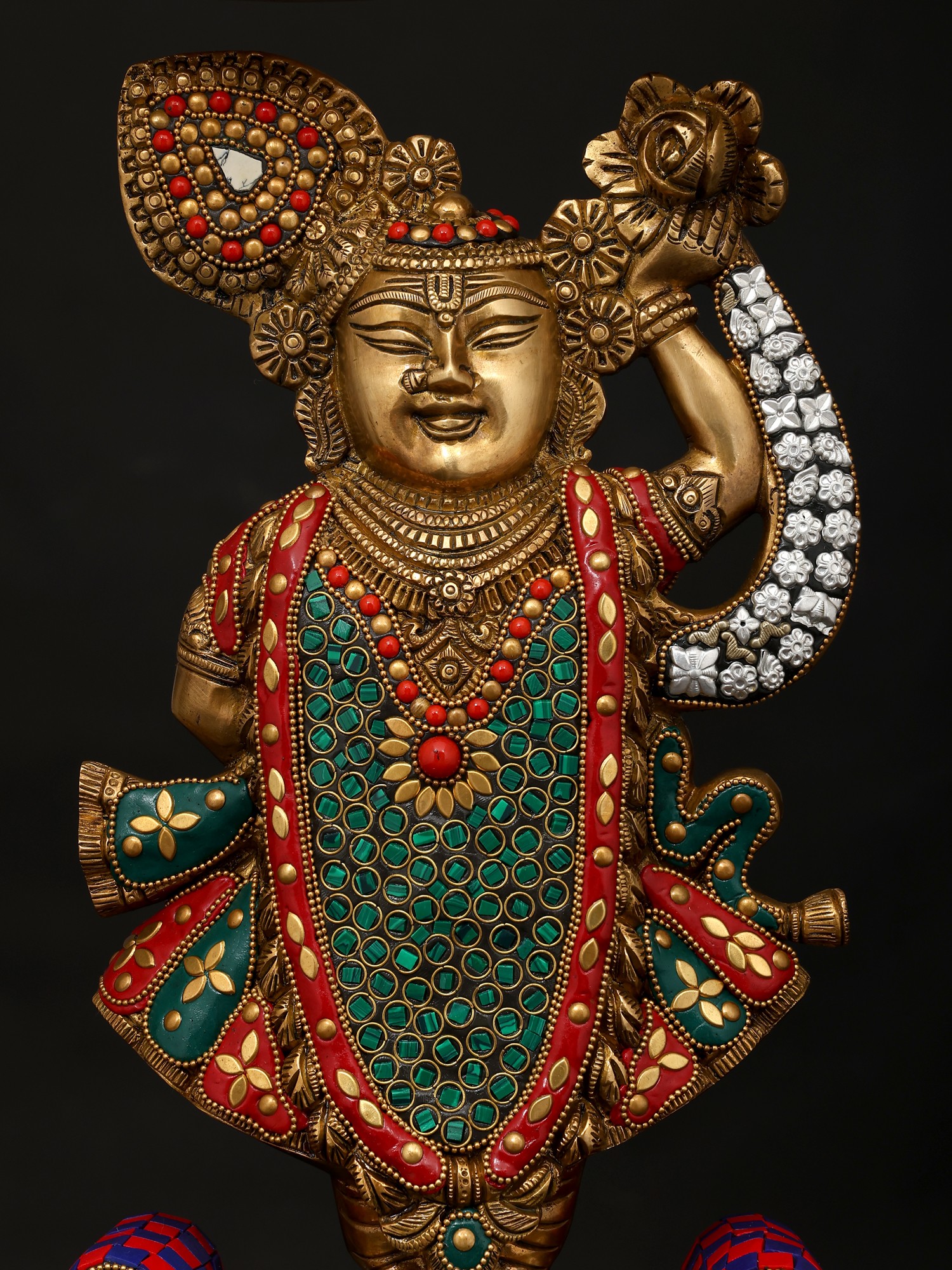 18" Gold and Black Color Lord Krishna as Shrinath Ji in Brass