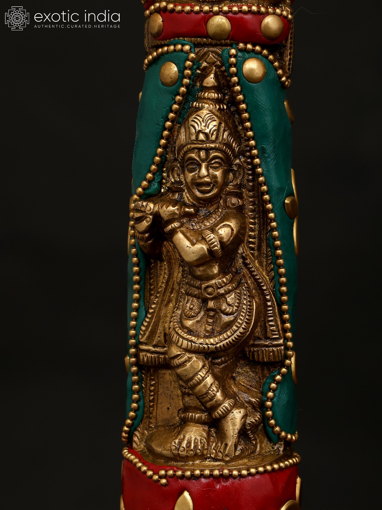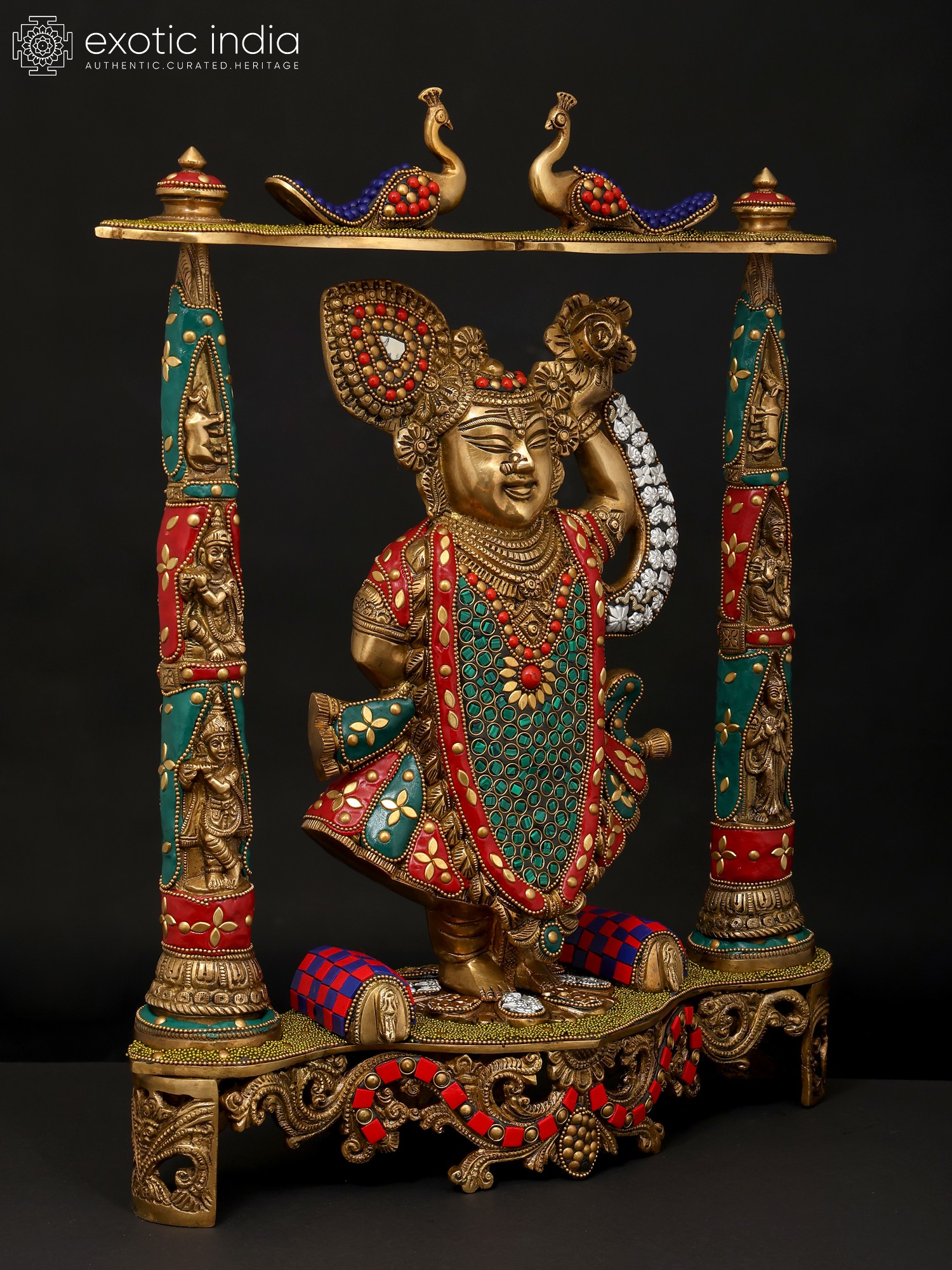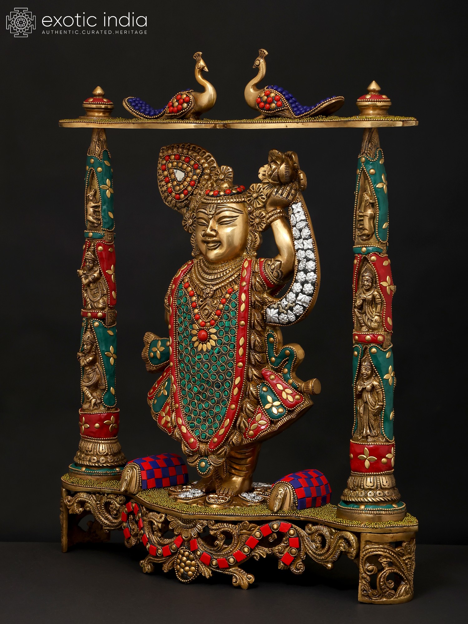 18" Gold and Black Color Lord Krishna as Shrinath Ji in Brass