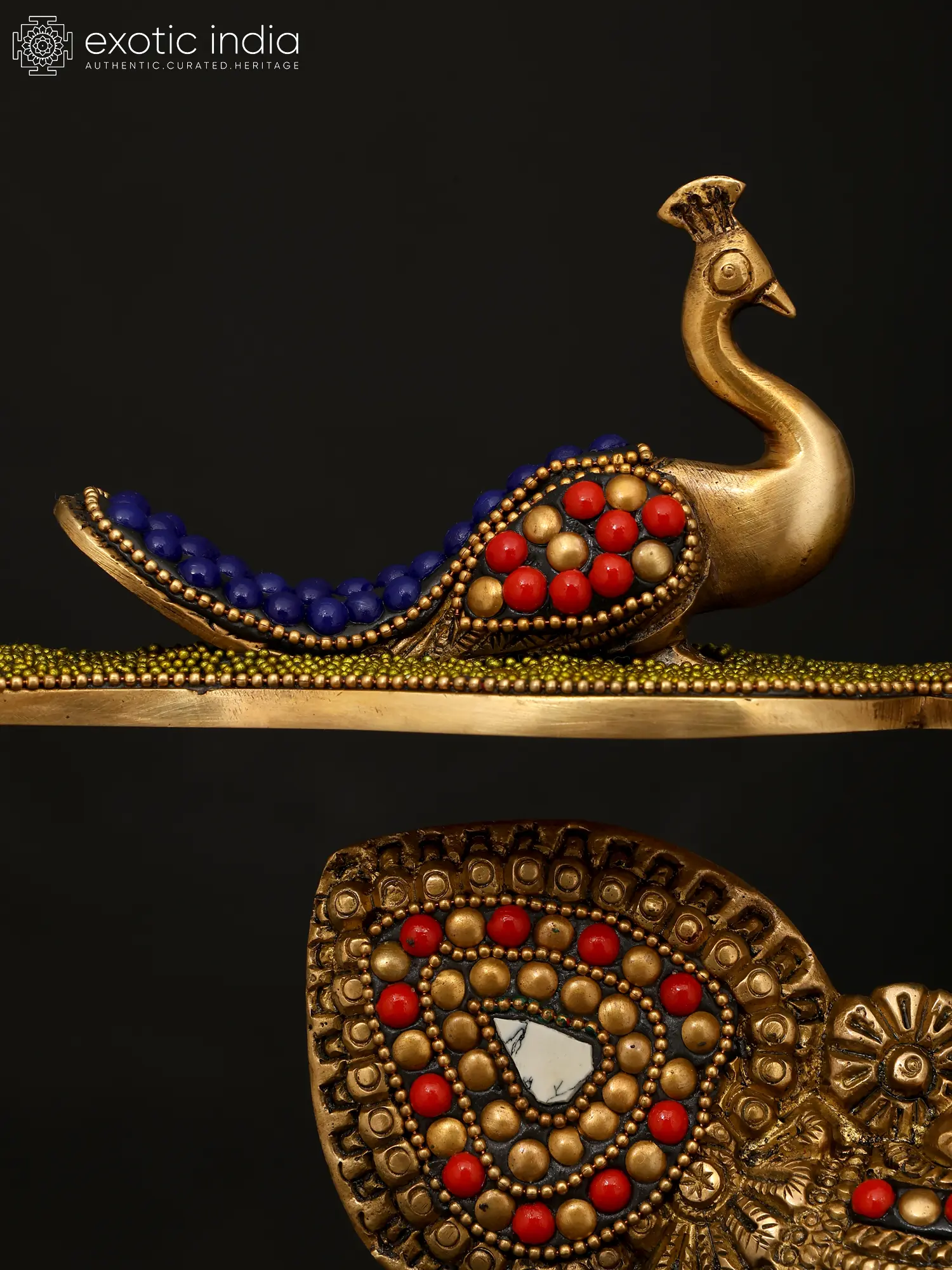 Teal-Blue Banarasi Silk Saree With Peacock Motif Pallu And Tassels