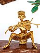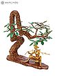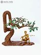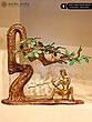 The statue's craftsmanship is impeccable, showcasing the dedication and artistry that goes into creating these sacred images. The fine detailing is evident in Krishna's features, his flowing garments, and the intricate carving of the tree's gnarled branches and delicate leaves. The use of brass lends a warm, golden glow to the piece, enhancing its regal aura and reflecting the sun’s warmth, much as Krishna is associated with warmth and joy. This is not merely a decorative object; it is a sacred piece of art that embodies devotion and reflects the profound spiritual significance of Krishna in Hindu culture. The statue is a powerful representation of devotion and divine connection.